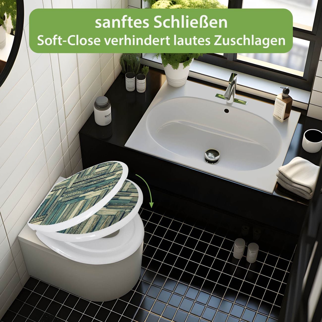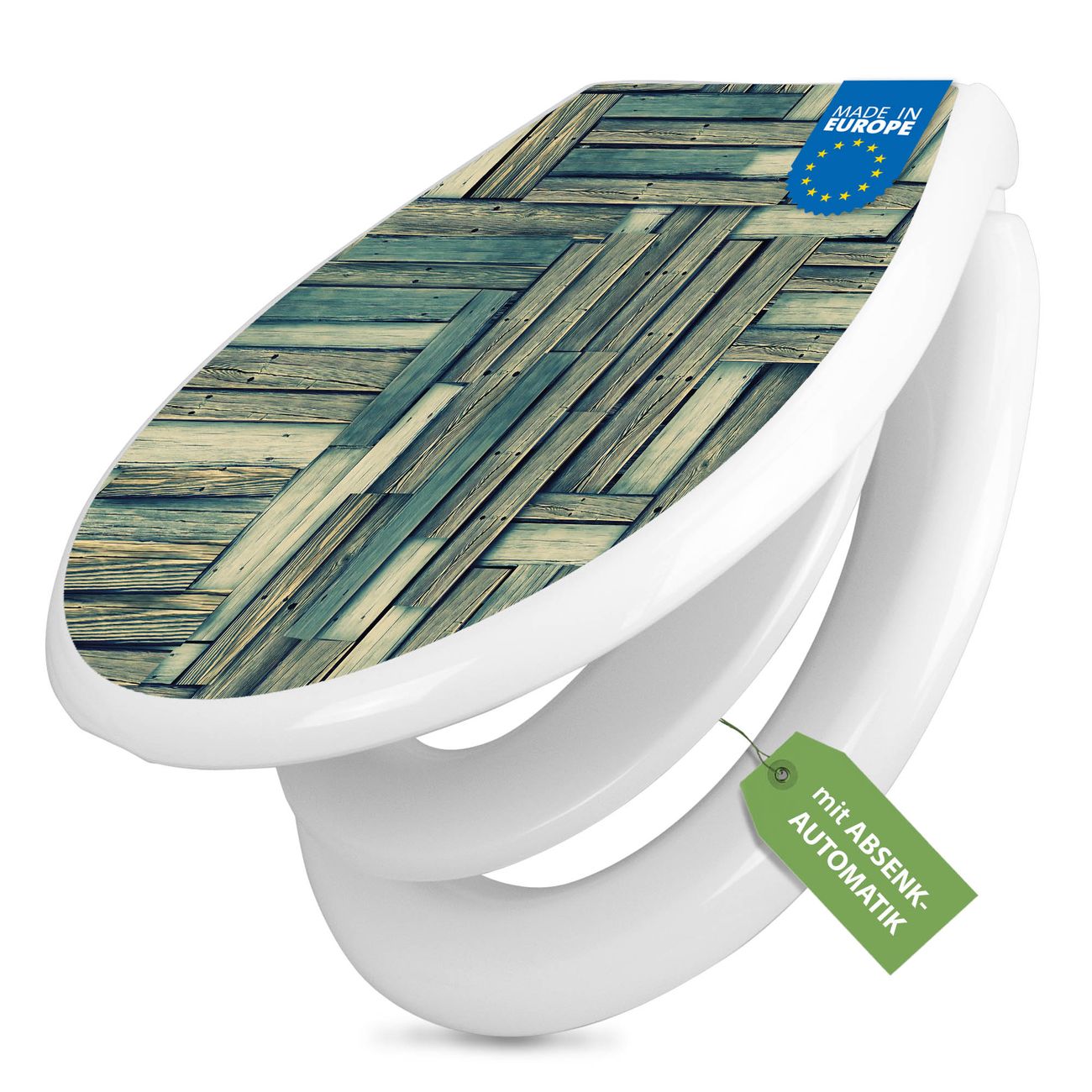 Toilettendeckel weiß mit Absenkautomatik Motiv Grüne Planken