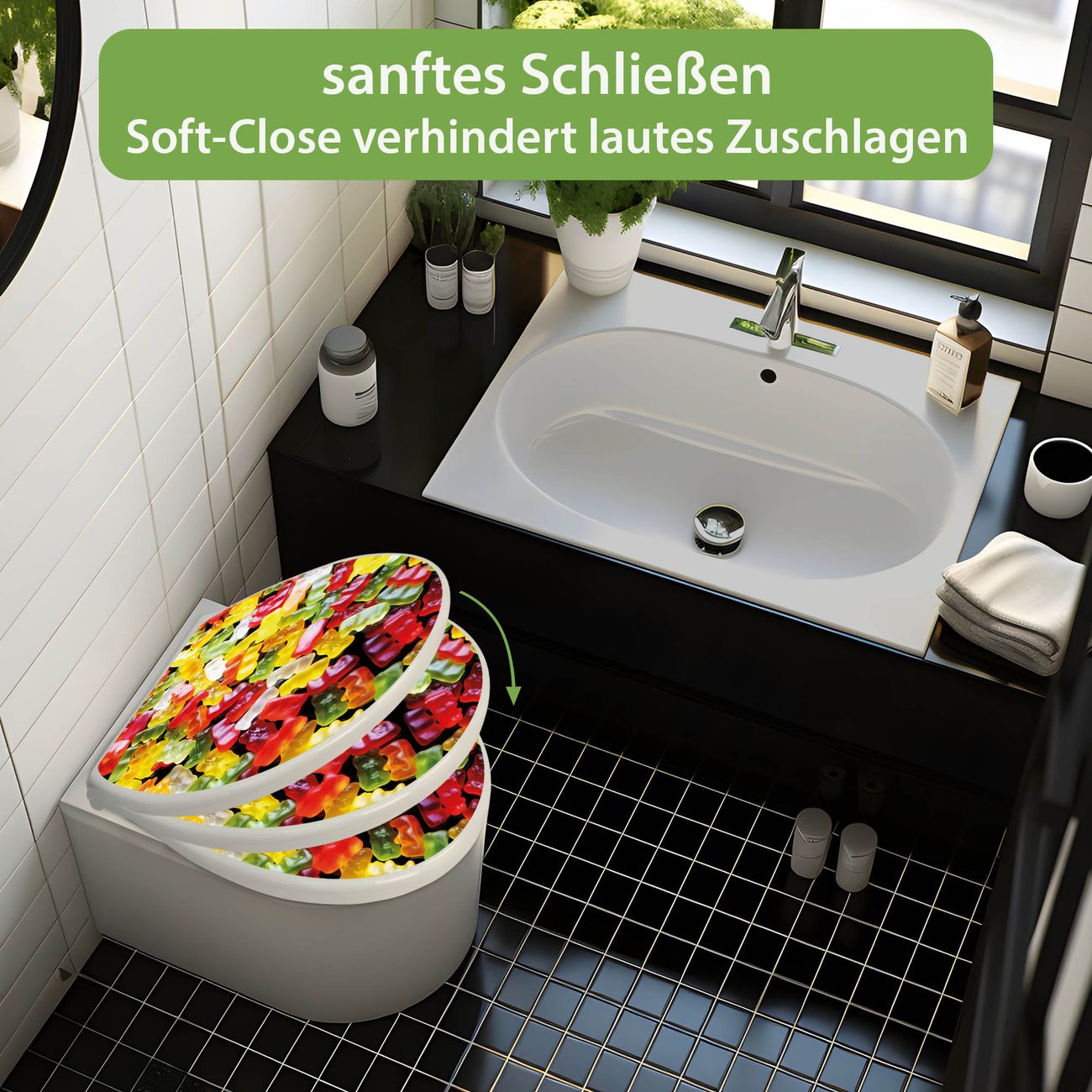 Toilettendeckel weiß mit Absenkautomatik Motiv Gummibaerchen
