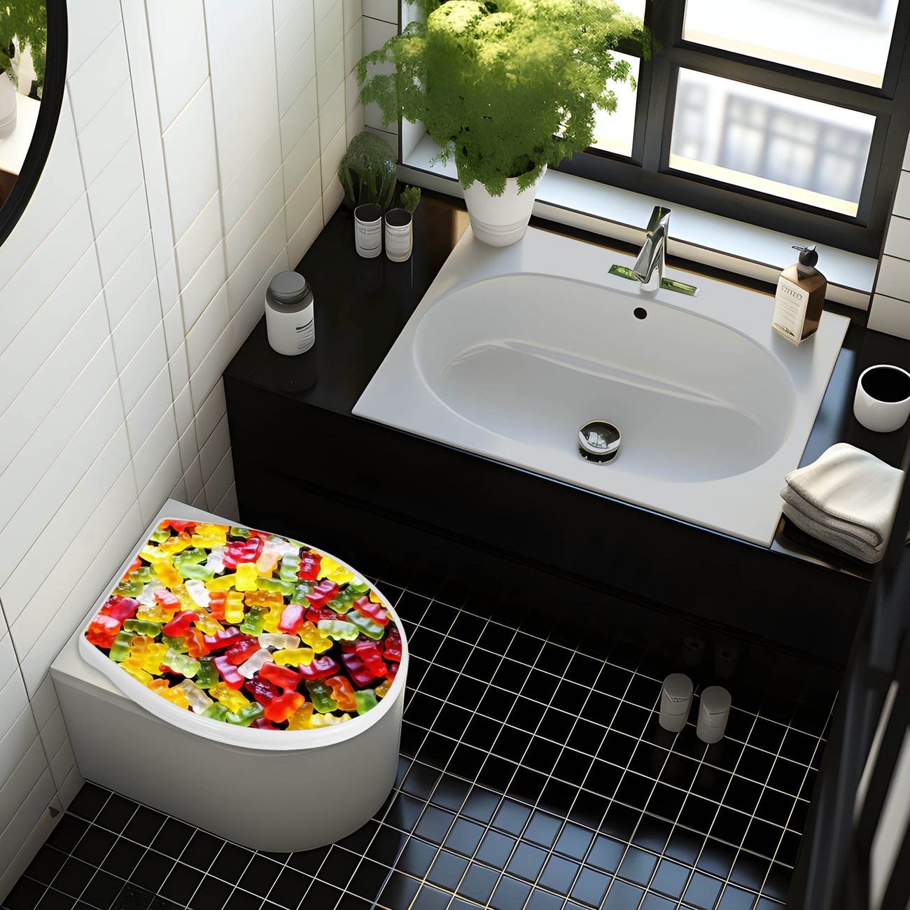 Toilettendeckel weiß mit Absenkautomatik Motiv Gummibaerchen