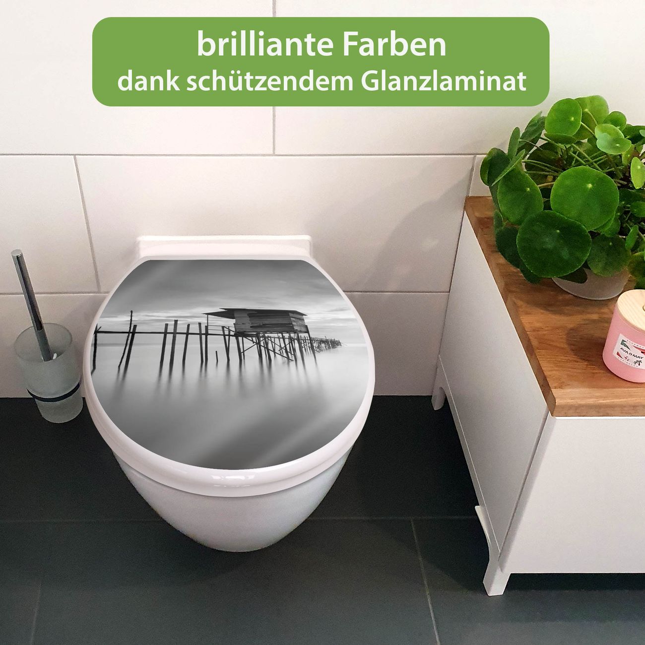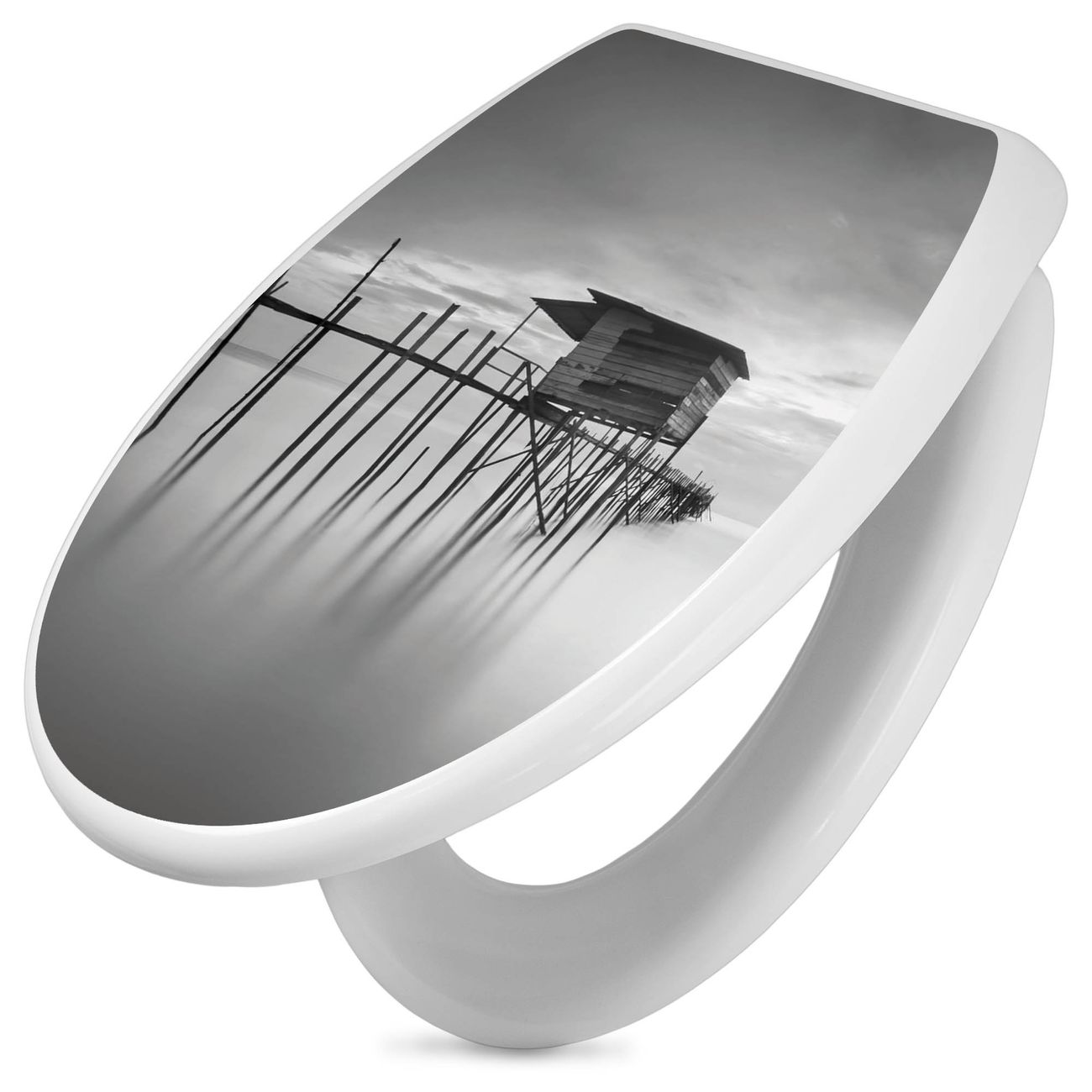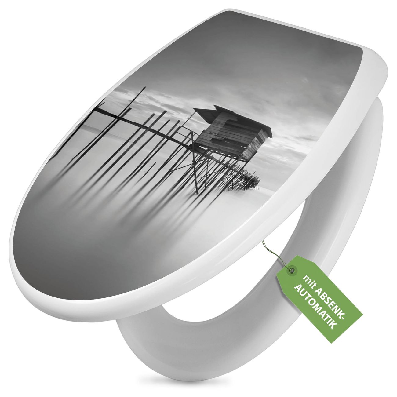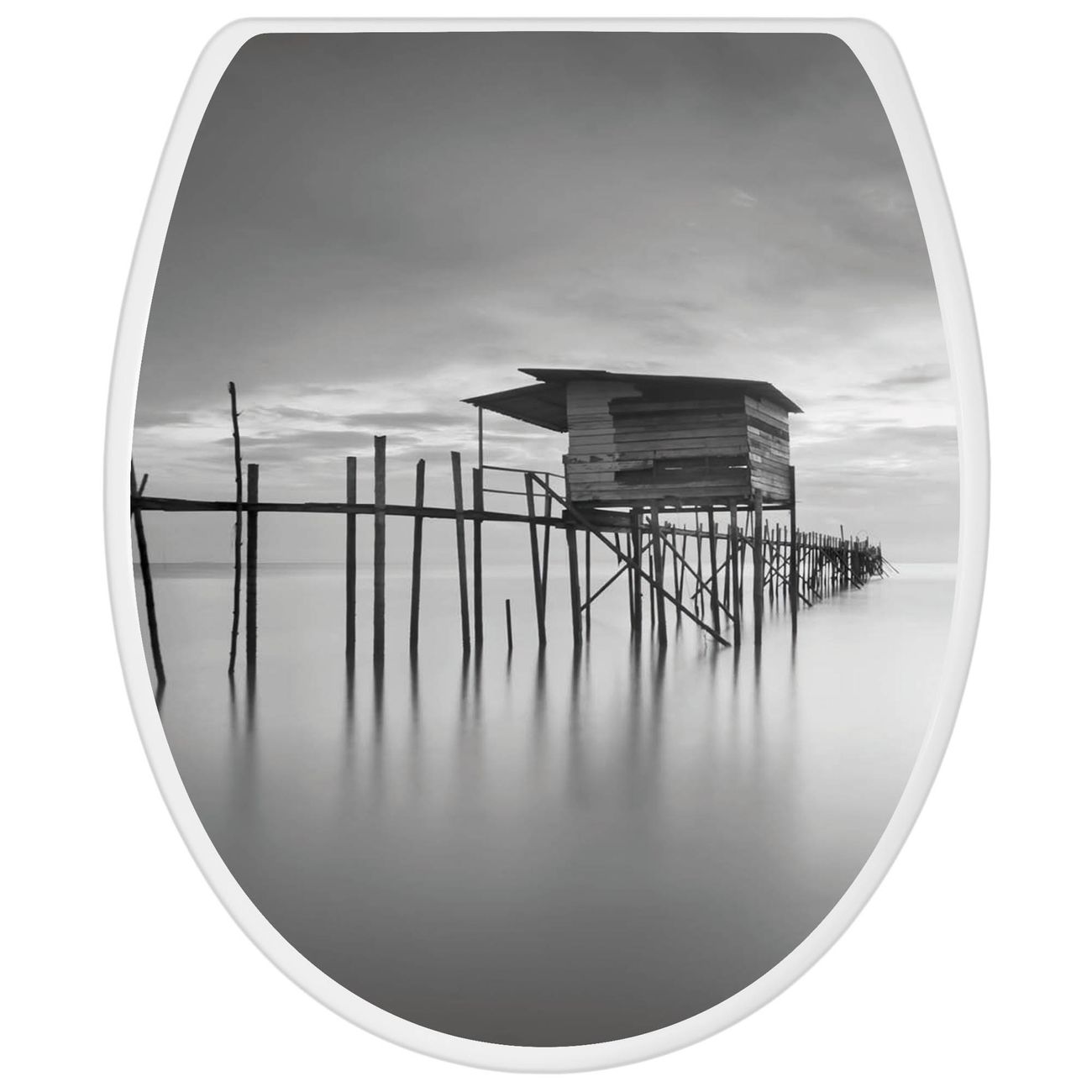 Toilettendeckel weiß mit Absenkautomatik Motiv Haus am See
