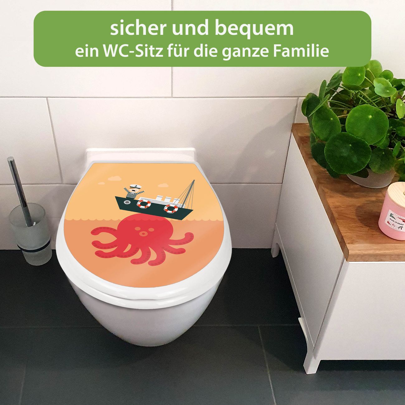 FUNKTION:Mit dem banjado Familien WC Sitz mit Absenkautomatik und dem Motiv Motiv Havarie verbinden Sie Design mit Funktionalität. Sie erhalten den Toilettendeckel in bewährt guter Qualität mit Montagematerial passend auf alle Euro-WC-Becken. Die Gesamtgröße beträgt 37,1cm x 44,9cm x 5cm, die Grundfarbe ist weiß.</p> DESIGN:Der Klodeckel in weiß mit Motiv Motiv Havarie hat eine ansprechende Optik, eine besondere Form und ist sehr stabil. Das Motiv besteht aus einer farbbrillianten Motivfolie, die durch ein Schutzlaminat zusätzlich vor Kratzern schützt. Der integrierte Kindersitz fügt sich harmonisch ein. DETAILS:Der Toilettensitz mit Soft Close besteht aus hochwertigem Polypropylen, ist geruchlos, ungiftig und kann mit handelsüblicher Seife gereinigt werden. Die Montage kann von von oben oder von unten erfolgen und ist kinderleicht. NUTZEN:Mit Hilfe der detaillierten Aufbauanleitung ermöglichen wir eine schnelle und unkomplizierte Montage. Die banjado Klobrille ist universell geeignet für alle Euro-WC-Schüsseln. Der Kindersitz kann unkompliziert entfernt werden. BANJADO:Ihr WC-Deckel wird in Sachsen in einer kleinen Manufaktur von Hand veredelt. Die Motivfolie ist lösungsmittelfrei und schutzlaminiert für einen langen Halt. Wir wünschen viel Freude bei der Auswahl eines schönen Motivs.