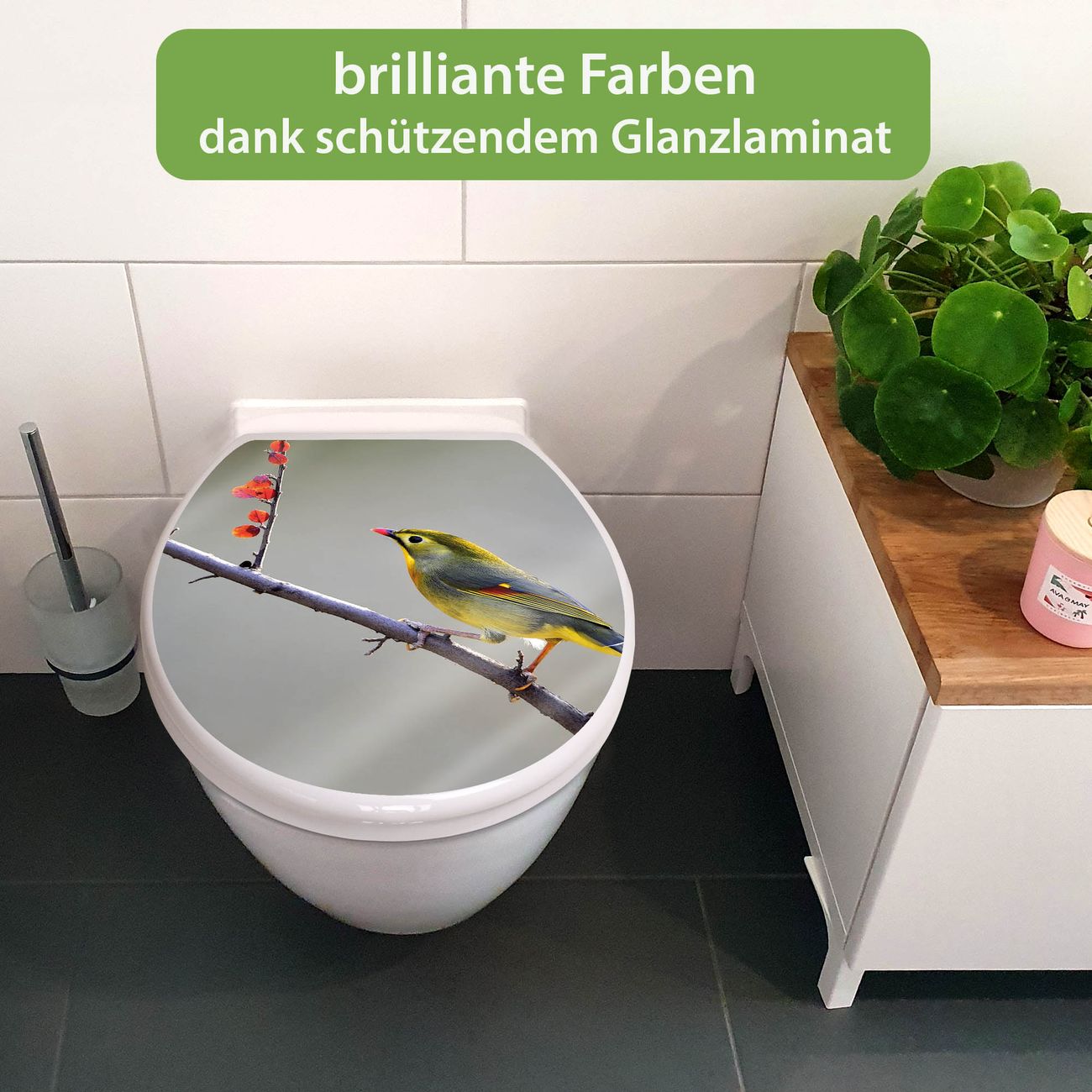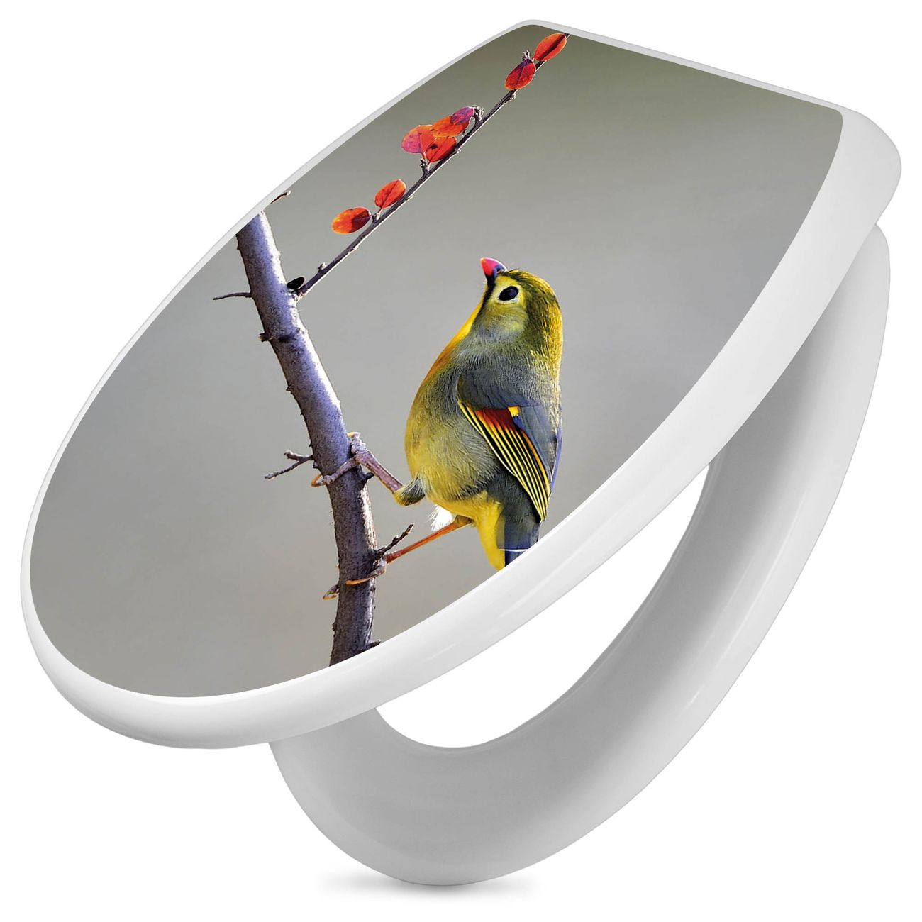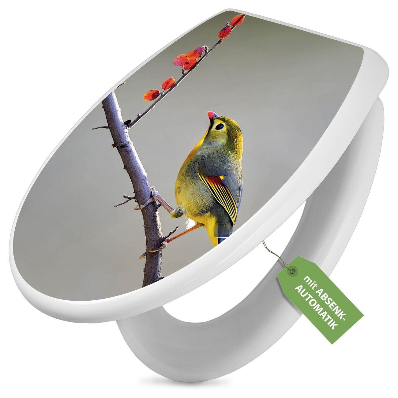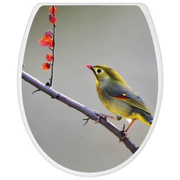 Toilettendeckel weiß mit Absenkautomatik Motiv Herbst Vogel