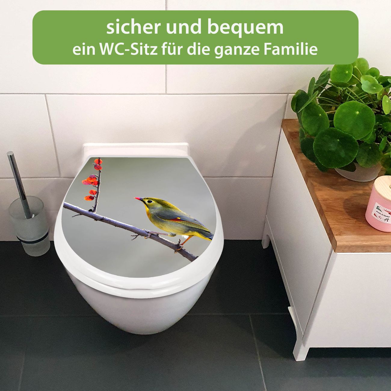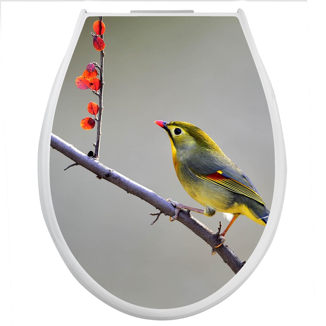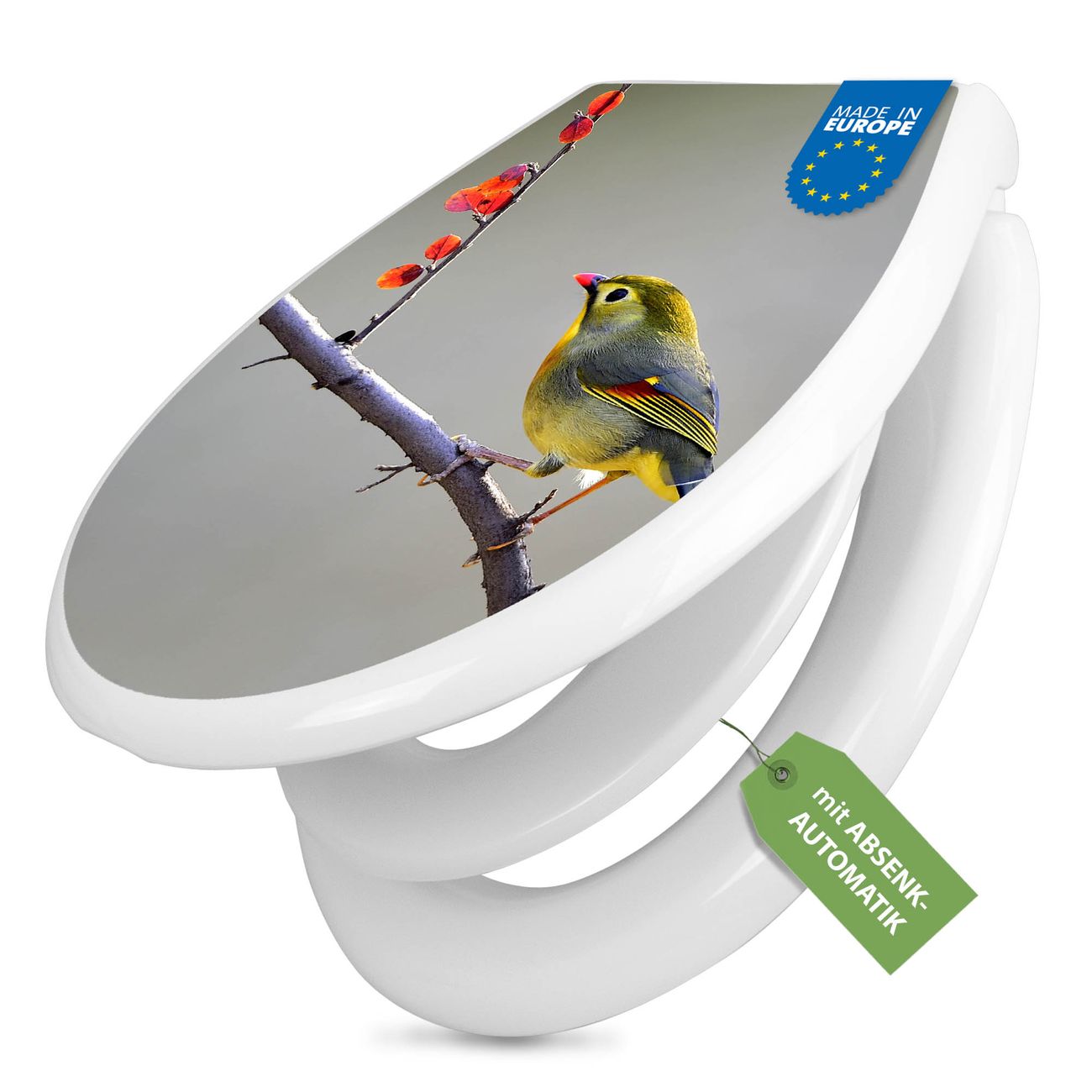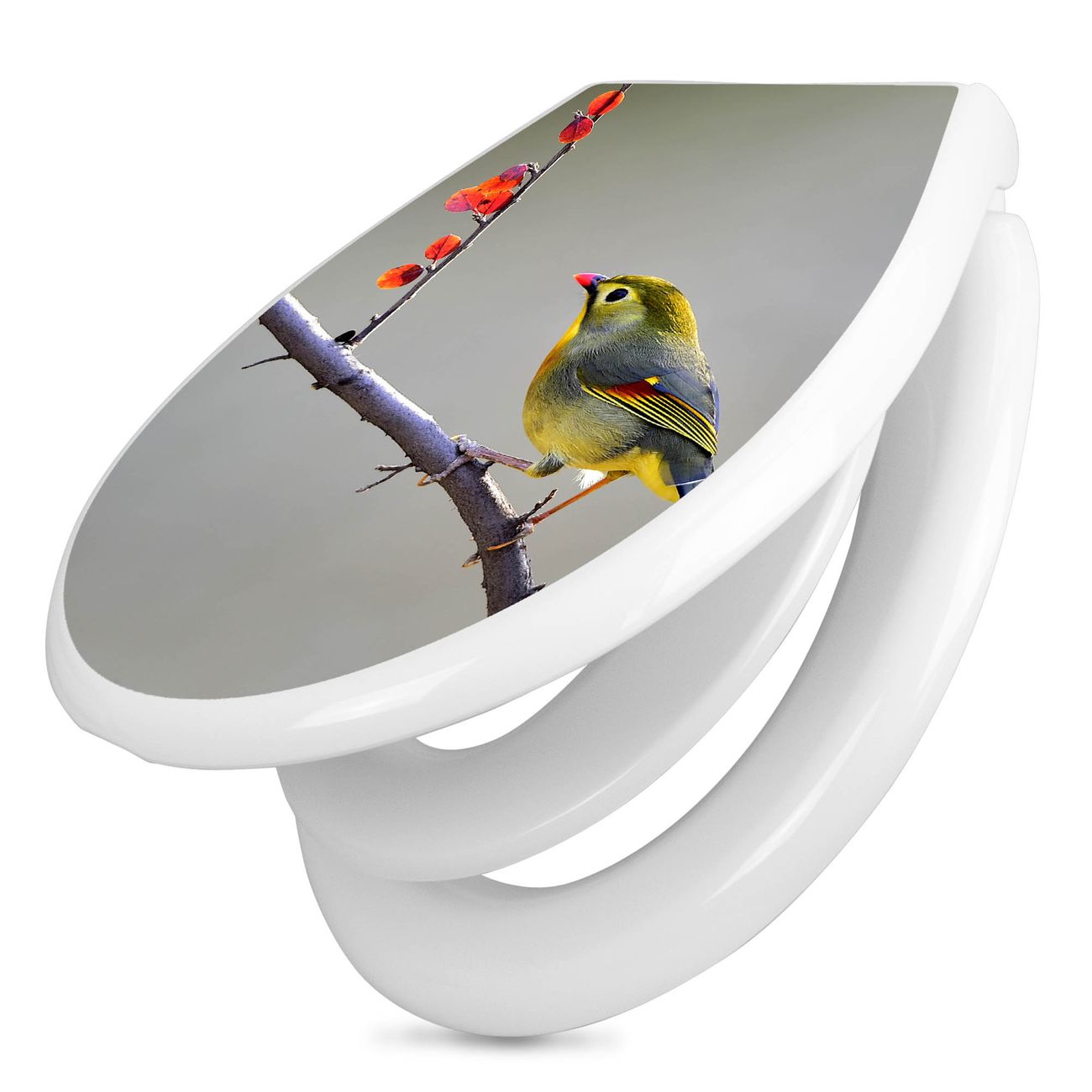 Toilettendeckel weiß mit Absenkautomatik Motiv Herbst Vogel