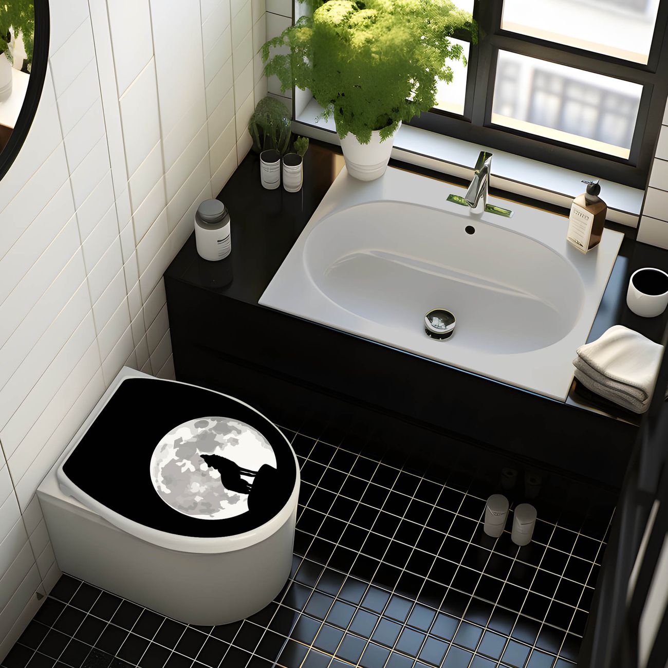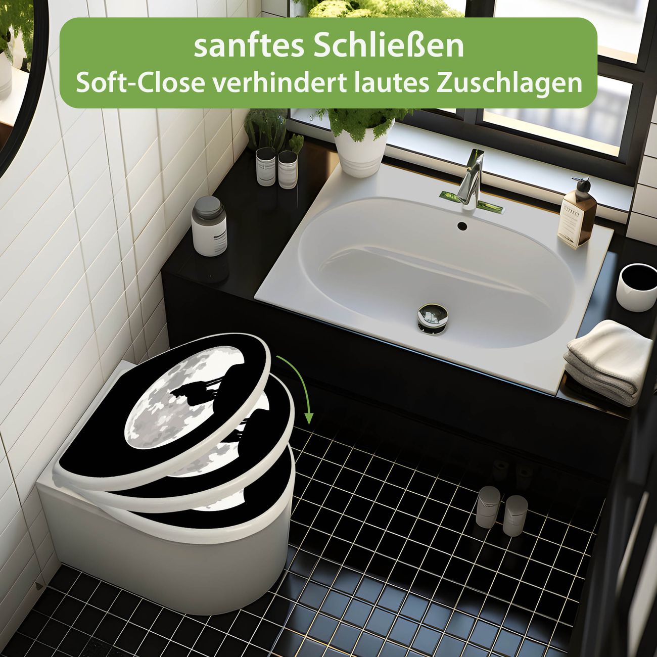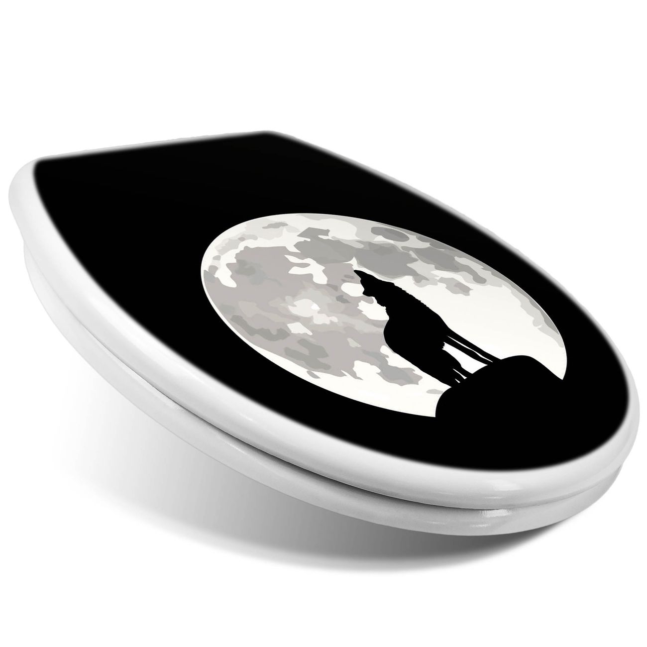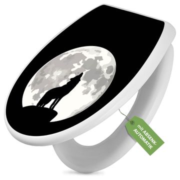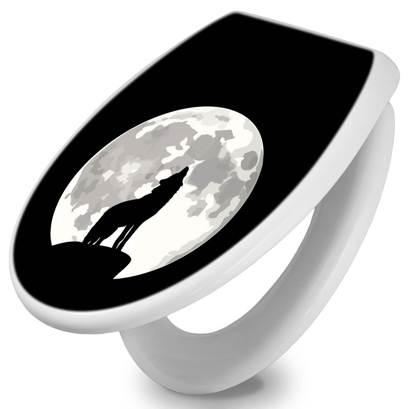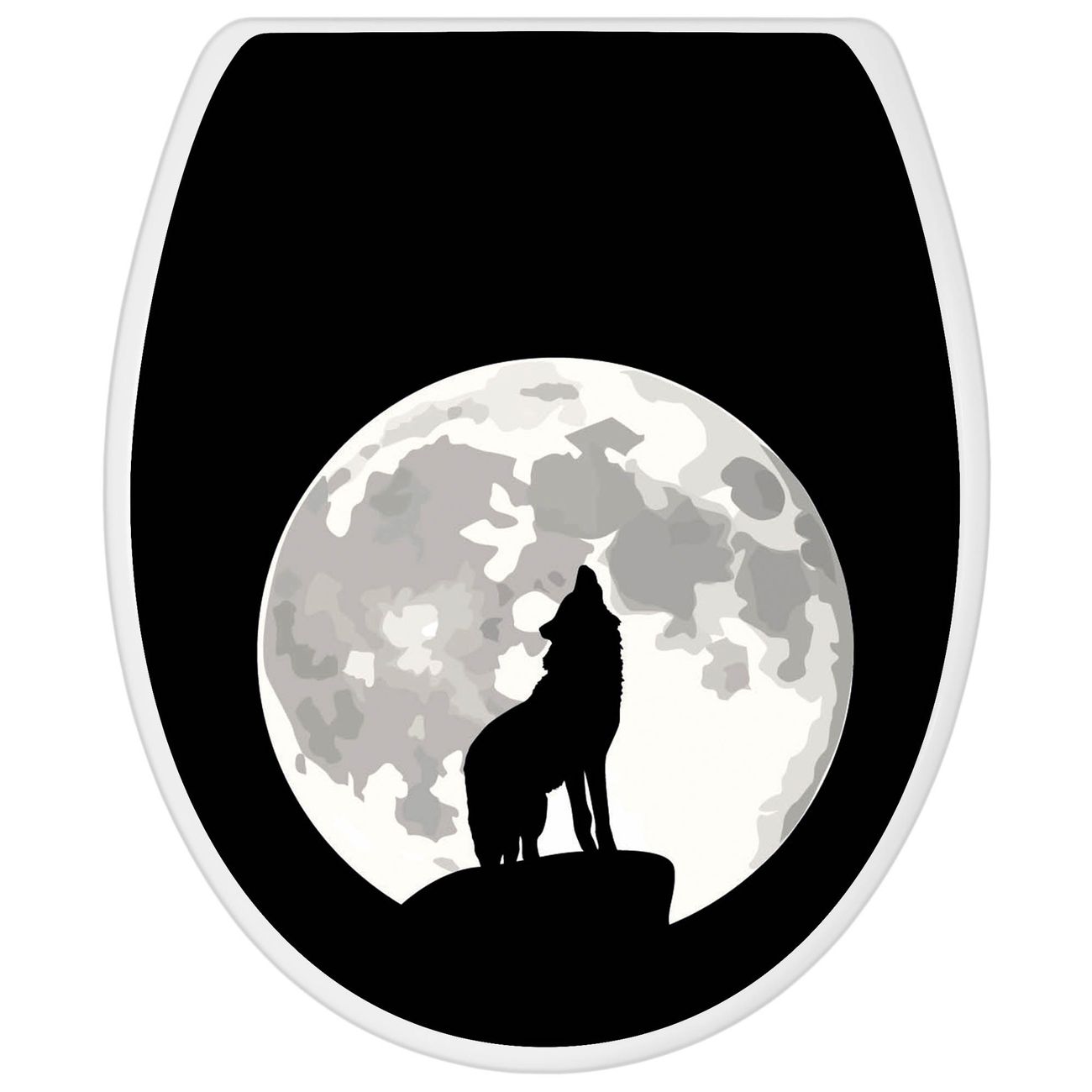 Toilettendeckel weiß mit Absenkautomatik Motiv Heulender Wolf SW