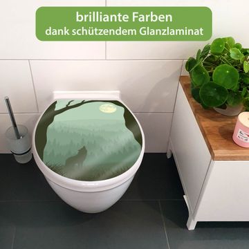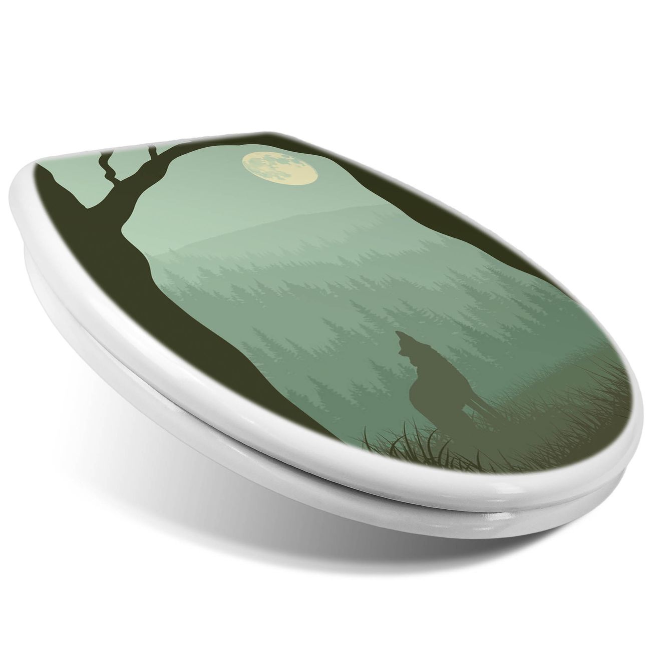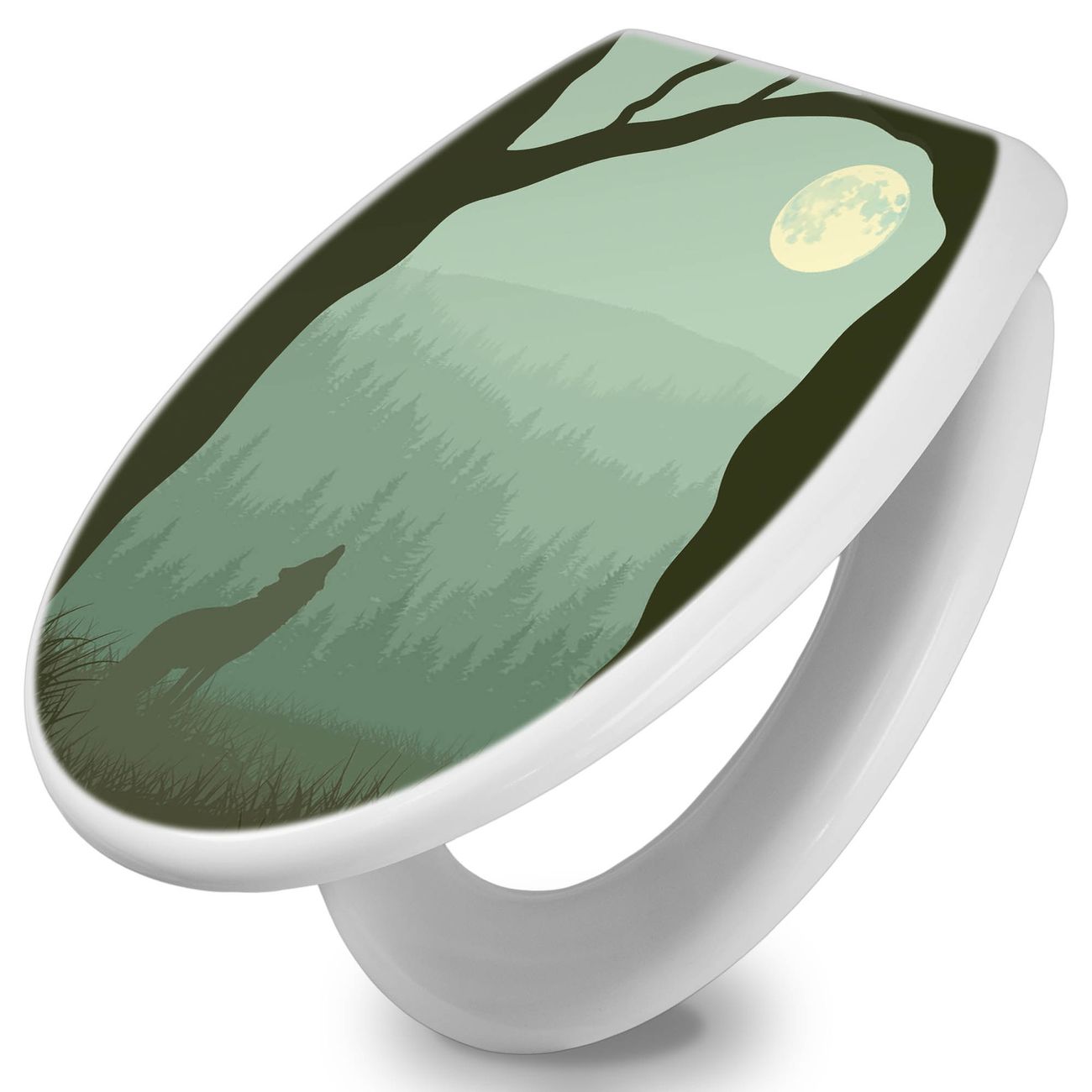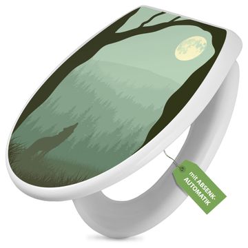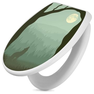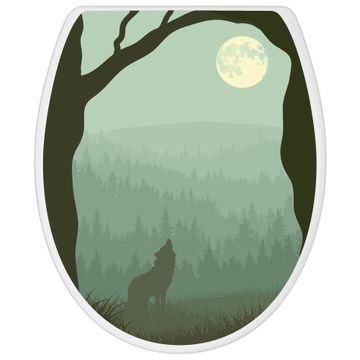 Toilettendeckel weiß mit Absenkautomatik Motiv Heulender Wolf