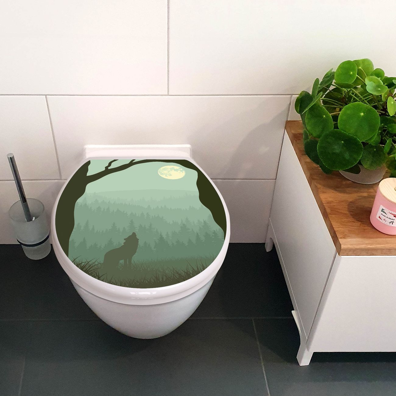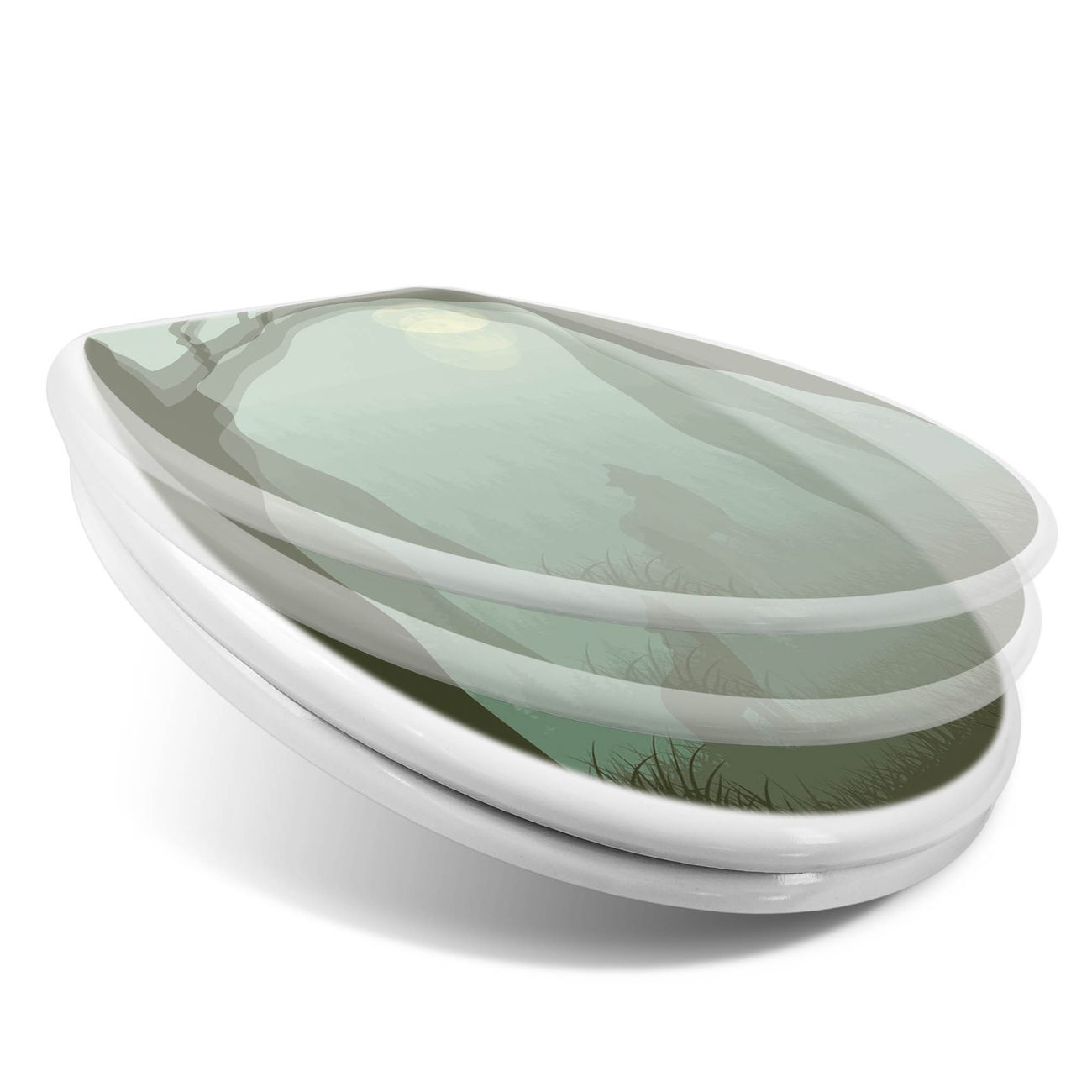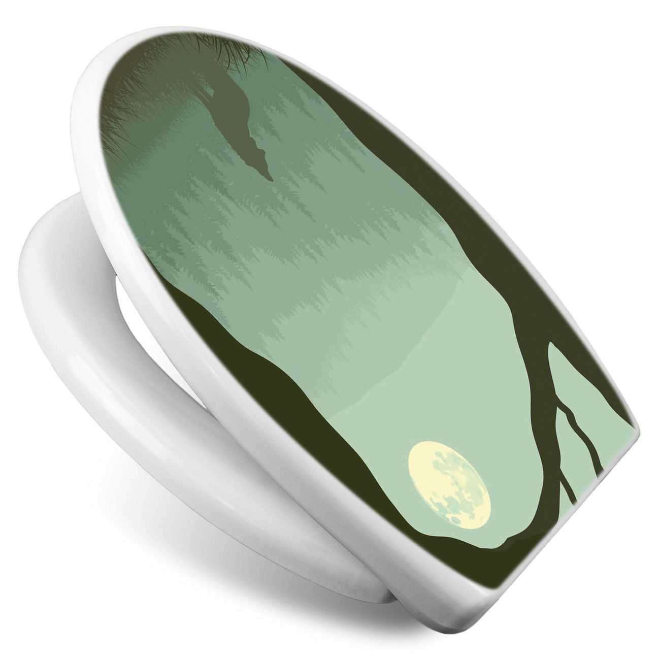 Toilettendeckel weiß mit Absenkautomatik Motiv Heulender Wolf
