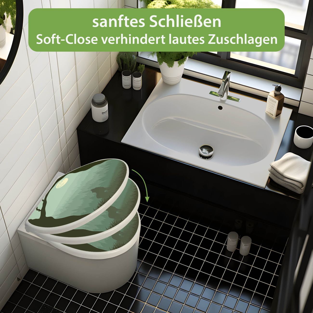- Material: WC-Sitz und Deckel aus robustem Duroplast