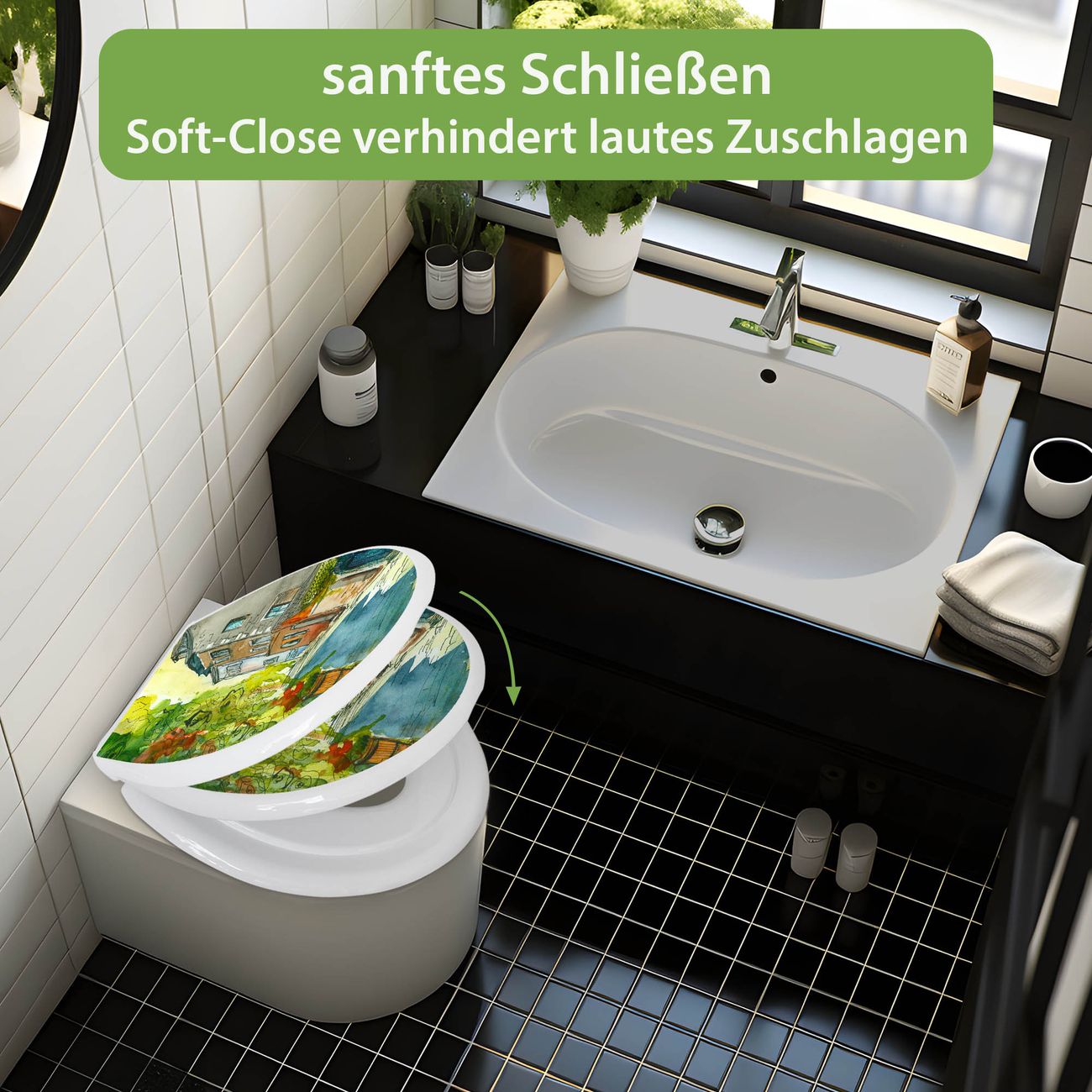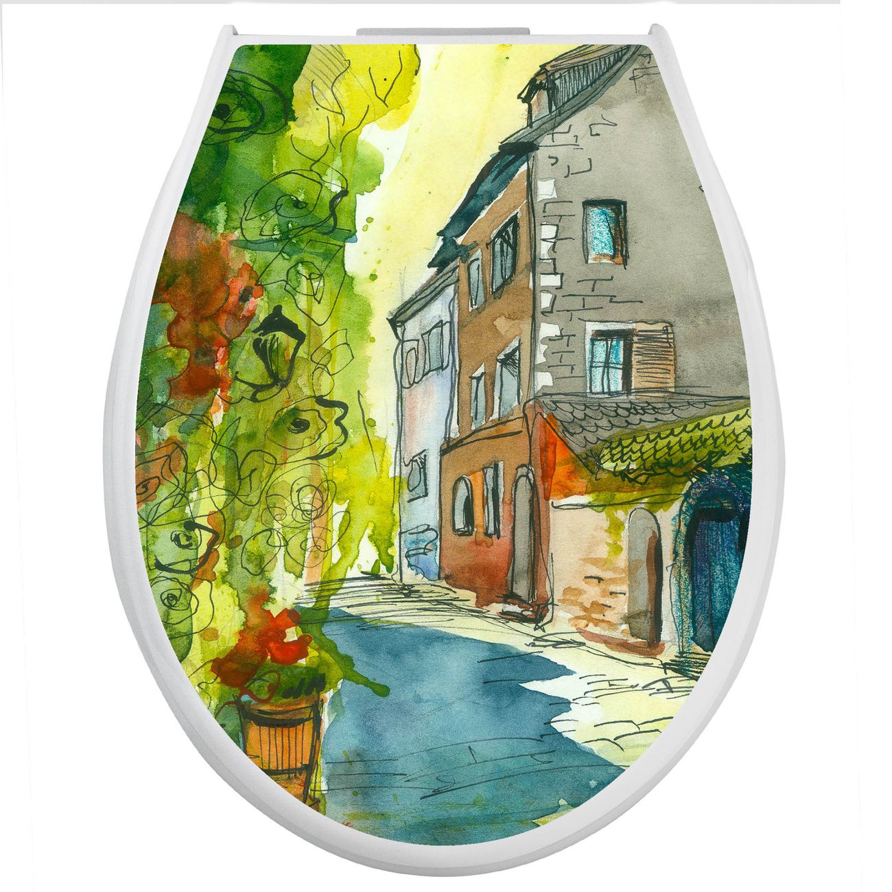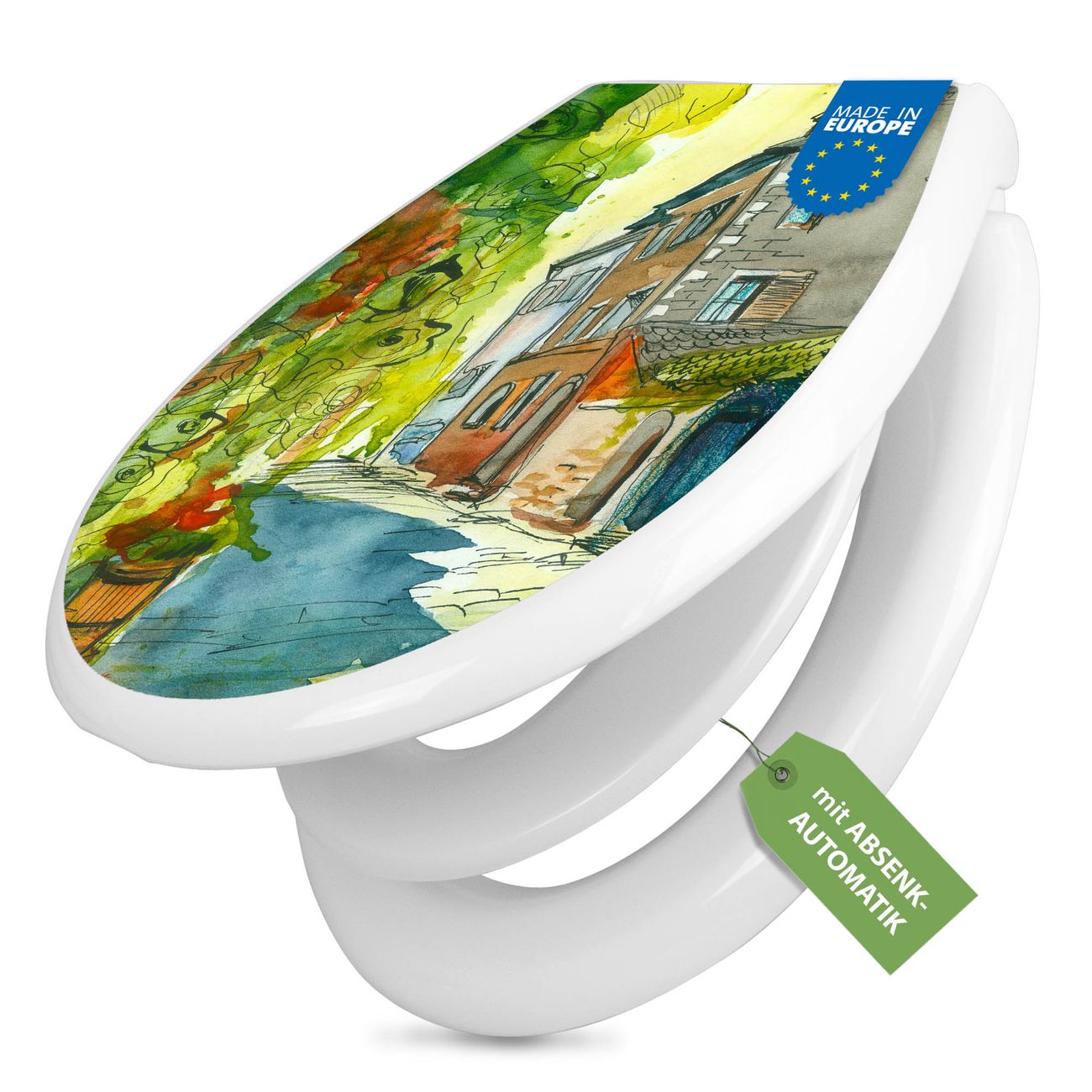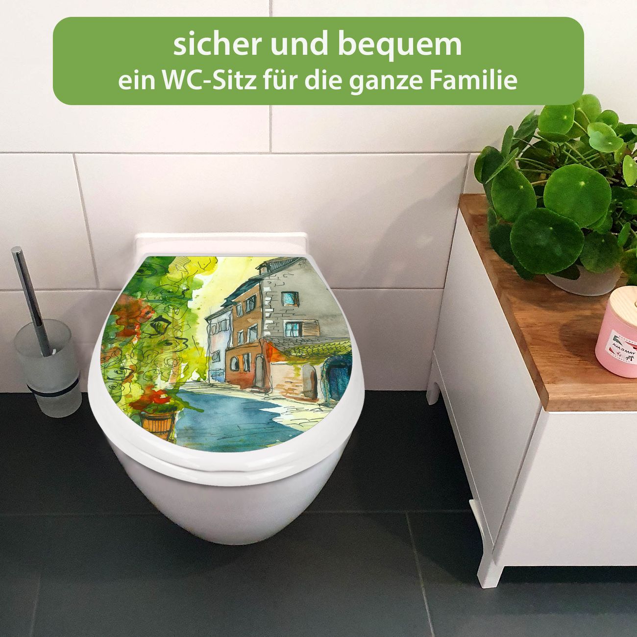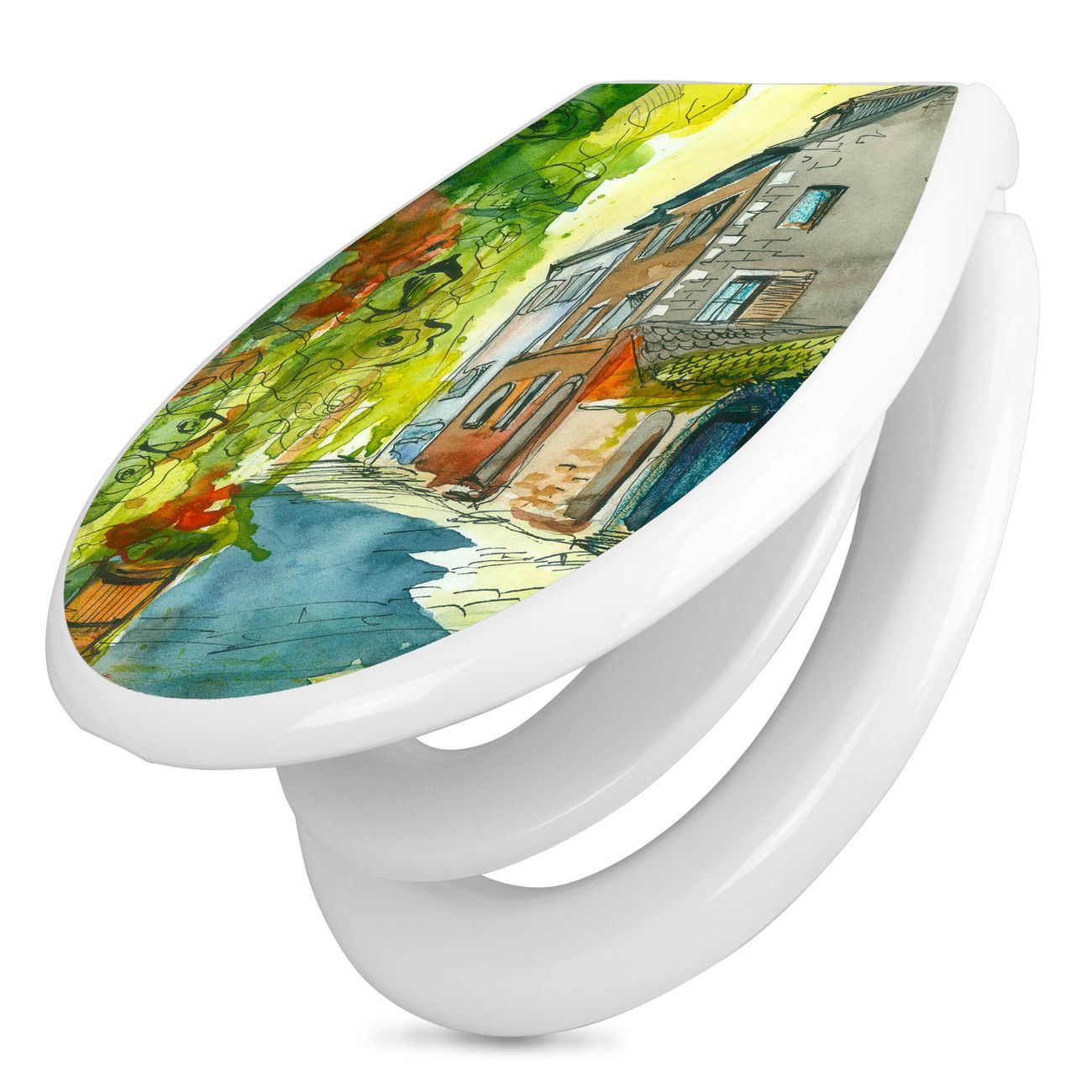 Toilettendeckel weiß mit Absenkautomatik Motiv Historischer Stadtkern
