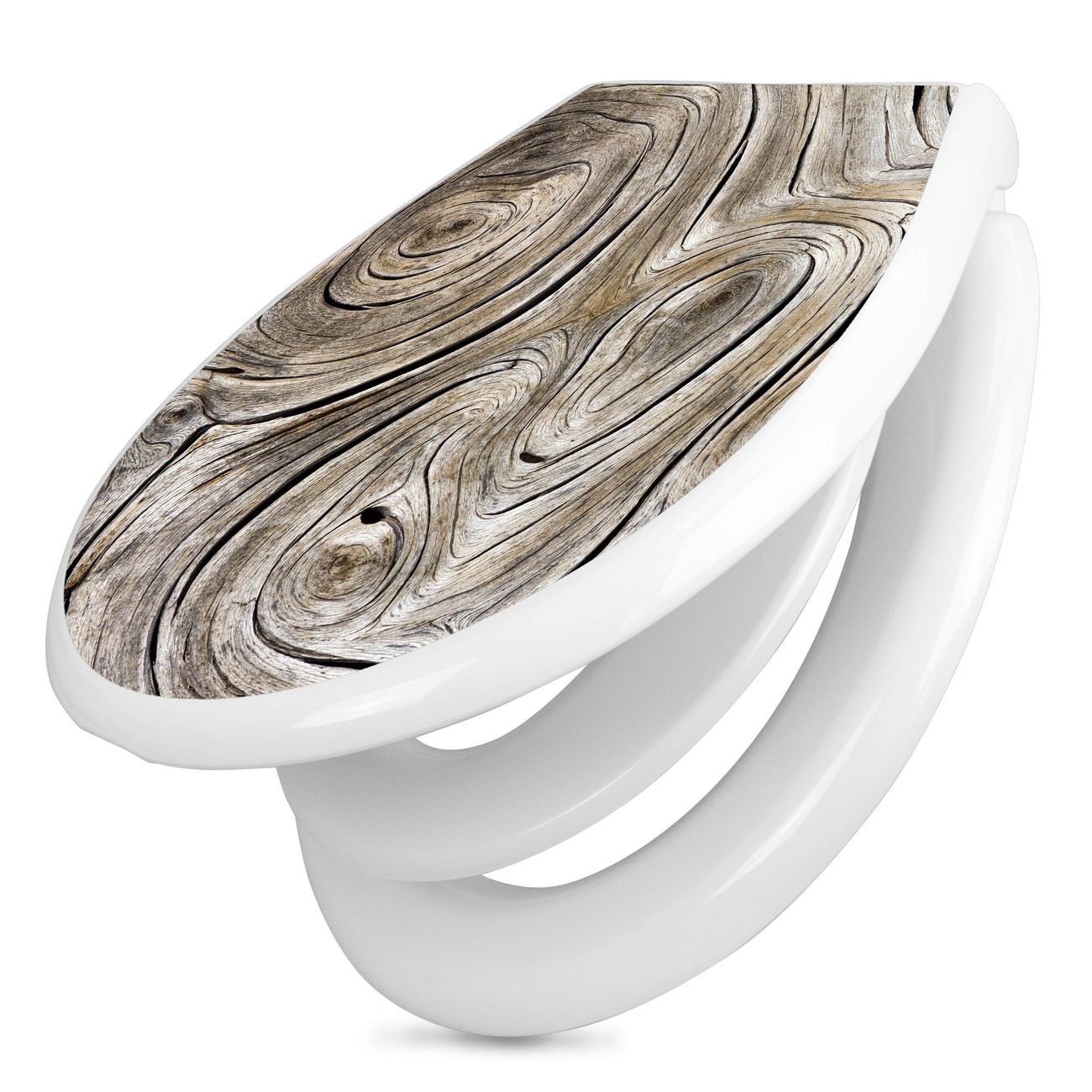 Toilettendeckel weiß mit Absenkautomatik Motiv Holzwirbel