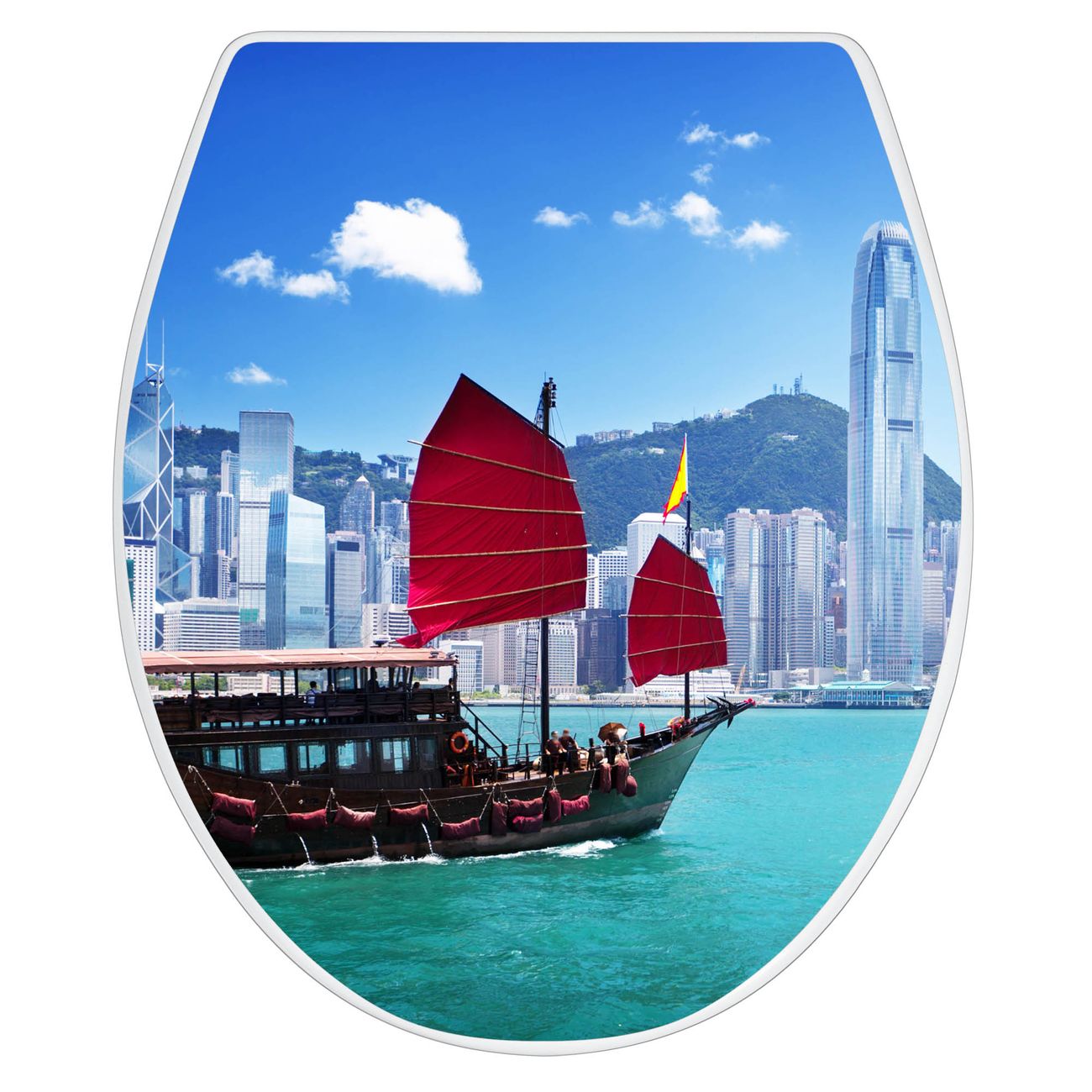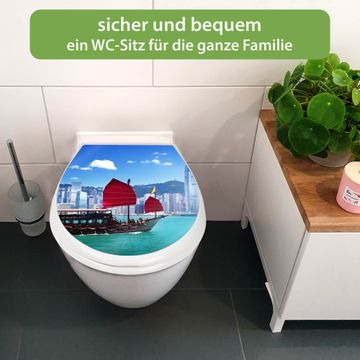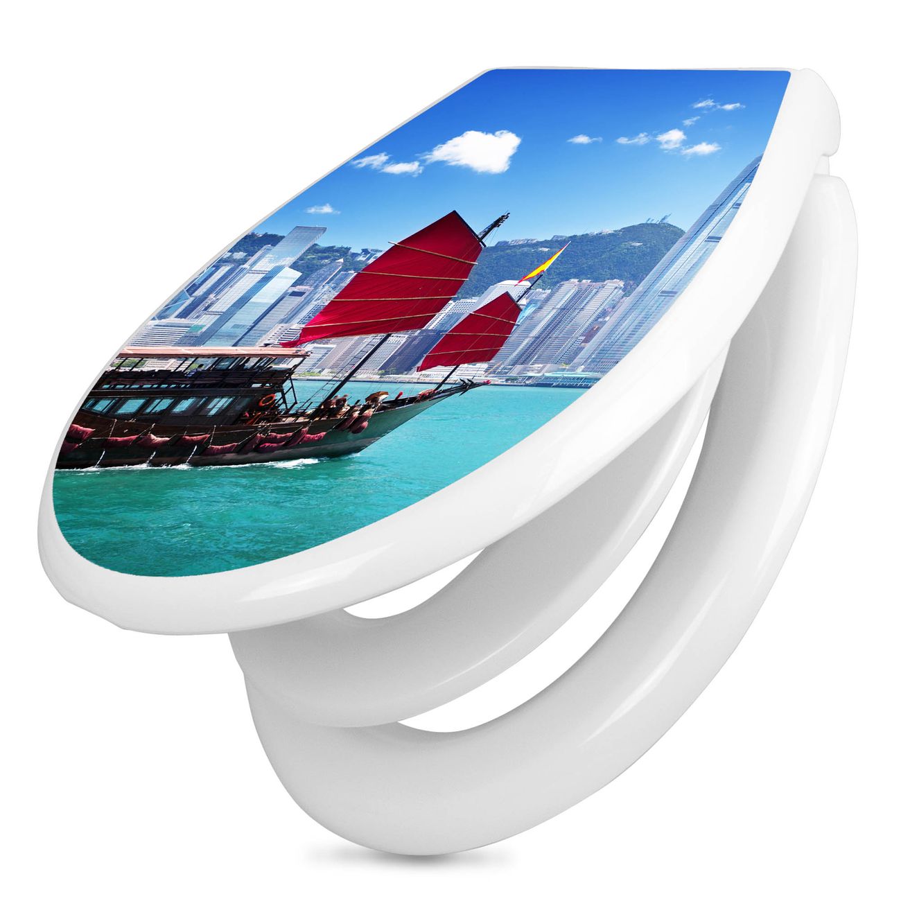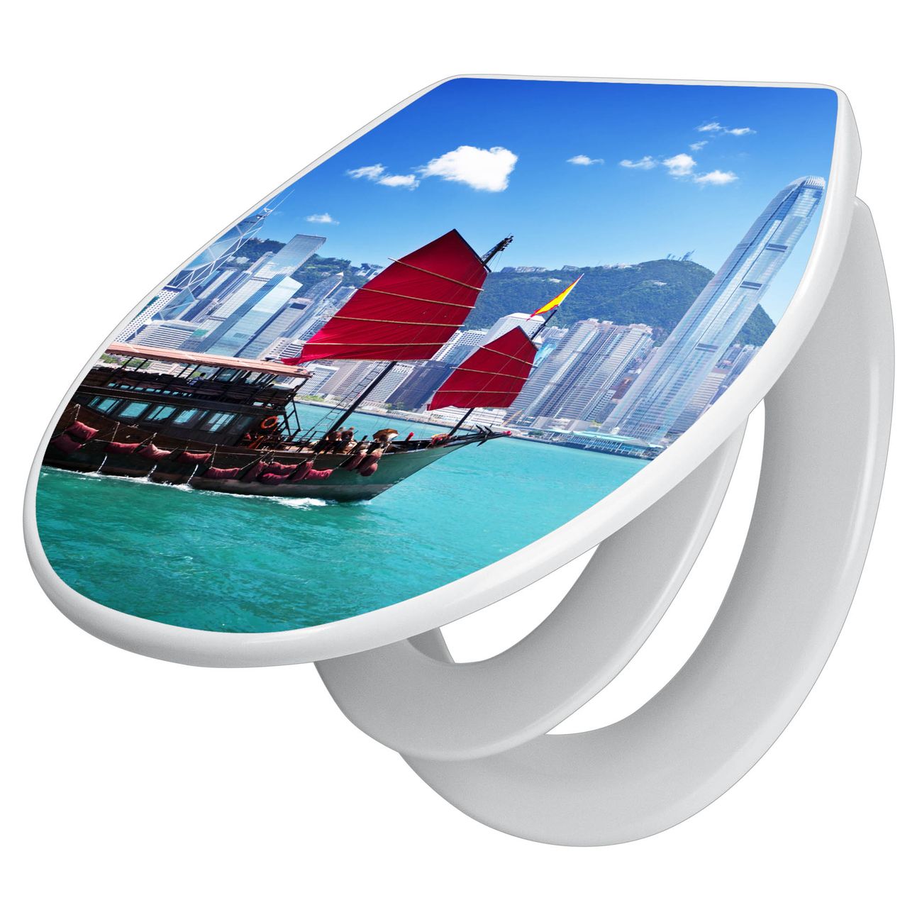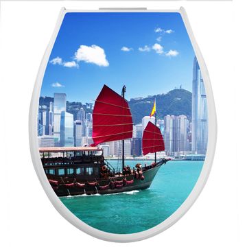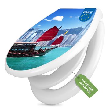Toilettendeckel weiß mit Absenkautomatik Motiv Hong Kong