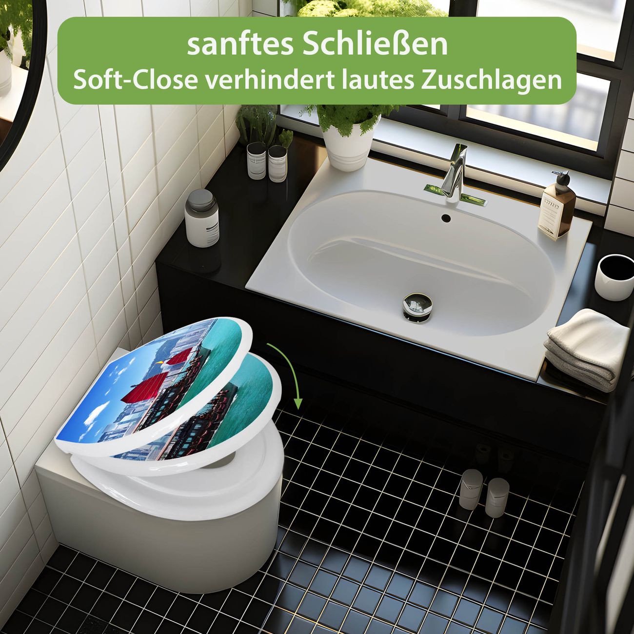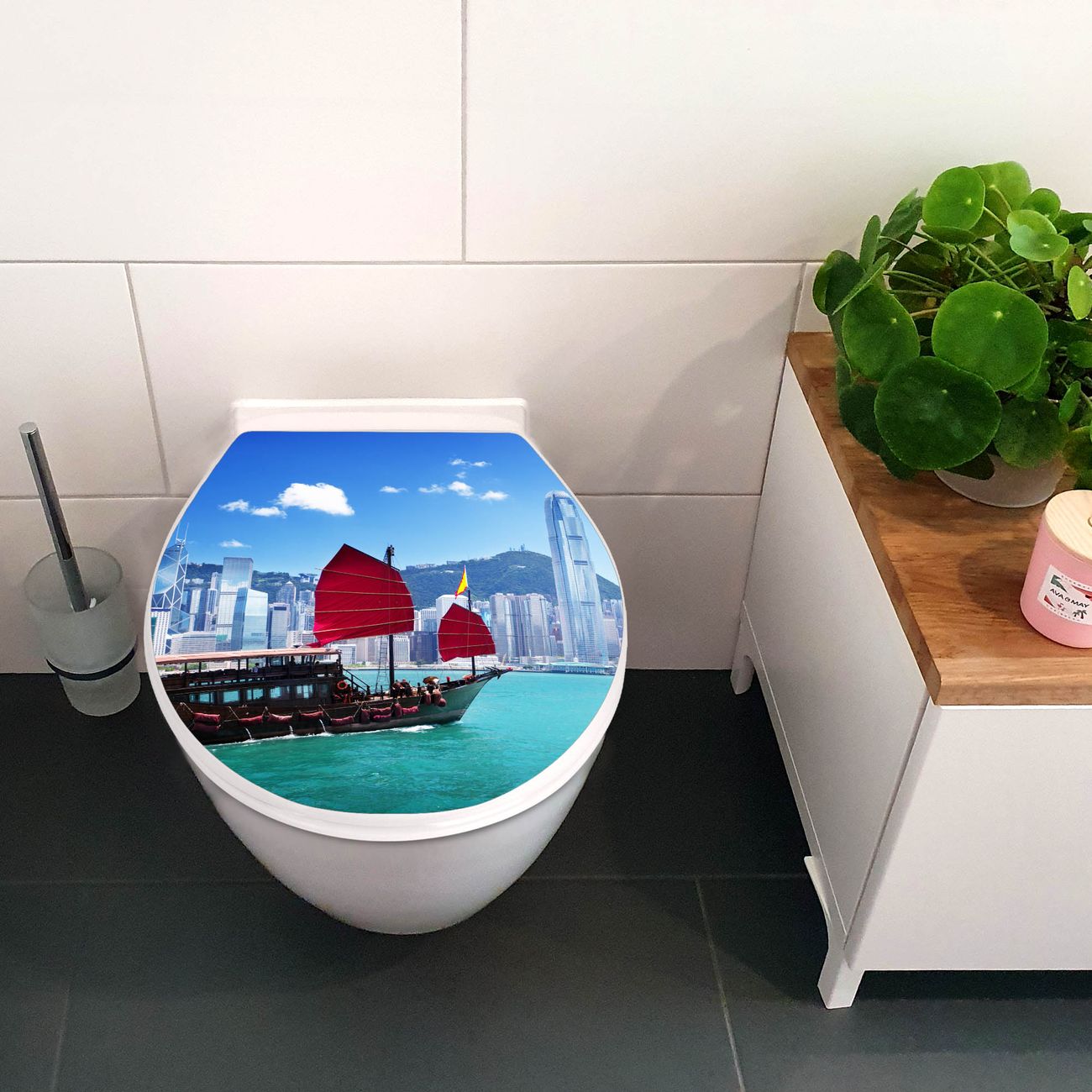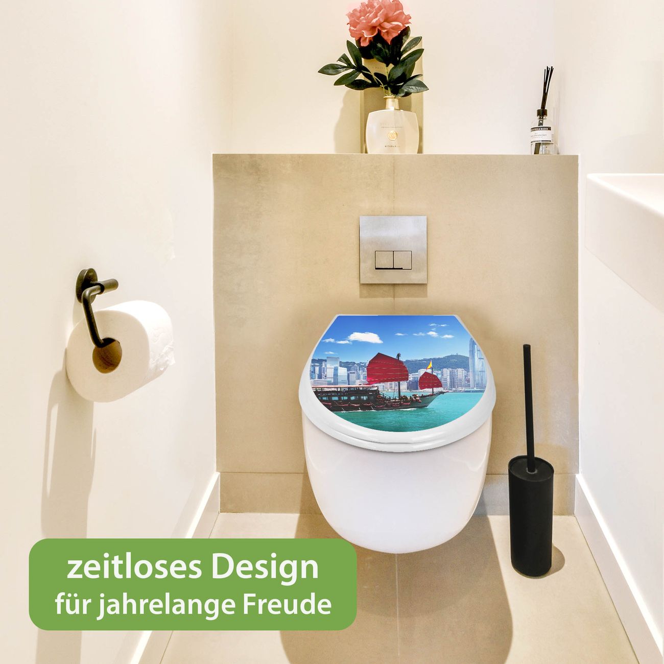 Toilettendeckel weiß mit Absenkautomatik Motiv Hong Kong