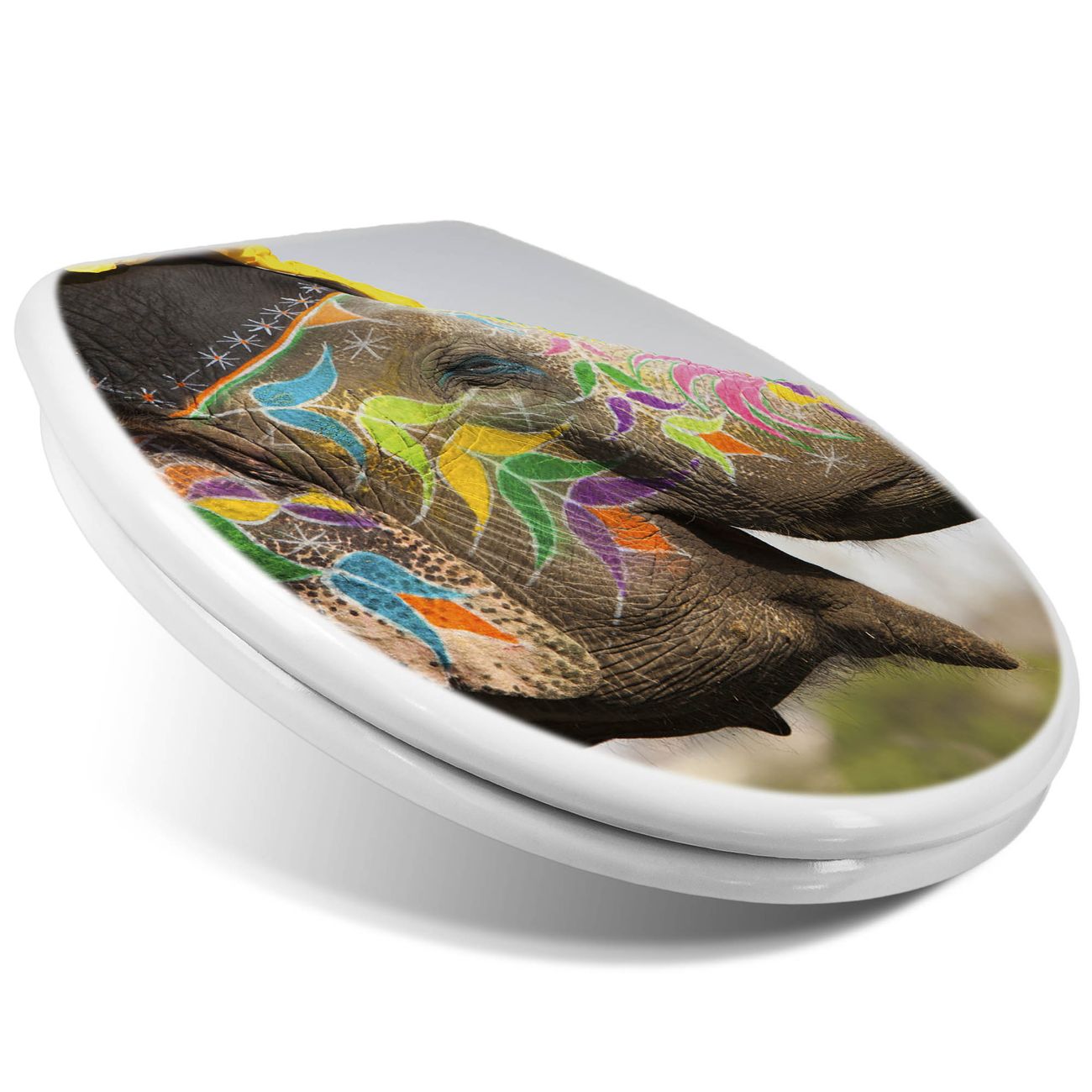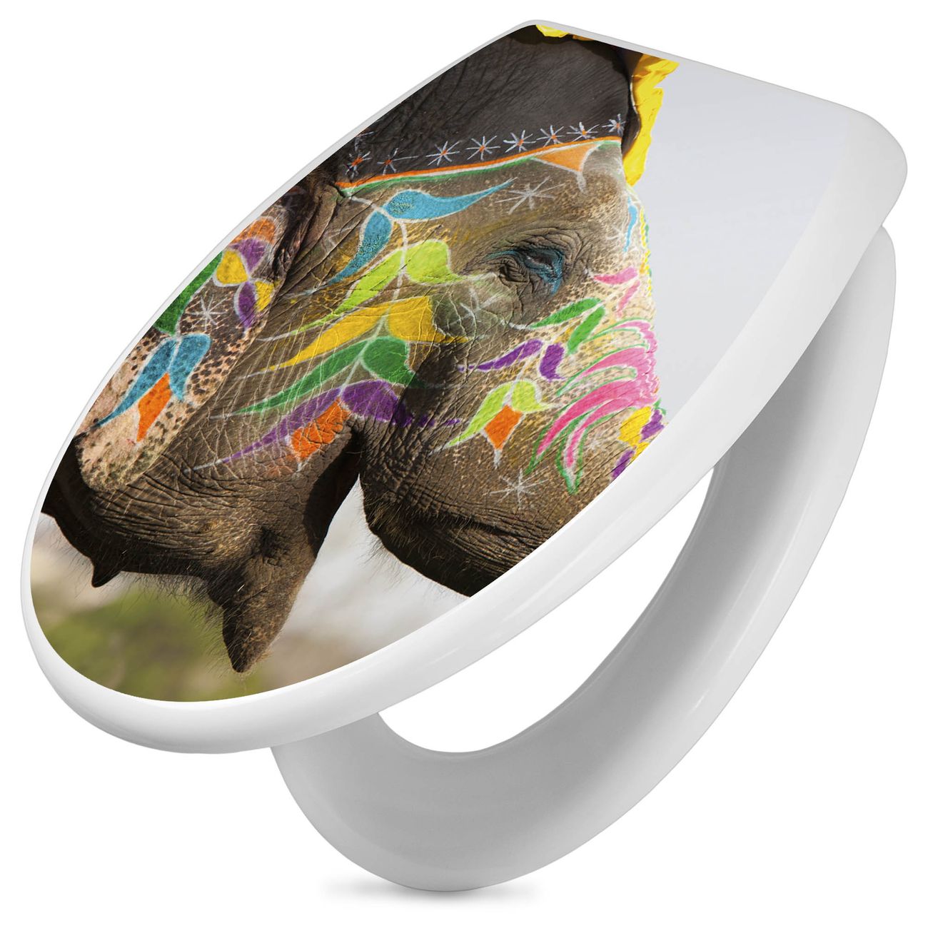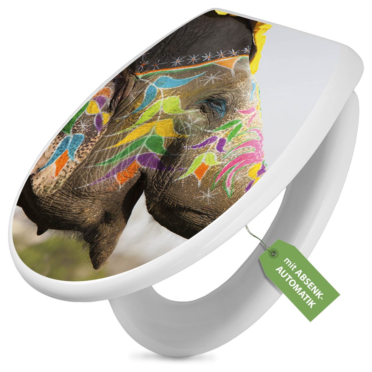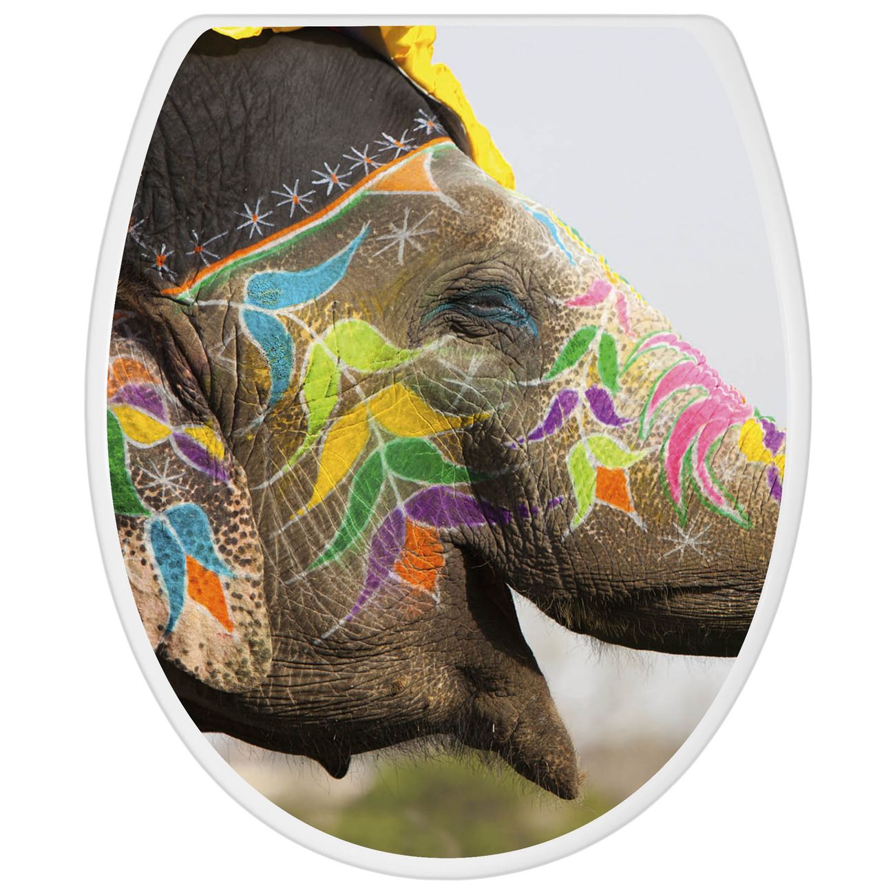 Toilettendeckel weiß mit Absenkautomatik Motiv Indischer Elephant