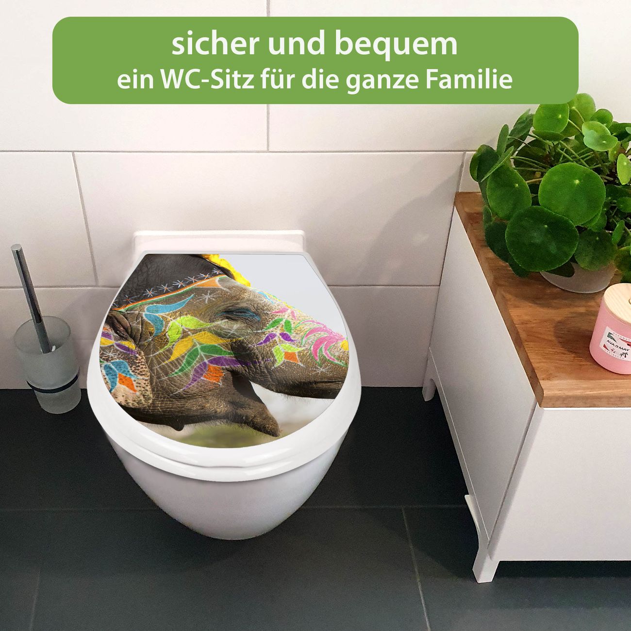 Toilettendeckel weiß mit Absenkautomatik Motiv Indischer Elephant
