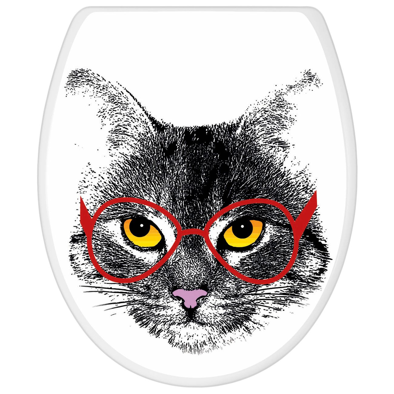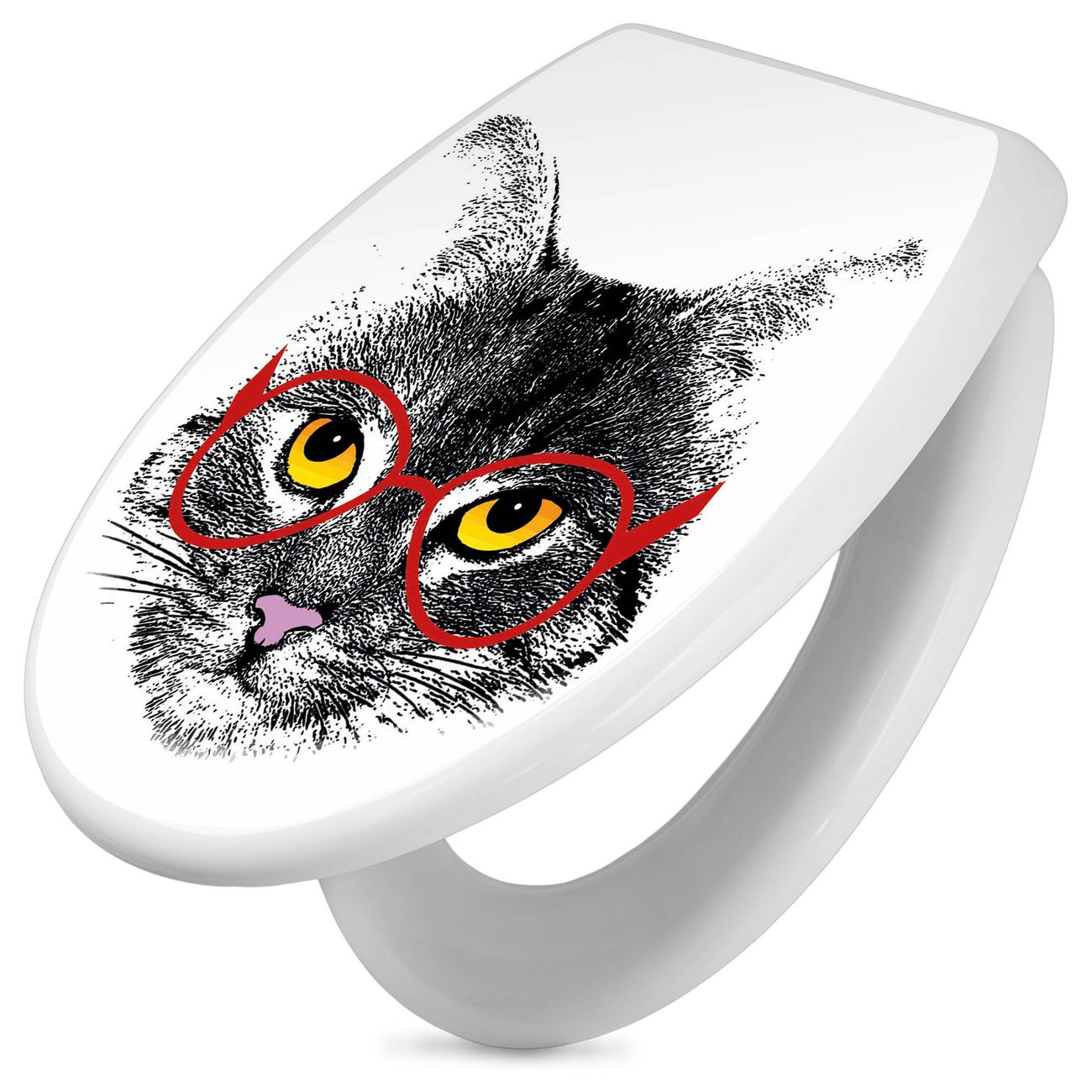 Toilettendeckel weiß mit Absenkautomatik Motiv Intellicat