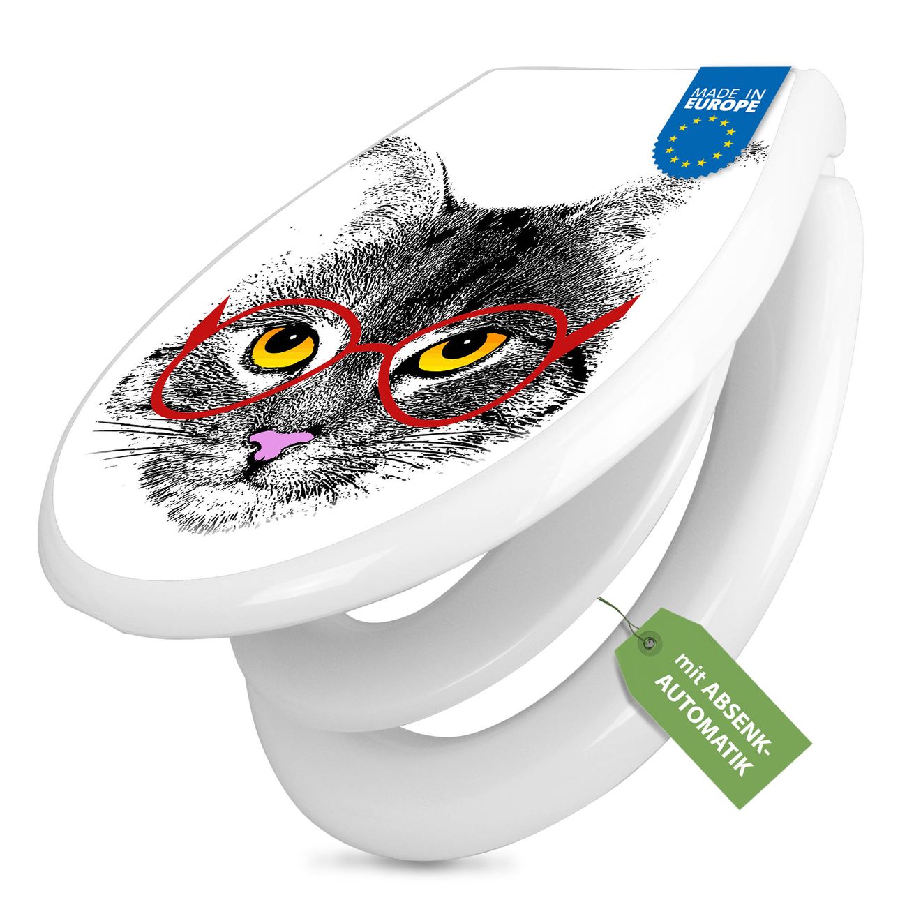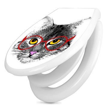 Toilettendeckel weiß mit Absenkautomatik Motiv Intellicat