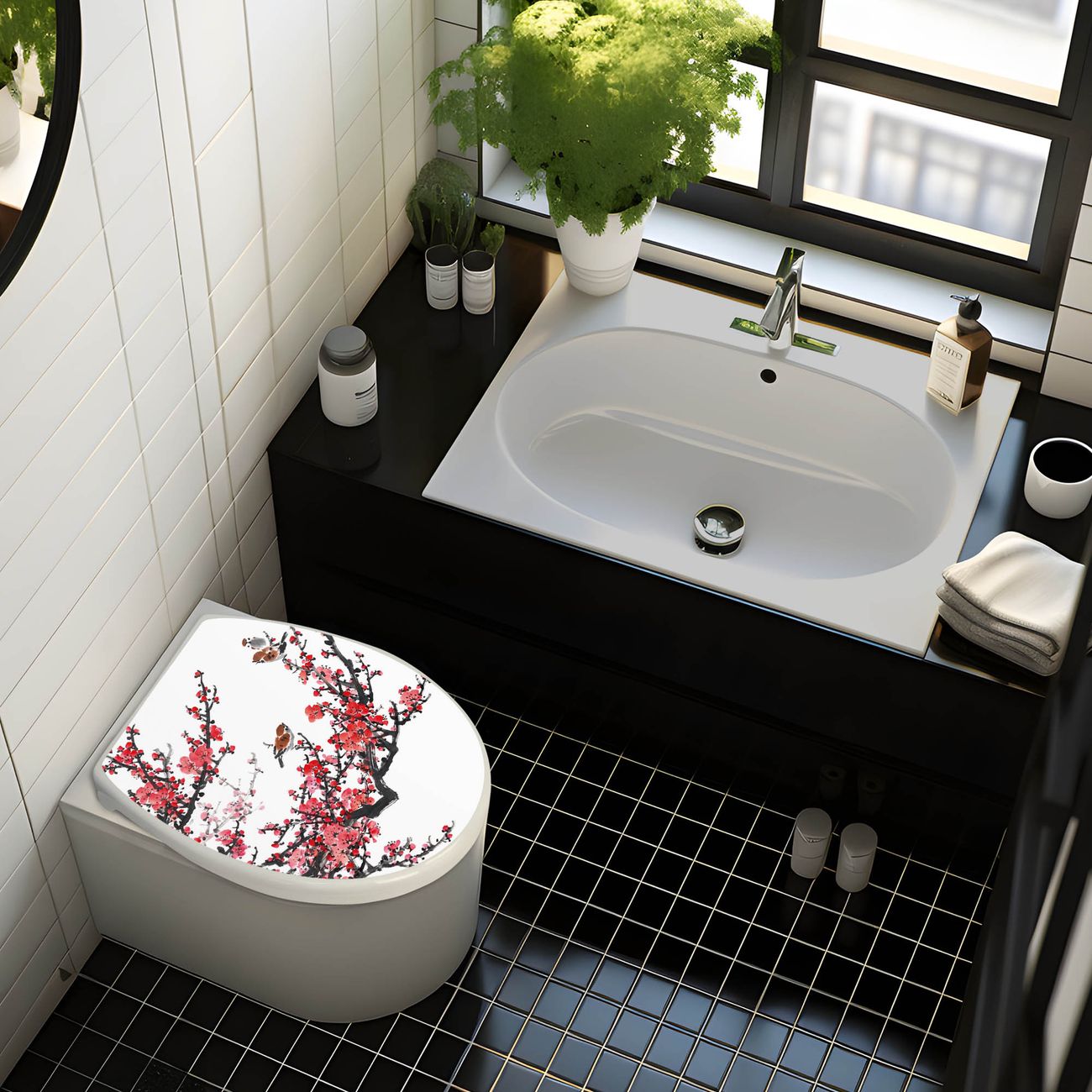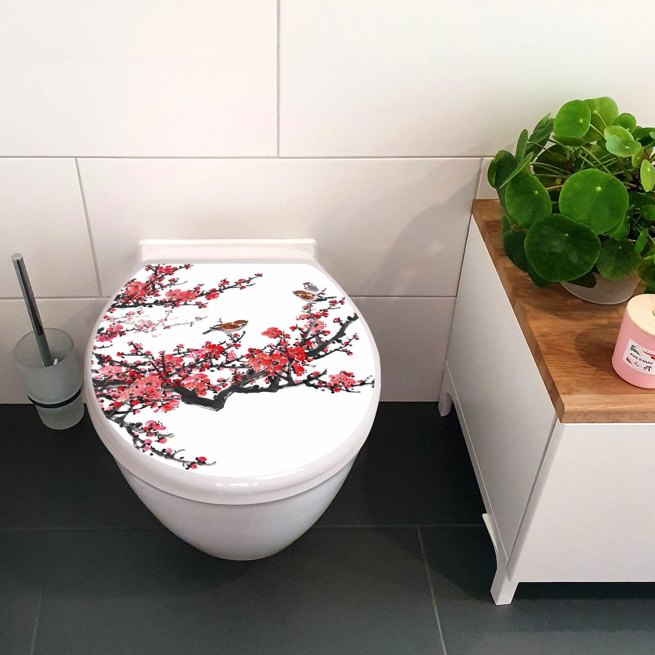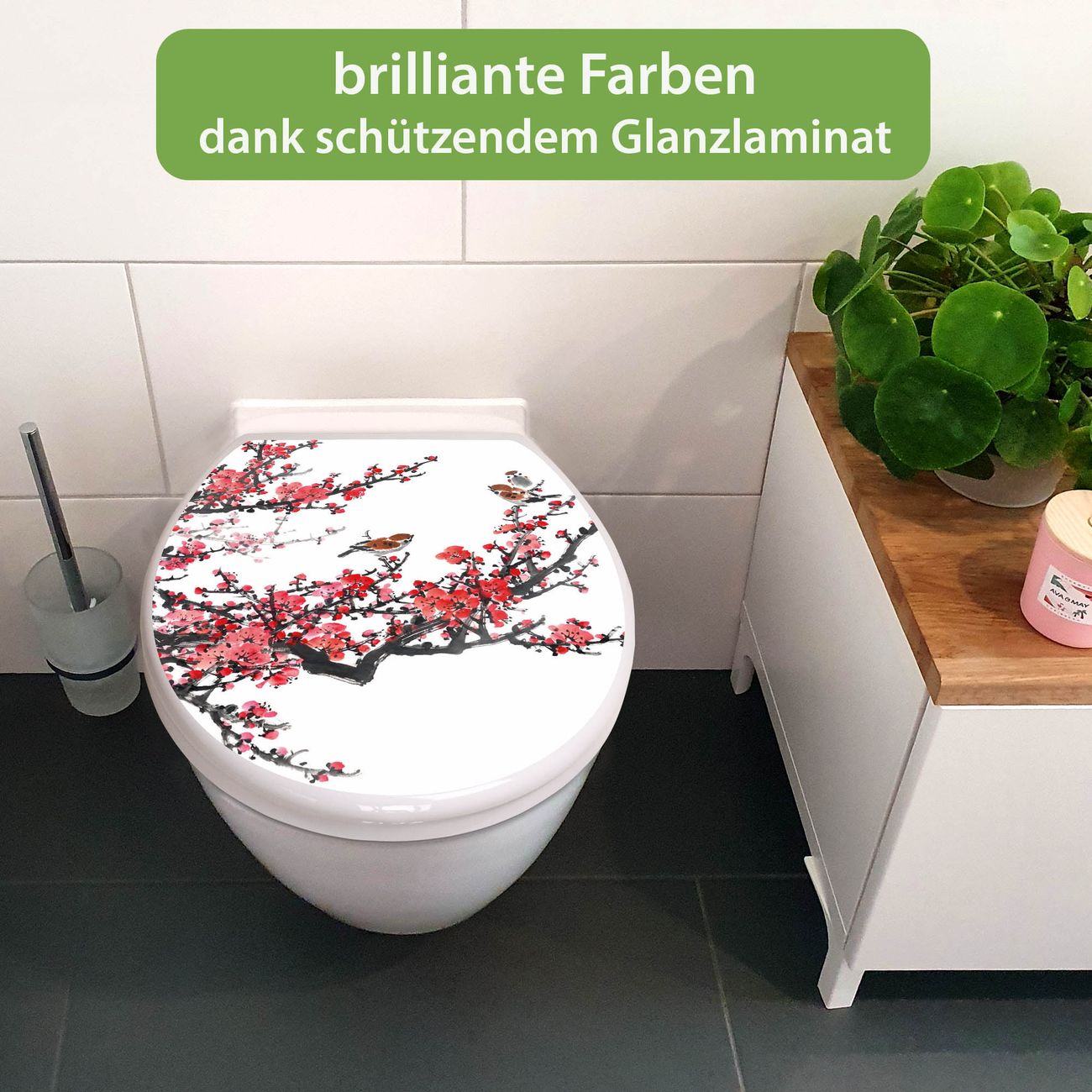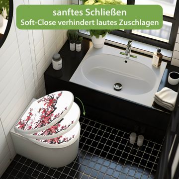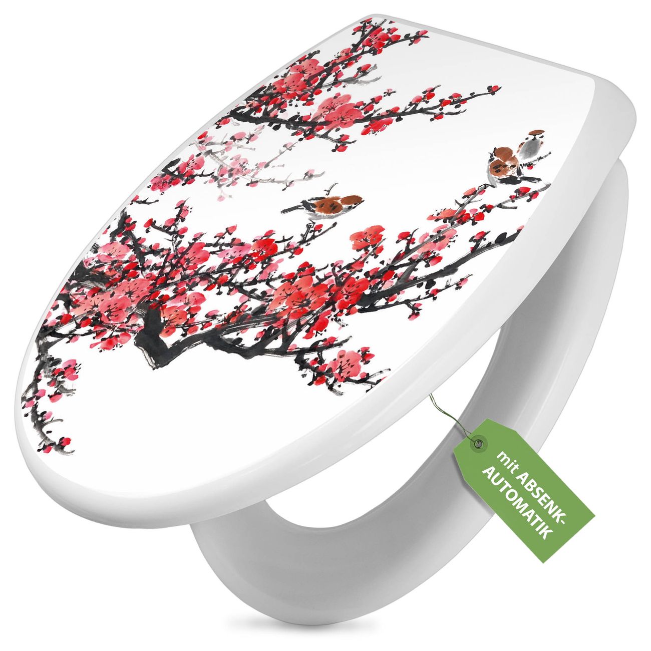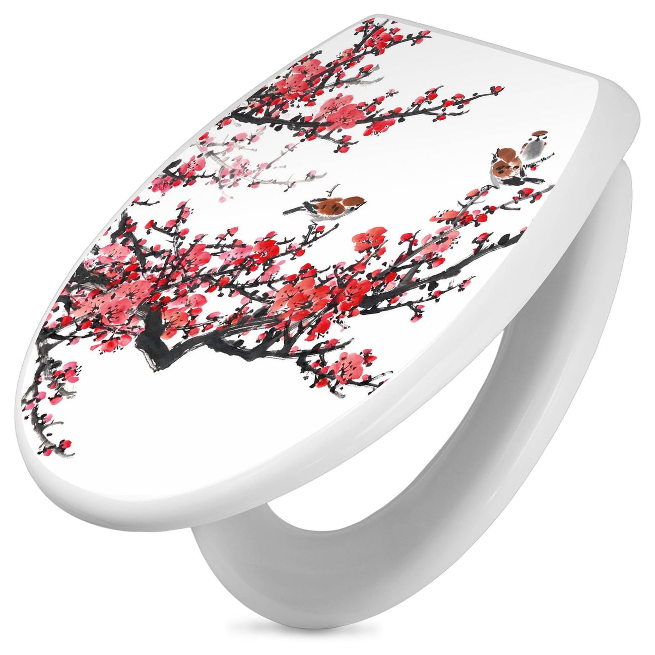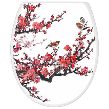 Toilettendeckel weiß mit Absenkautomatik Motiv Japanische Blüten 1