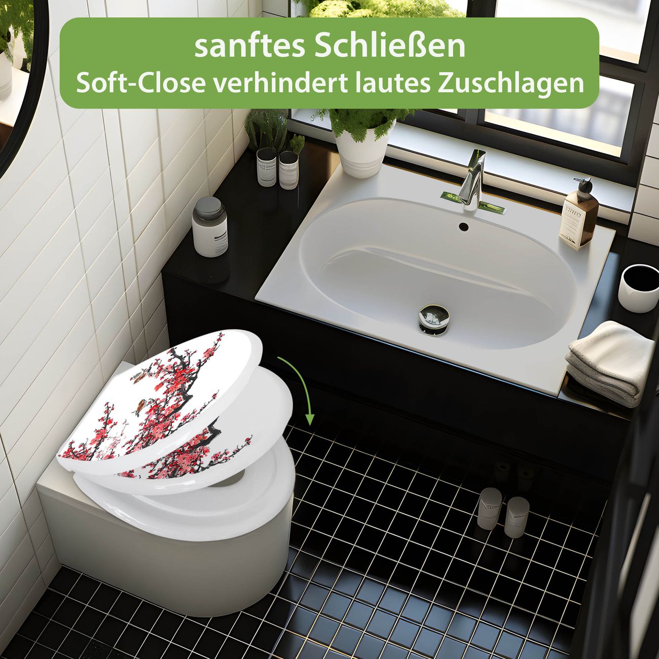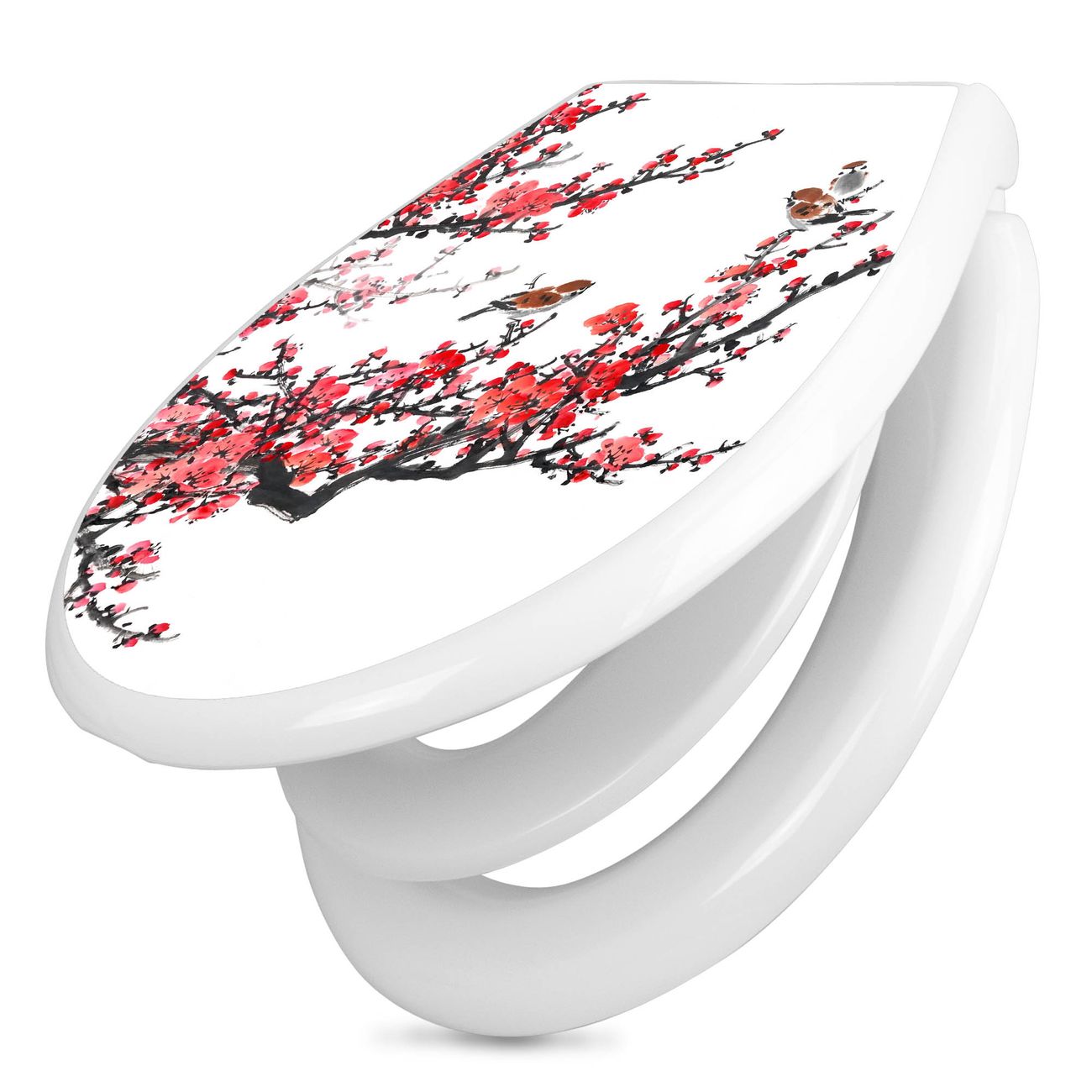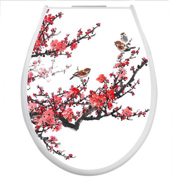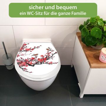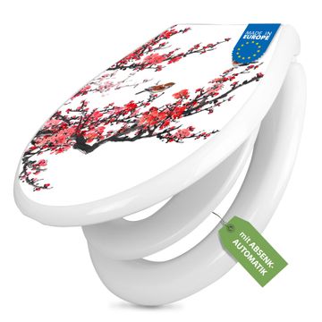 Toilettendeckel weiß mit Absenkautomatik Motiv Japanische Blüten 1