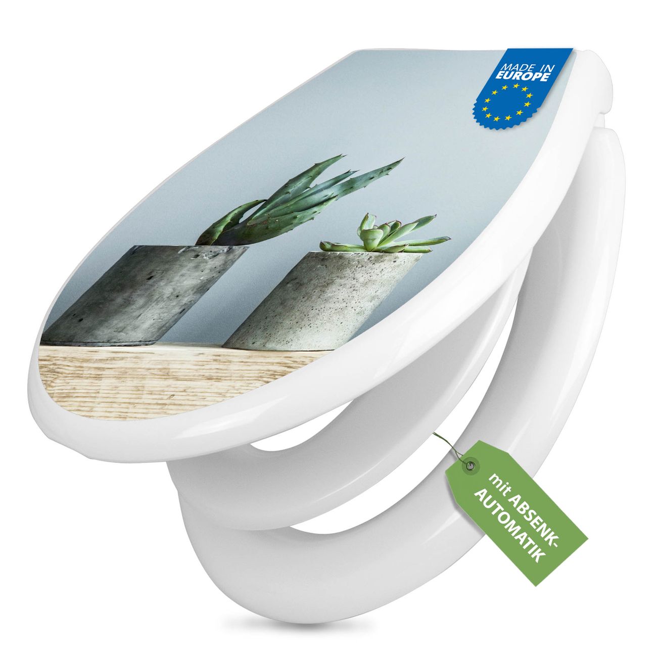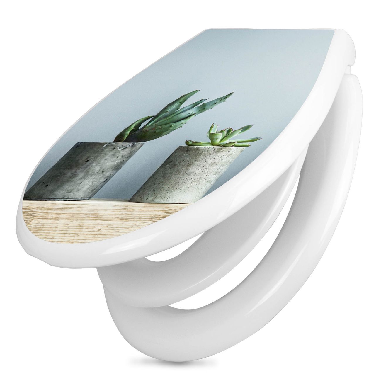 Toilettendeckel weiß mit Absenkautomatik Motiv Kakteen in Beton