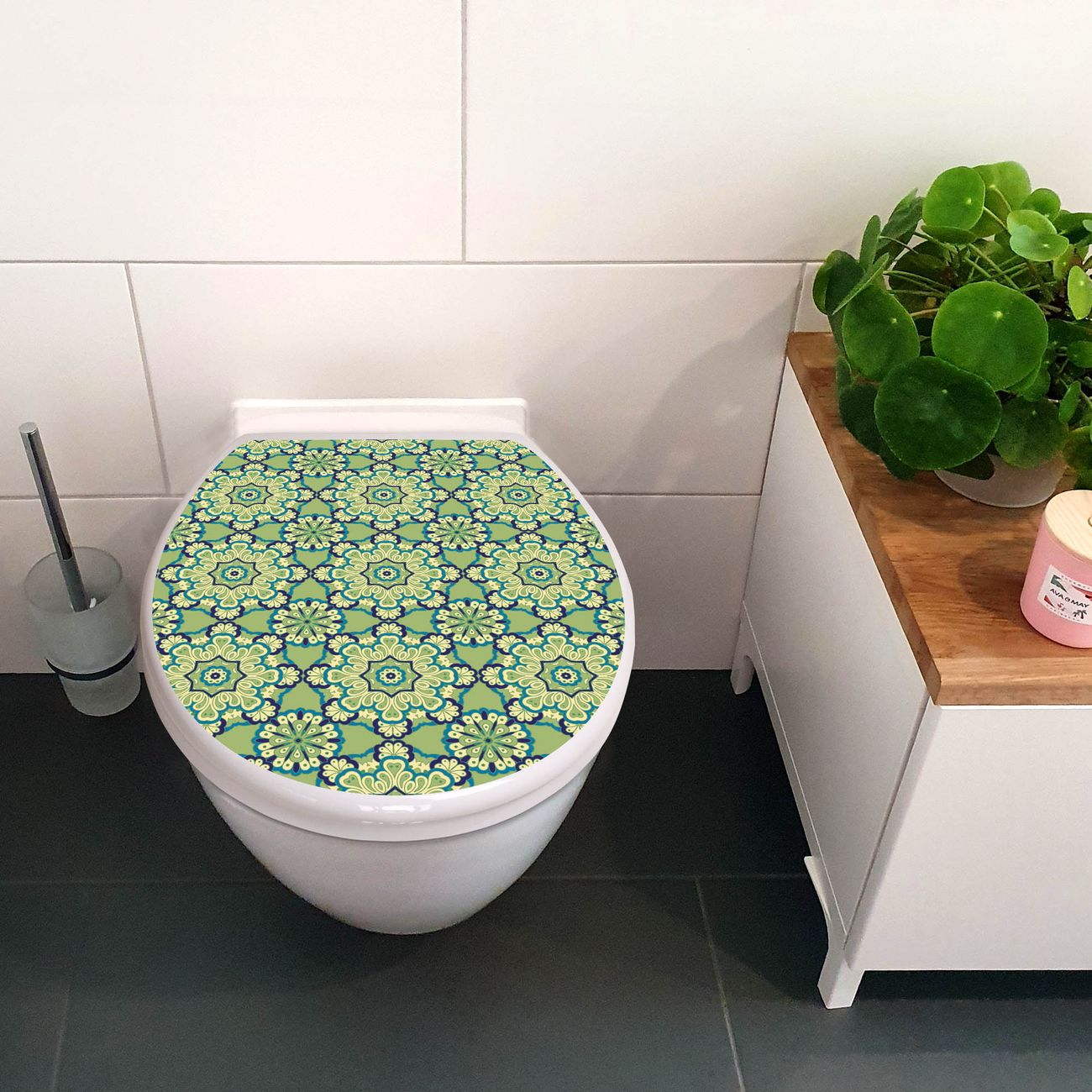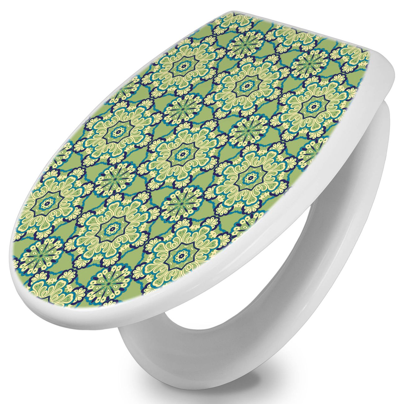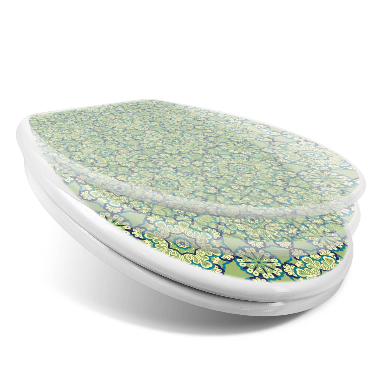 Toilettendeckel weiß mit Absenkautomatik Motiv Kaleidoscop Grün