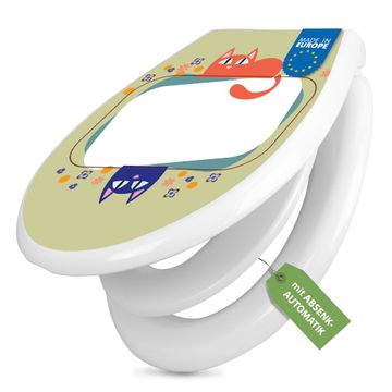 Toilettendeckel weiß mit Absenkautomatik Motiv Karikatur Katzen