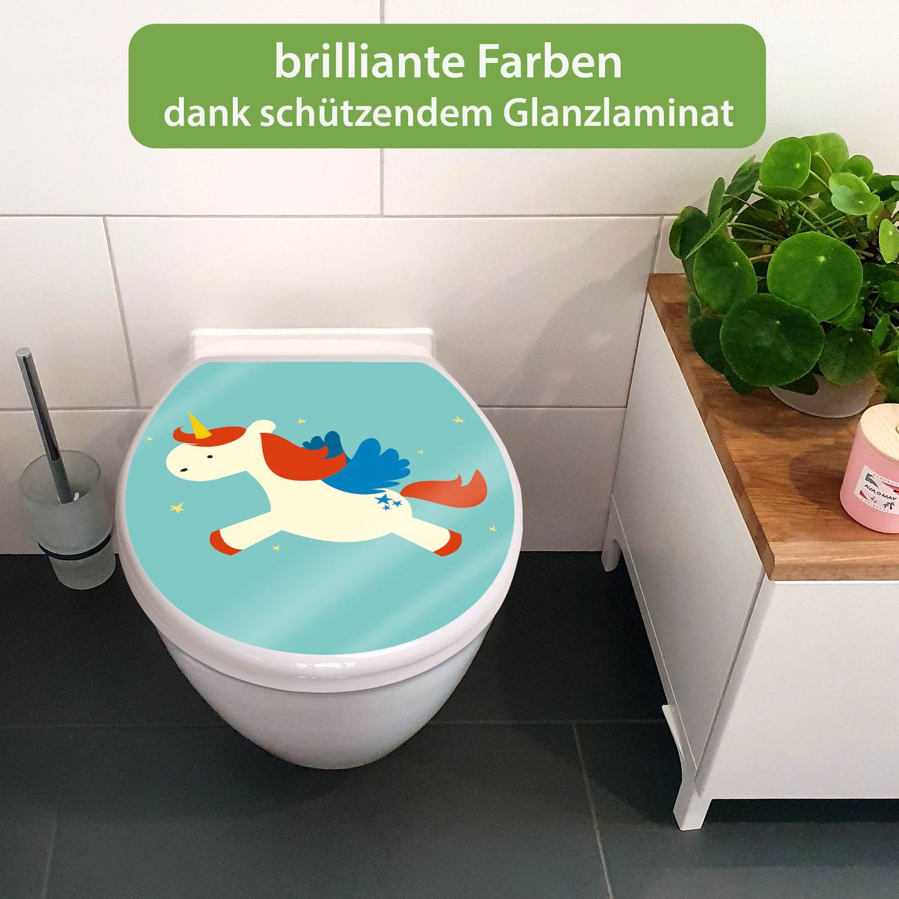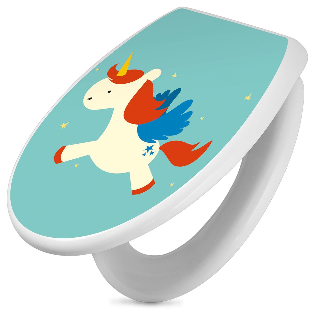 Toilettendeckel weiß mit Absenkautomatik Motiv Kleines Einhorn