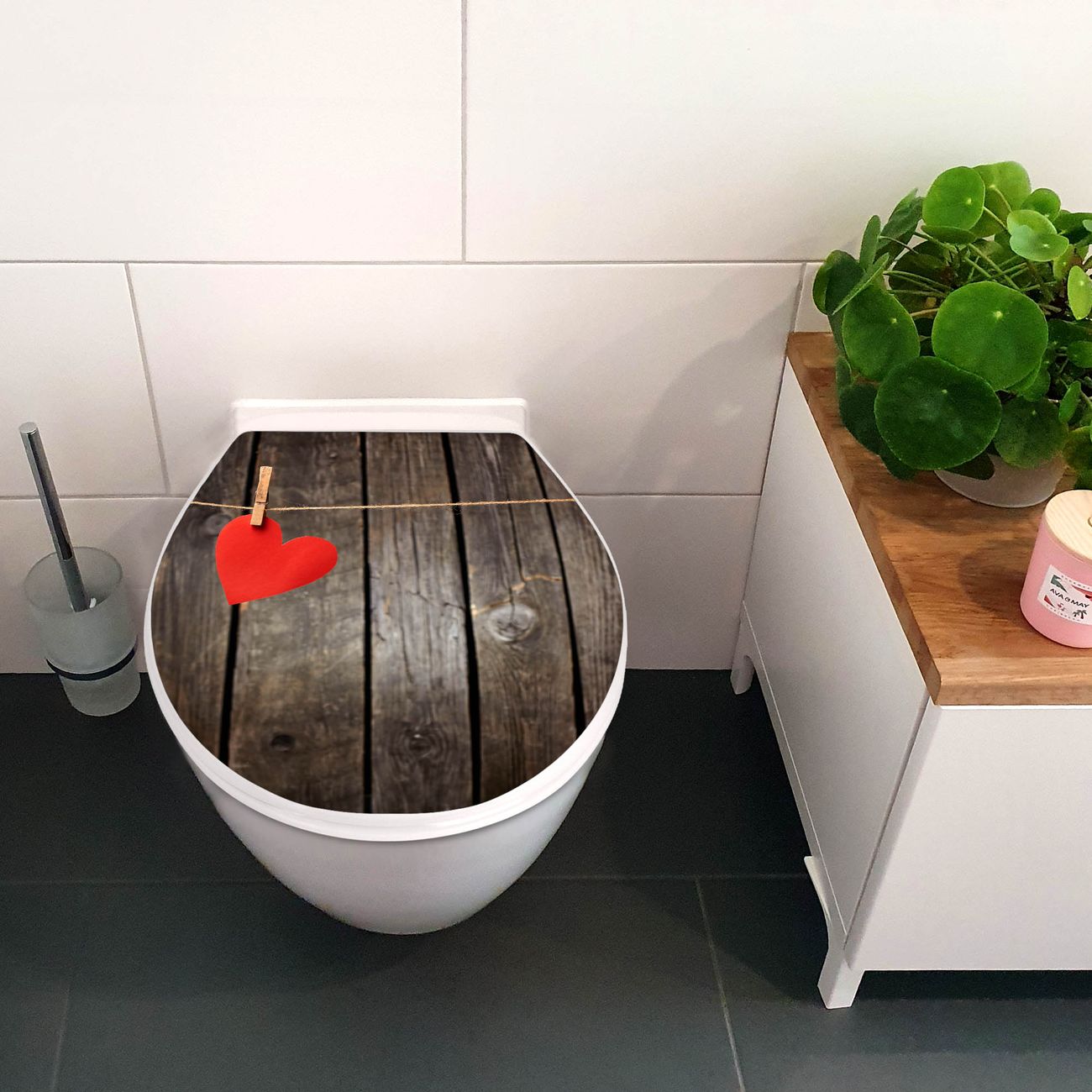 Toilettendeckel weiß mit Absenkautomatik Motiv Kurznachricht