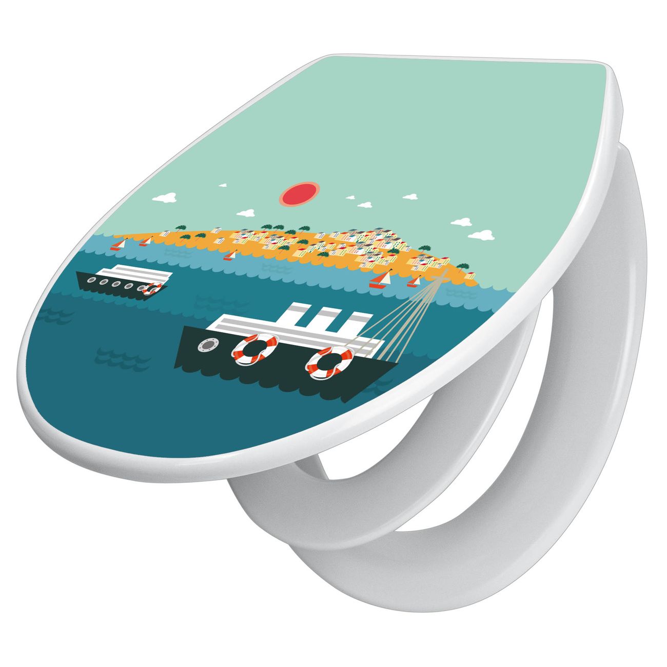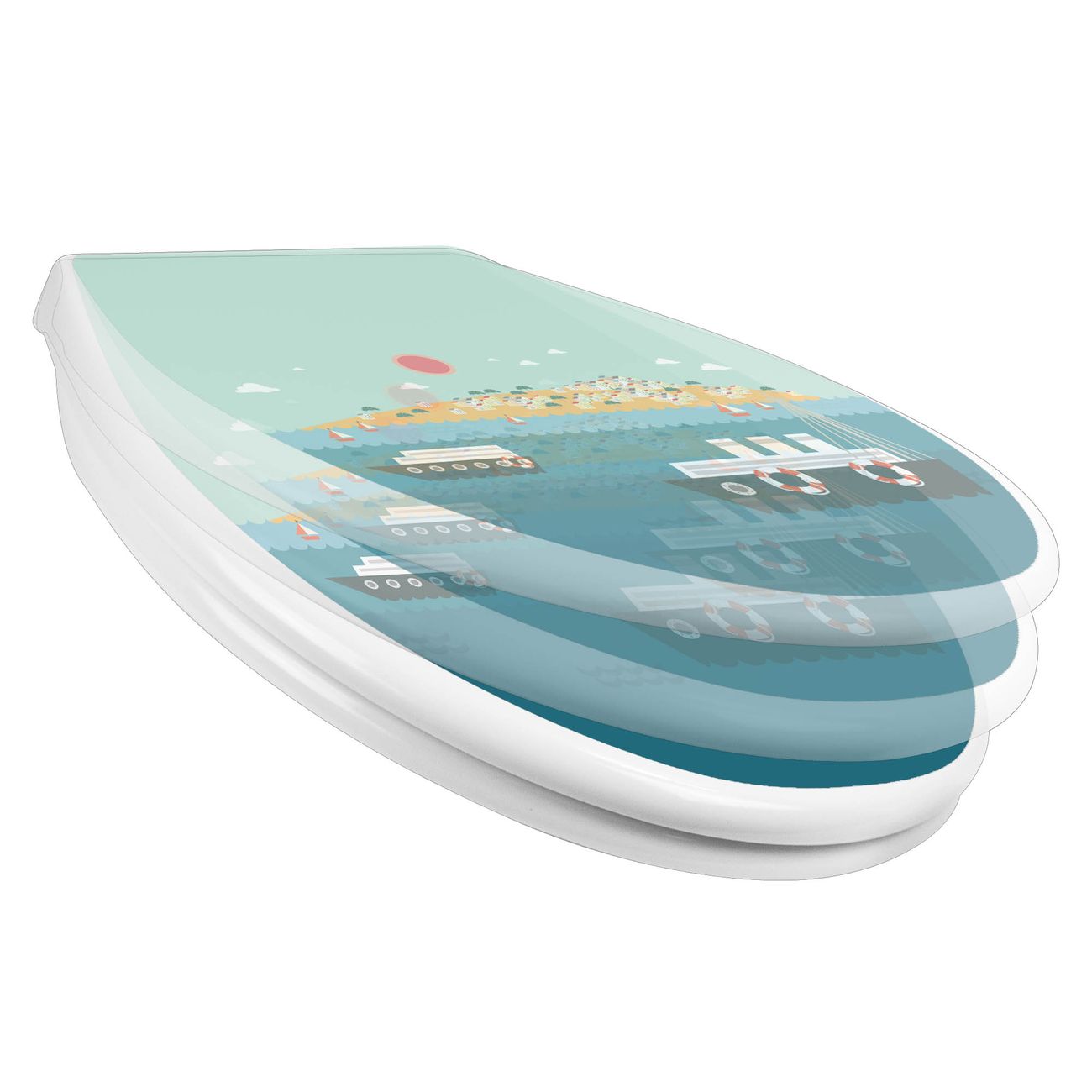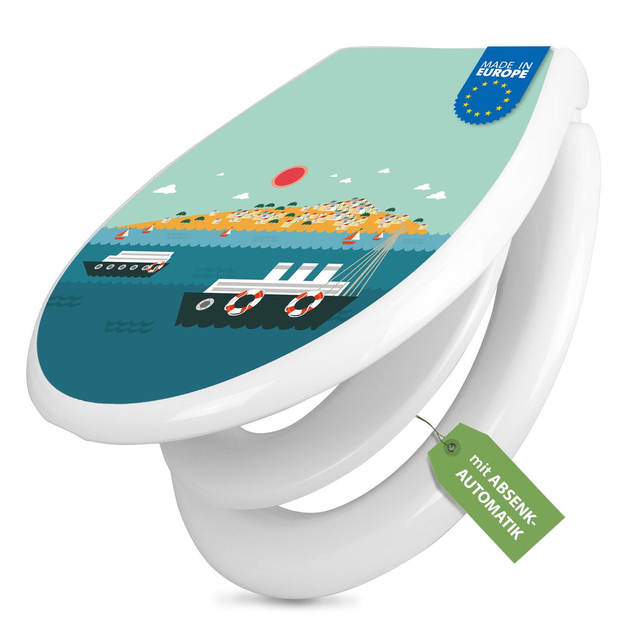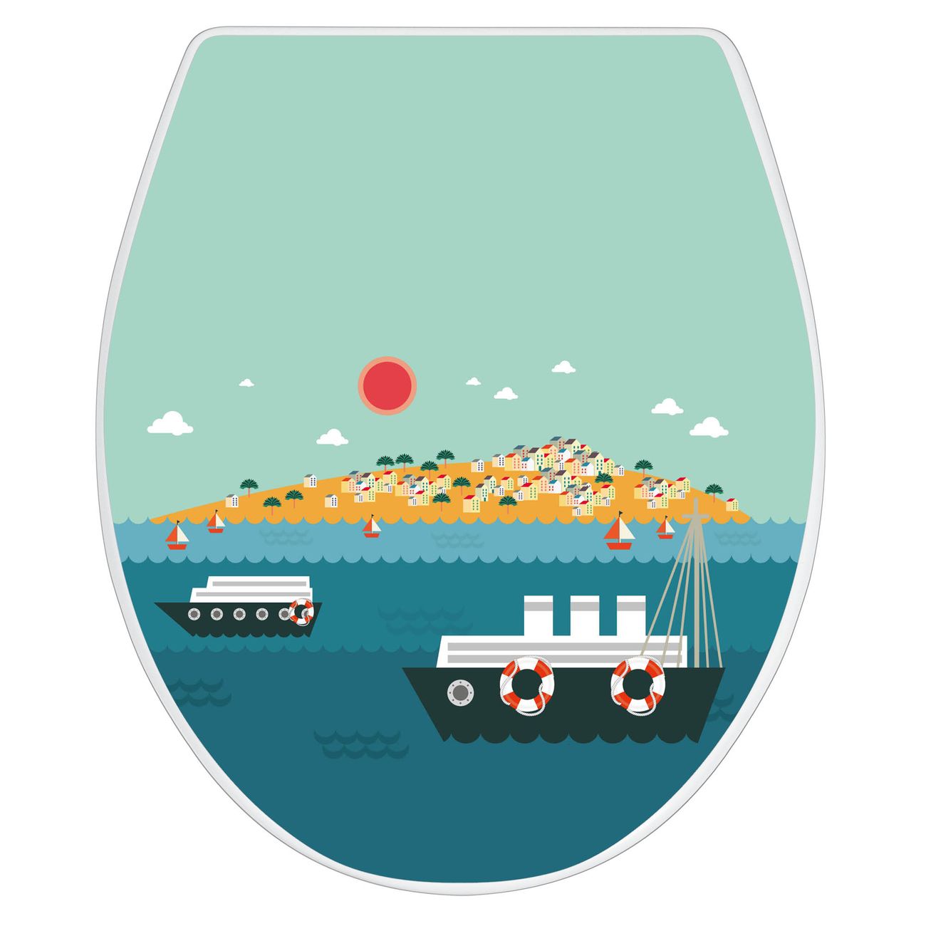 Toilettendeckel weiß mit Absenkautomatik Motiv Land in Sicht