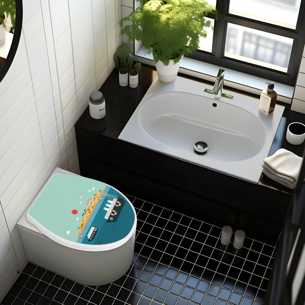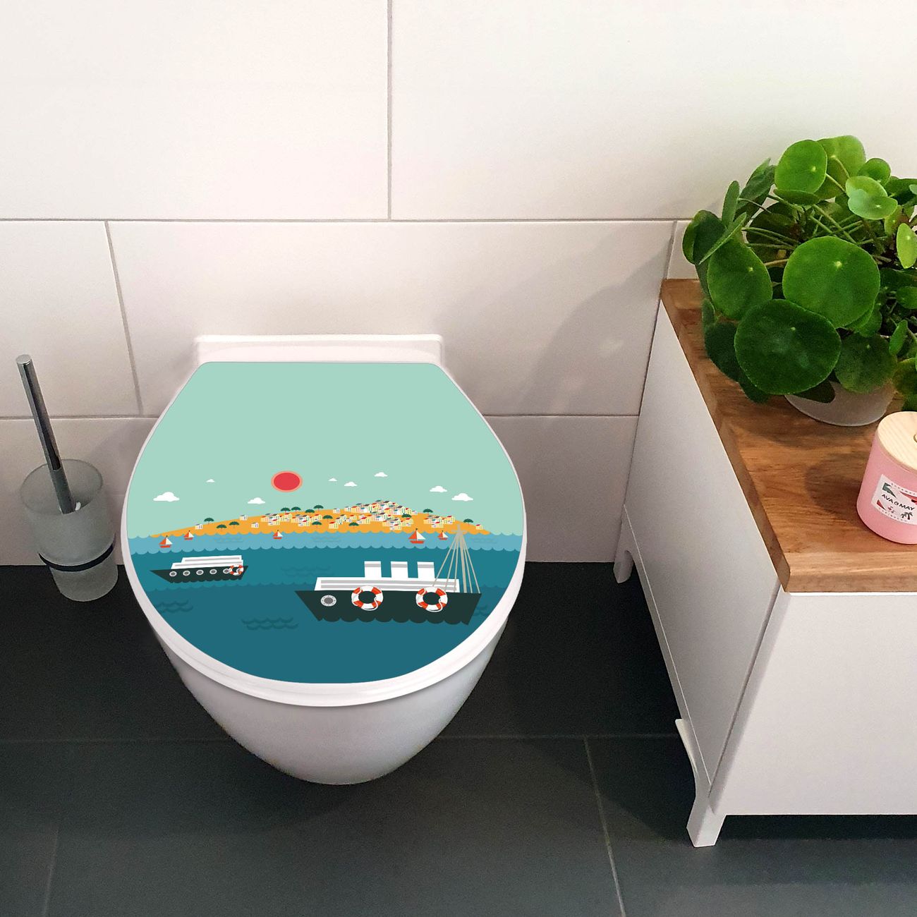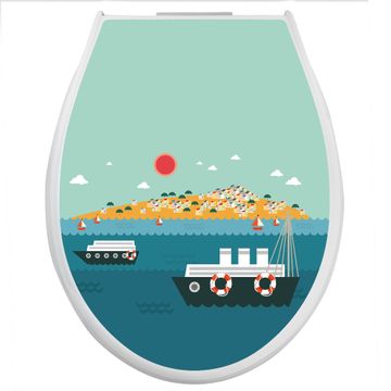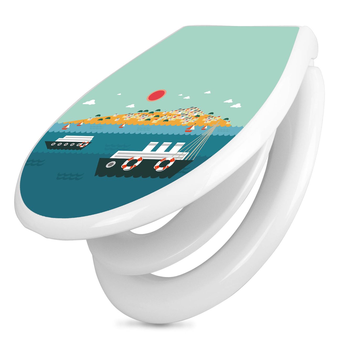 Toilettendeckel weiß mit Absenkautomatik Motiv Land in Sicht
