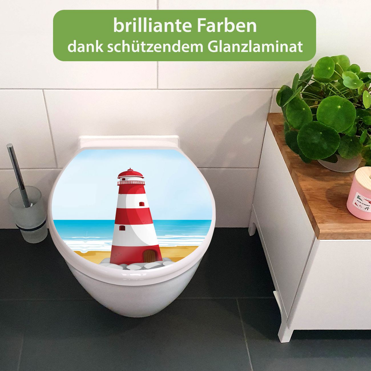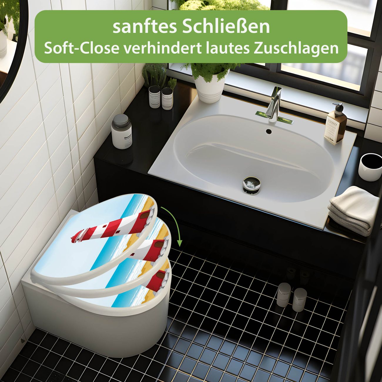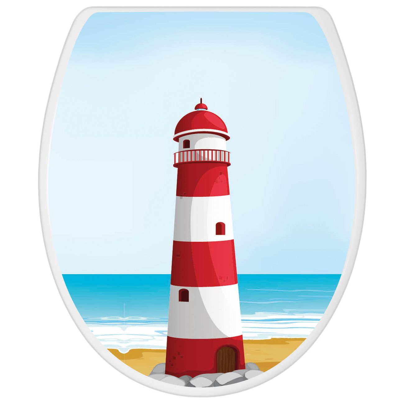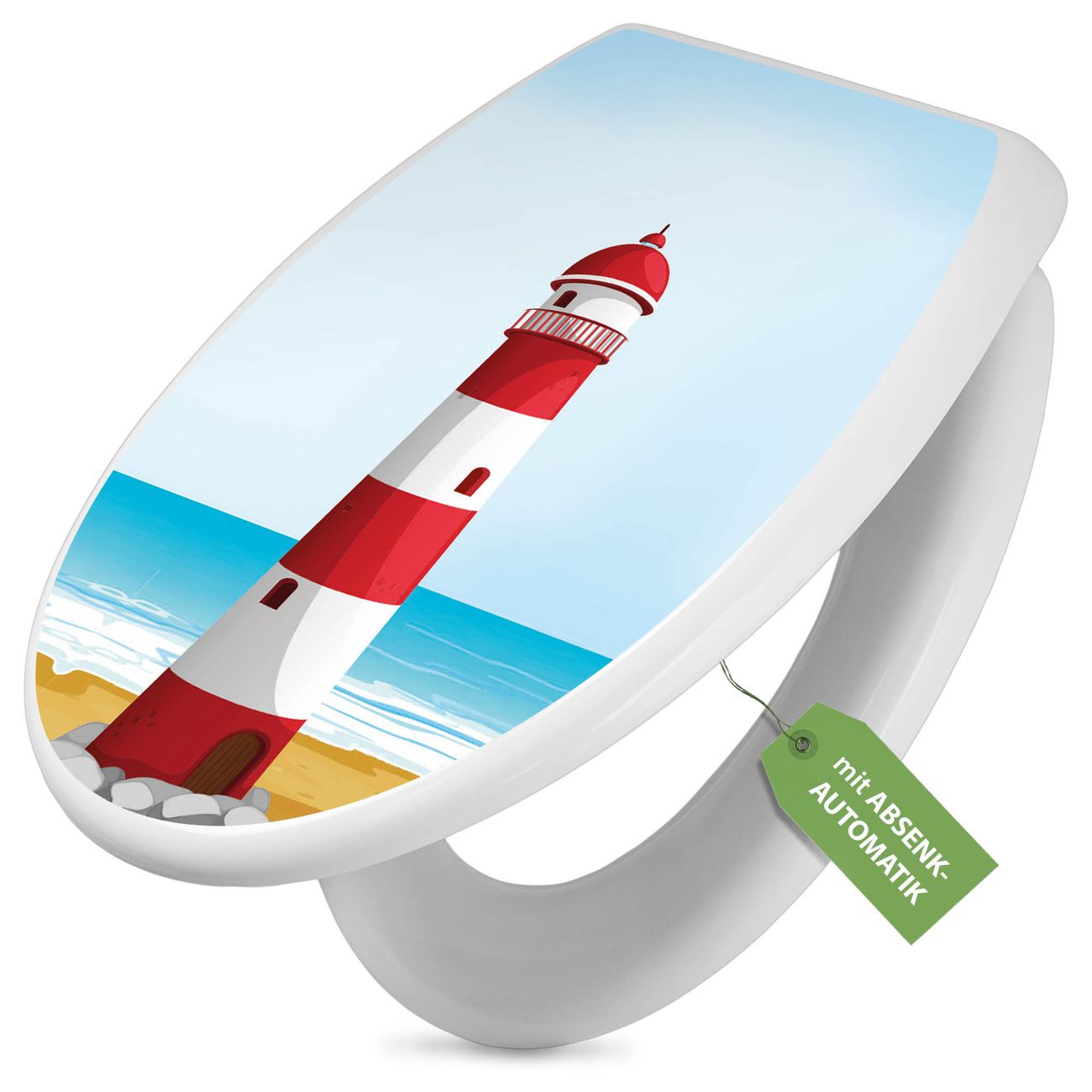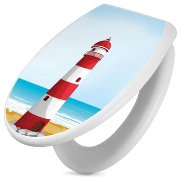 Toilettendeckel weiß mit Absenkautomatik Motiv Leuchtturm Illustration