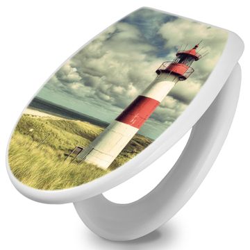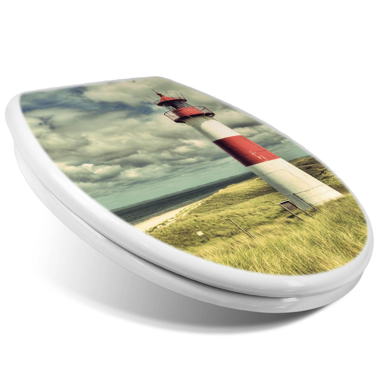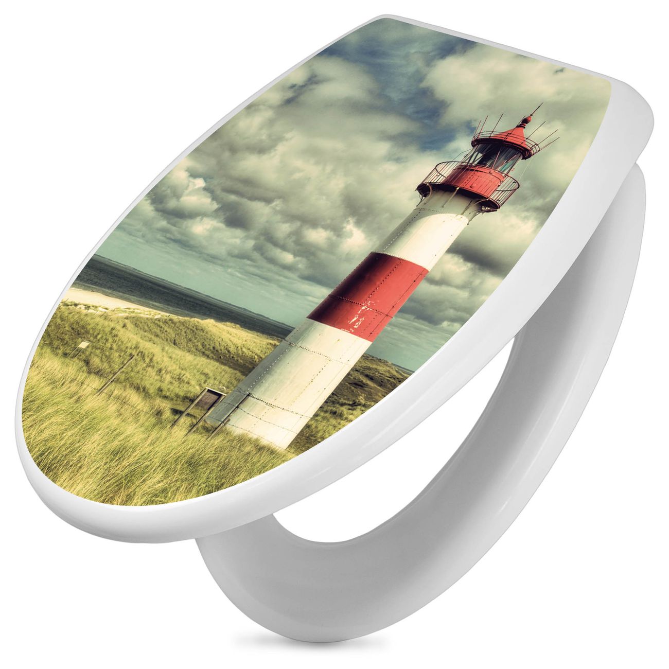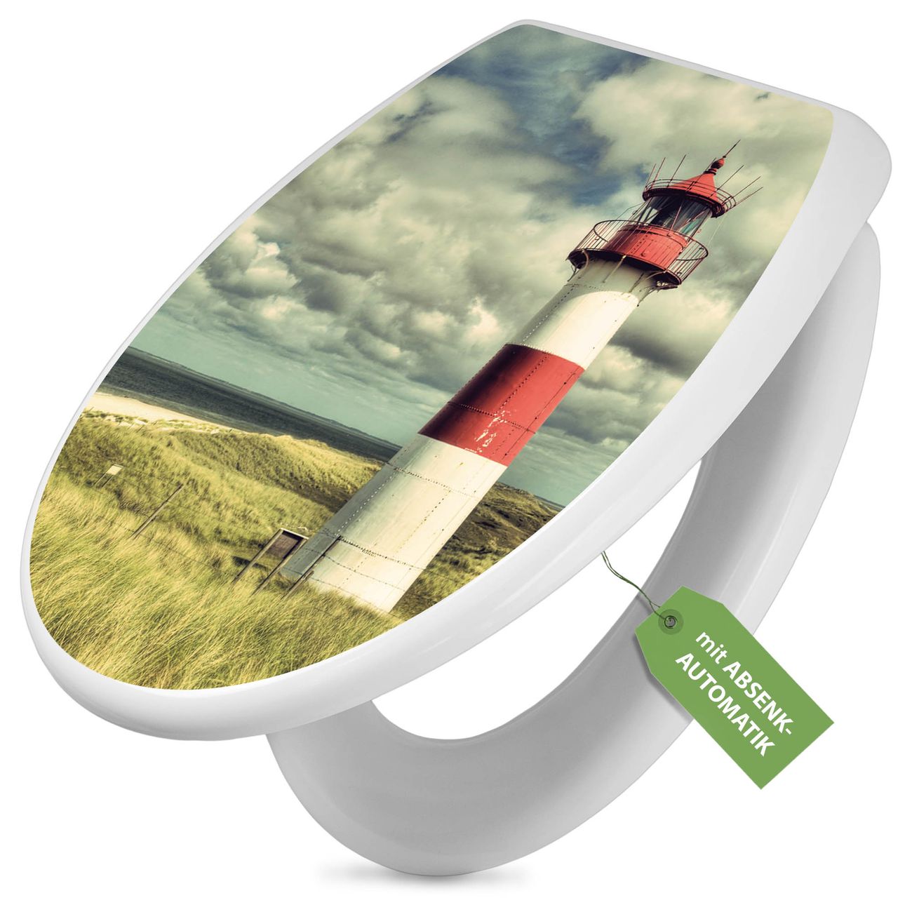 Toilettendeckel weiß mit Absenkautomatik Motiv Leuchtturm Sylt
