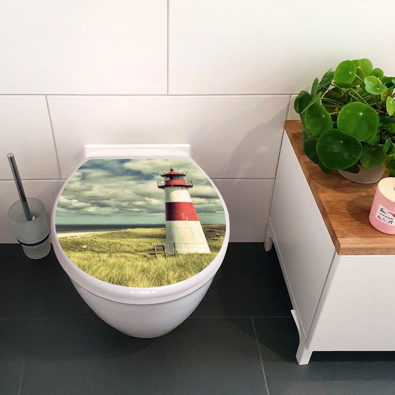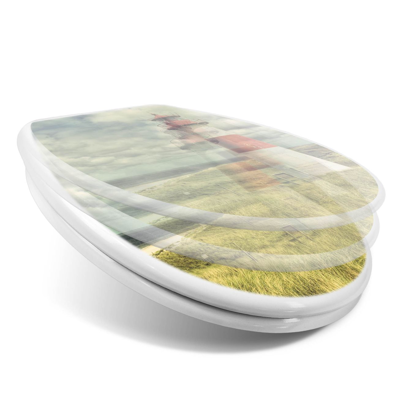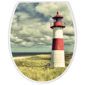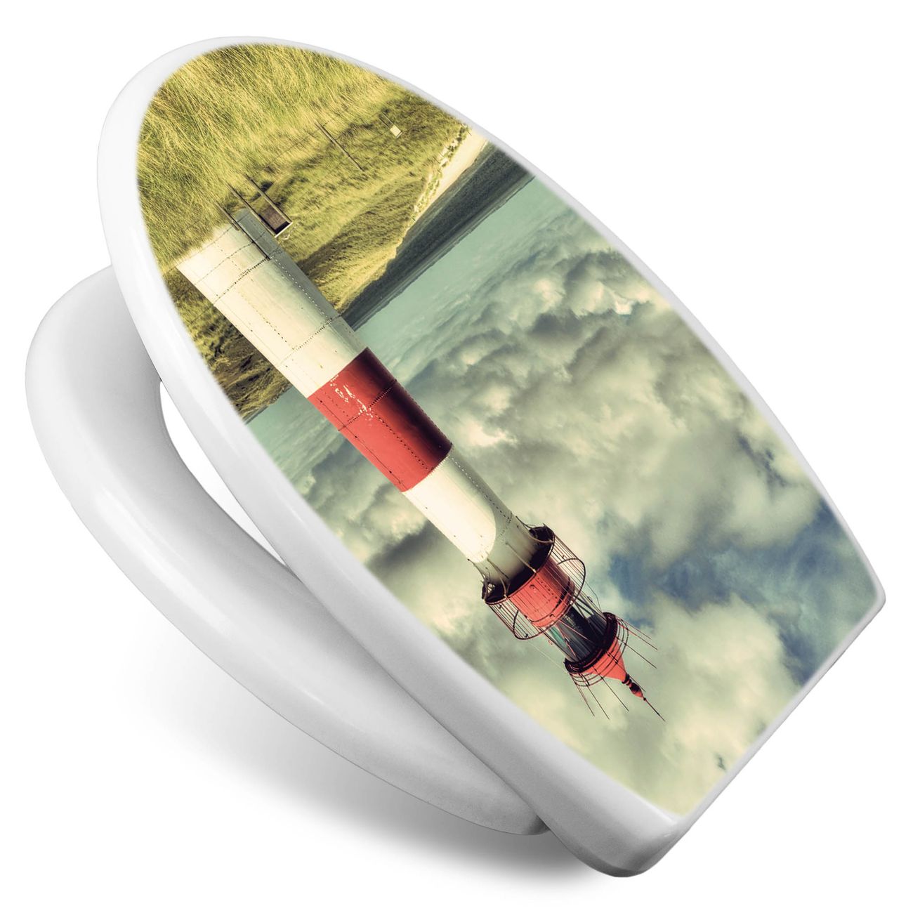 Toilettendeckel weiß mit Absenkautomatik Motiv Leuchtturm Sylt