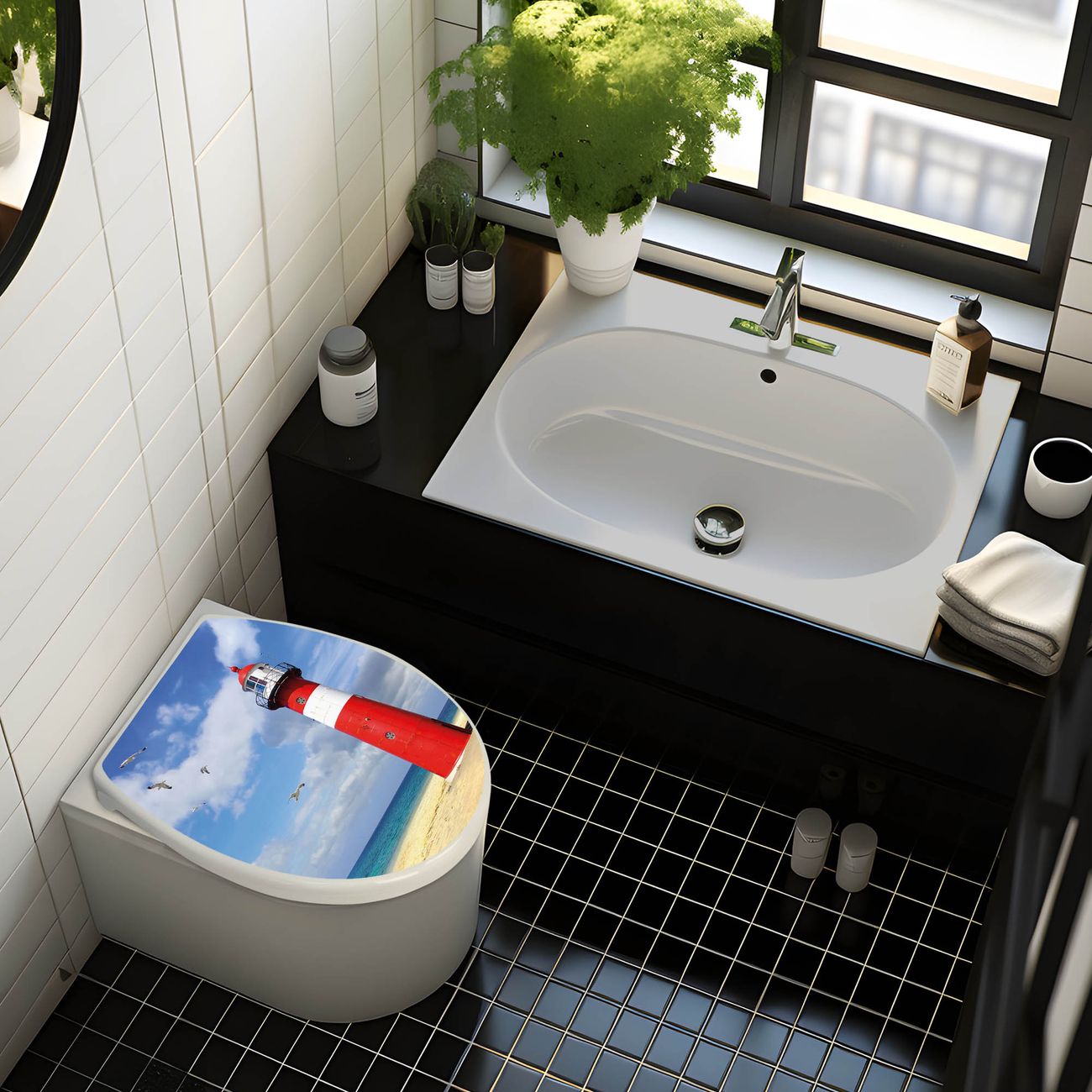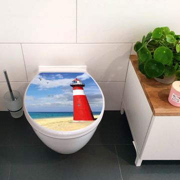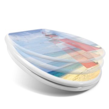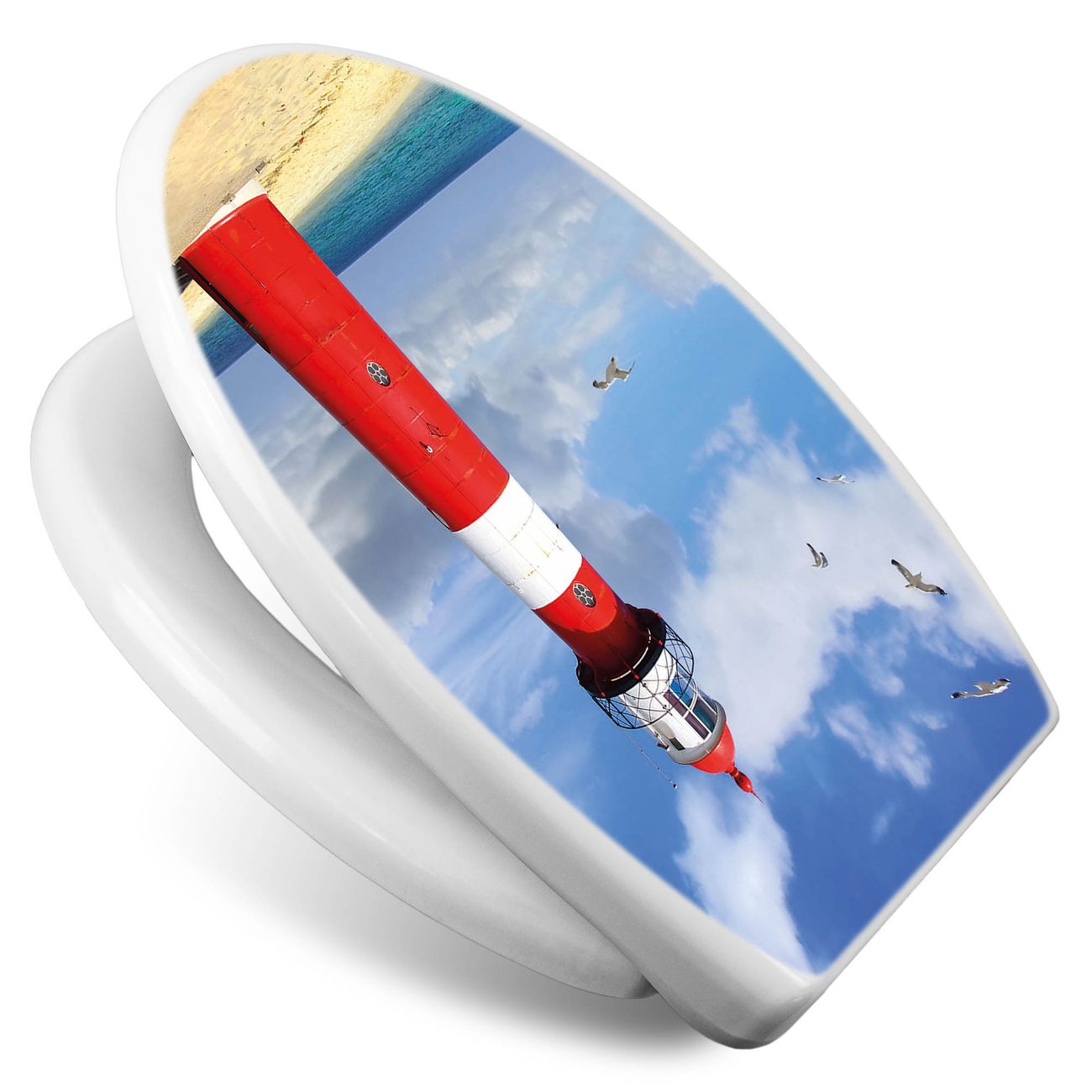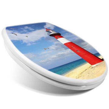 Toilettendeckel weiß mit Absenkautomatik Motiv Leuchtturm Westkapelle