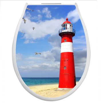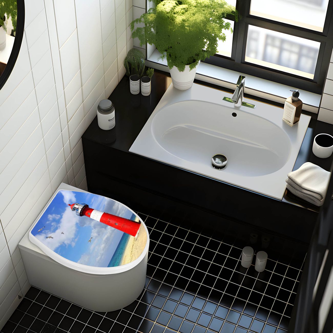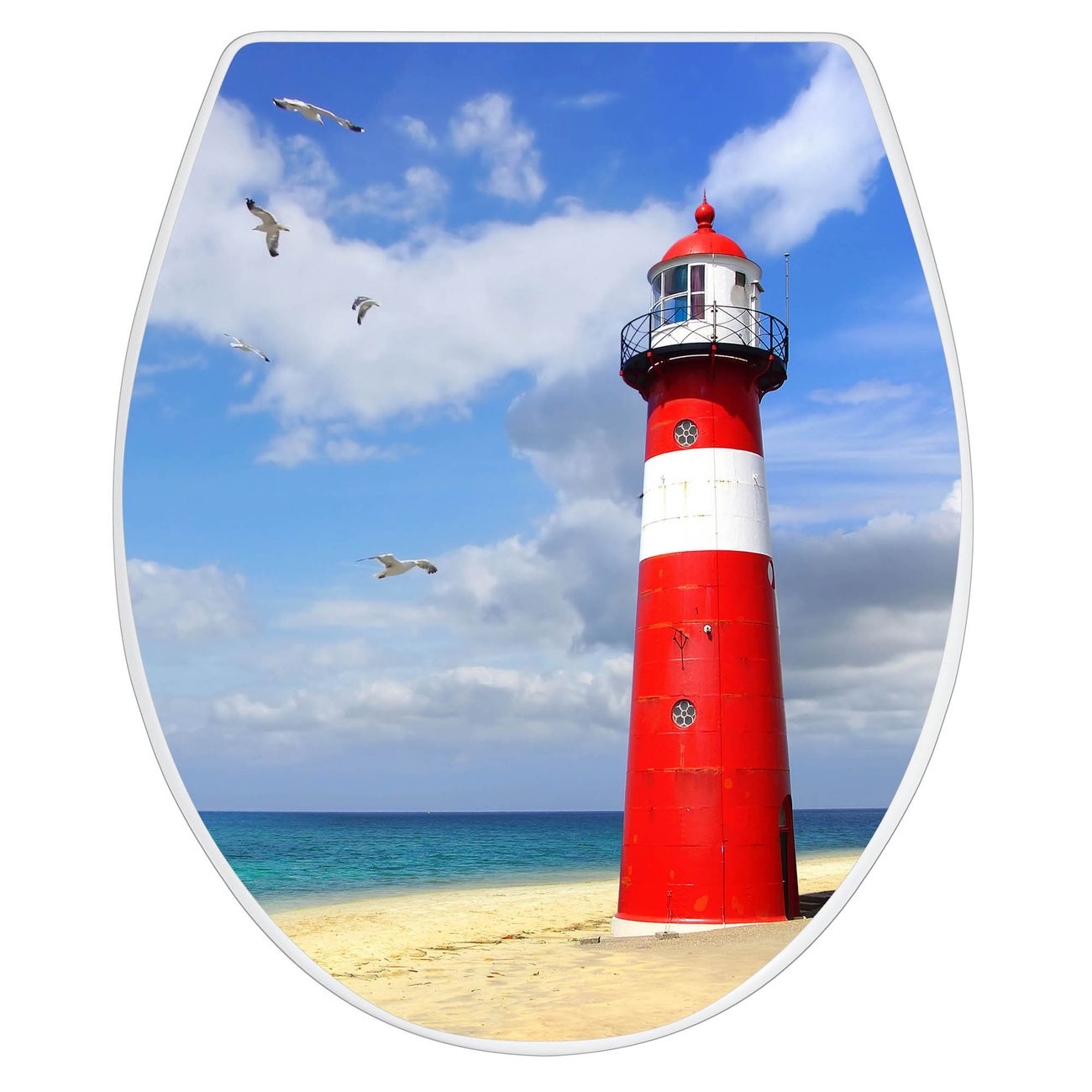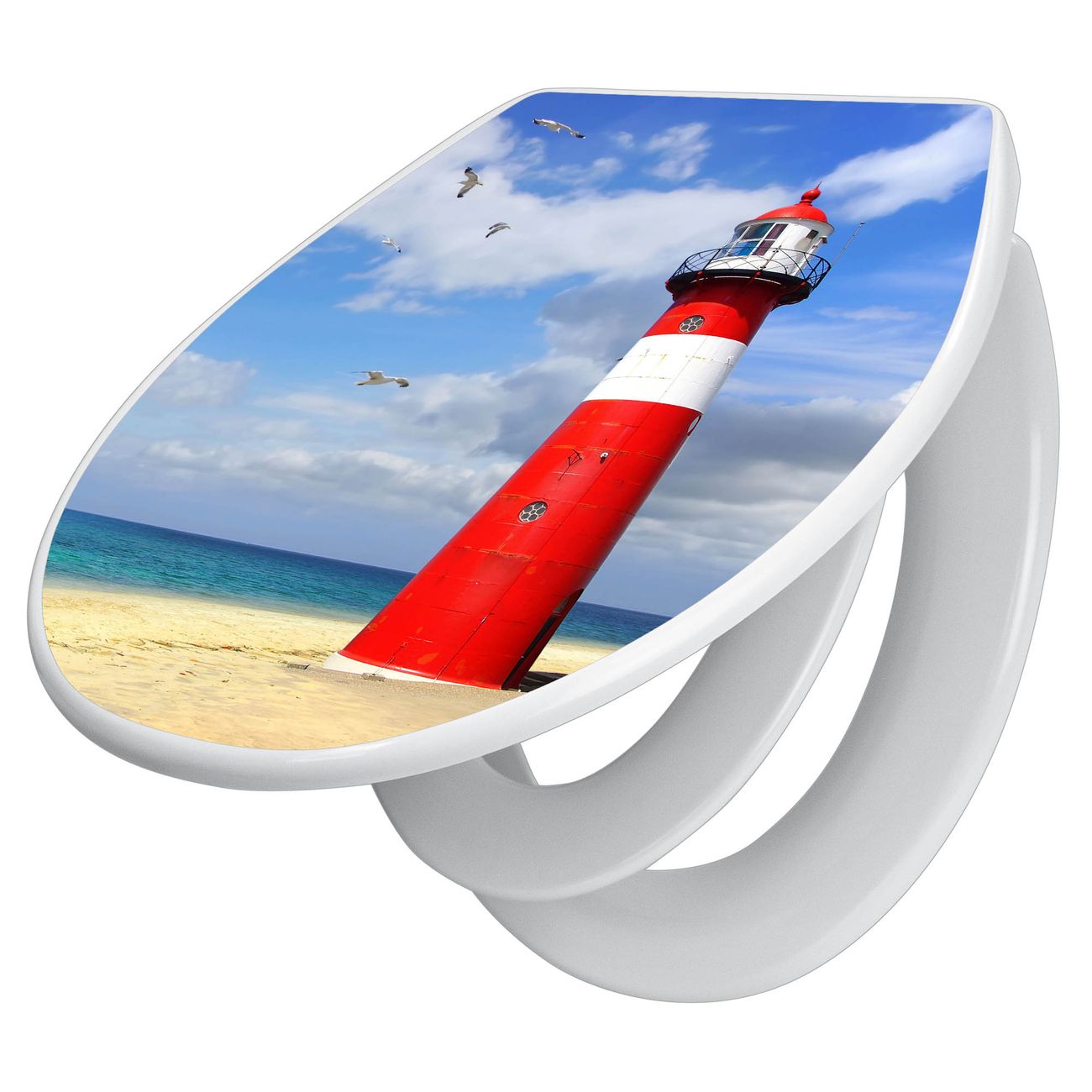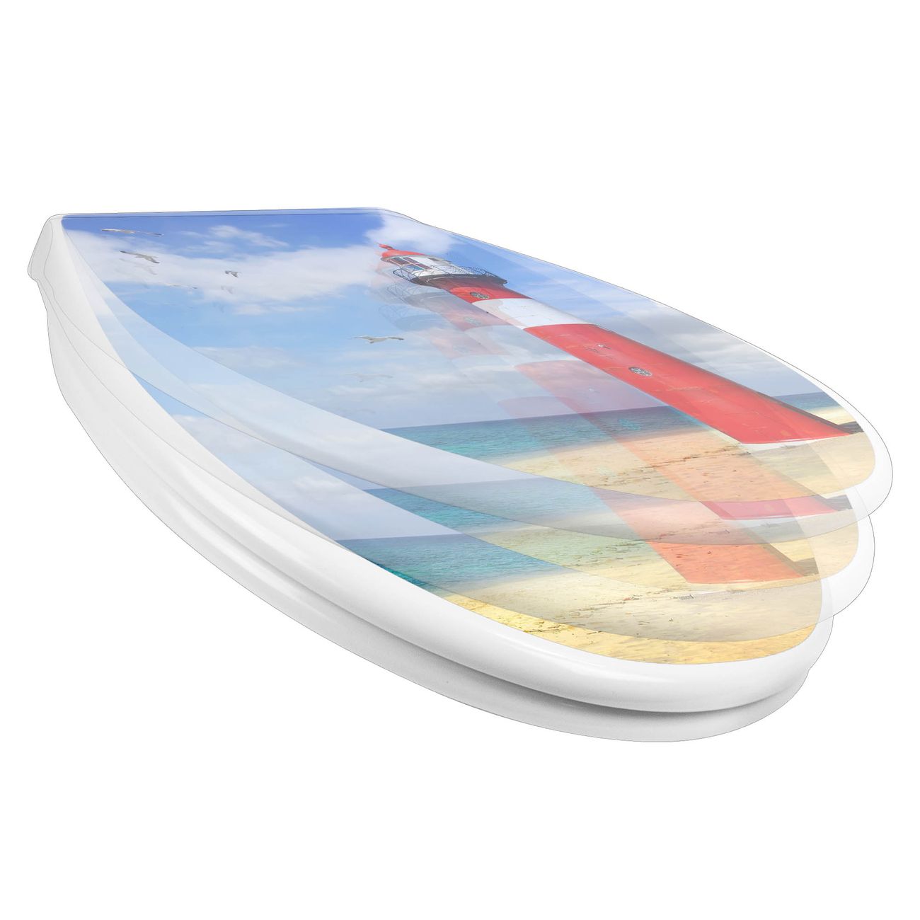 Toilettendeckel weiß mit Absenkautomatik Motiv Leuchtturm Westkapelle