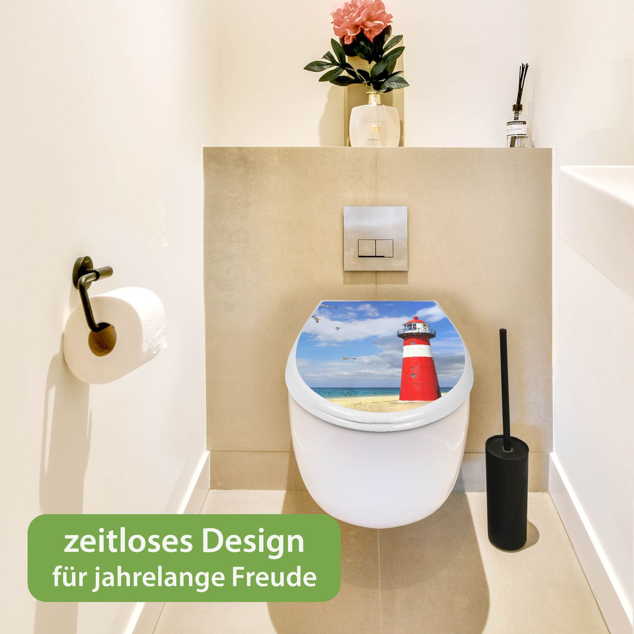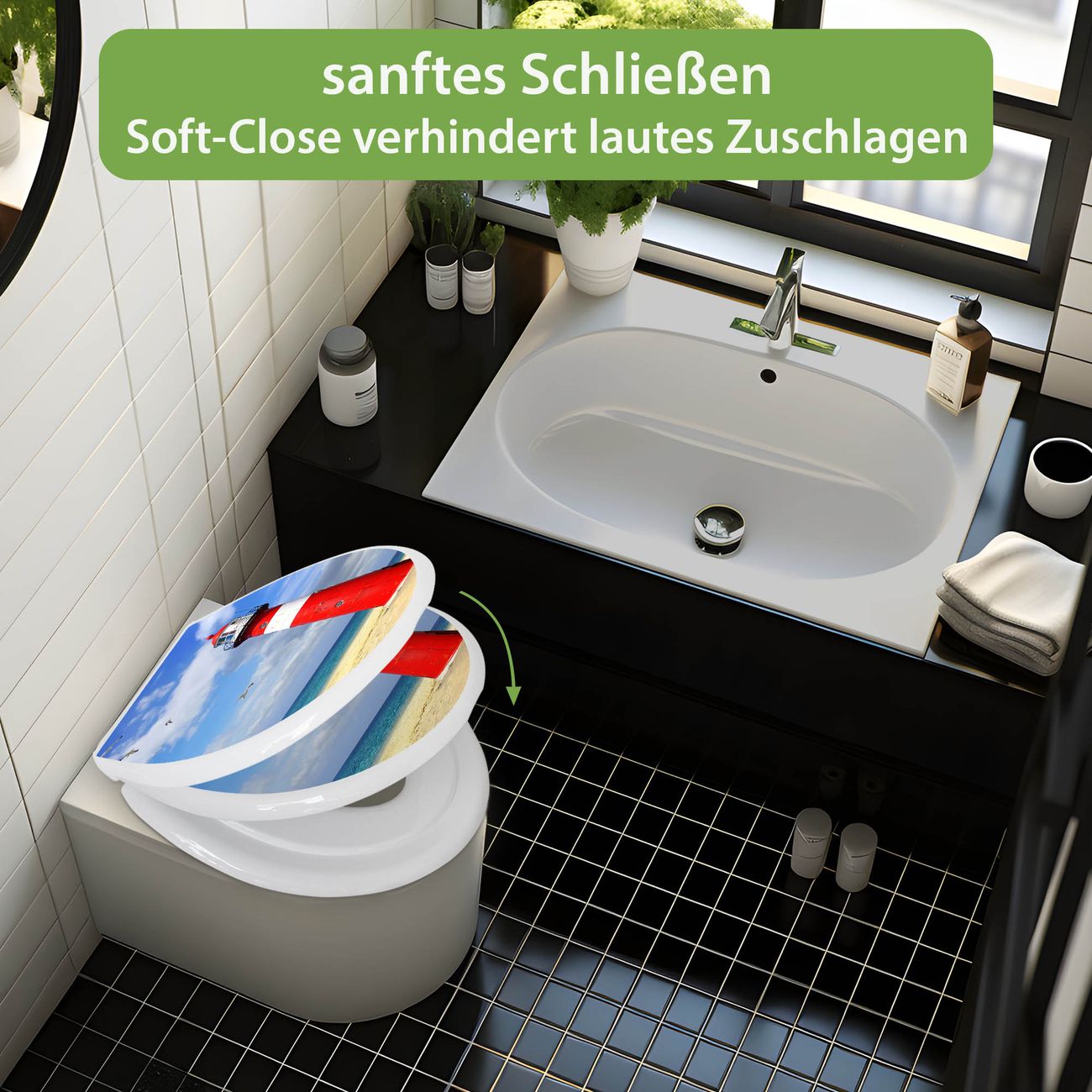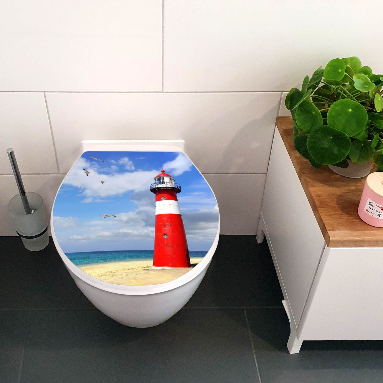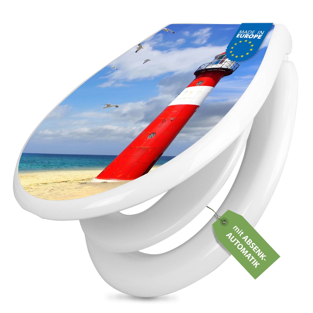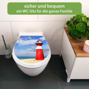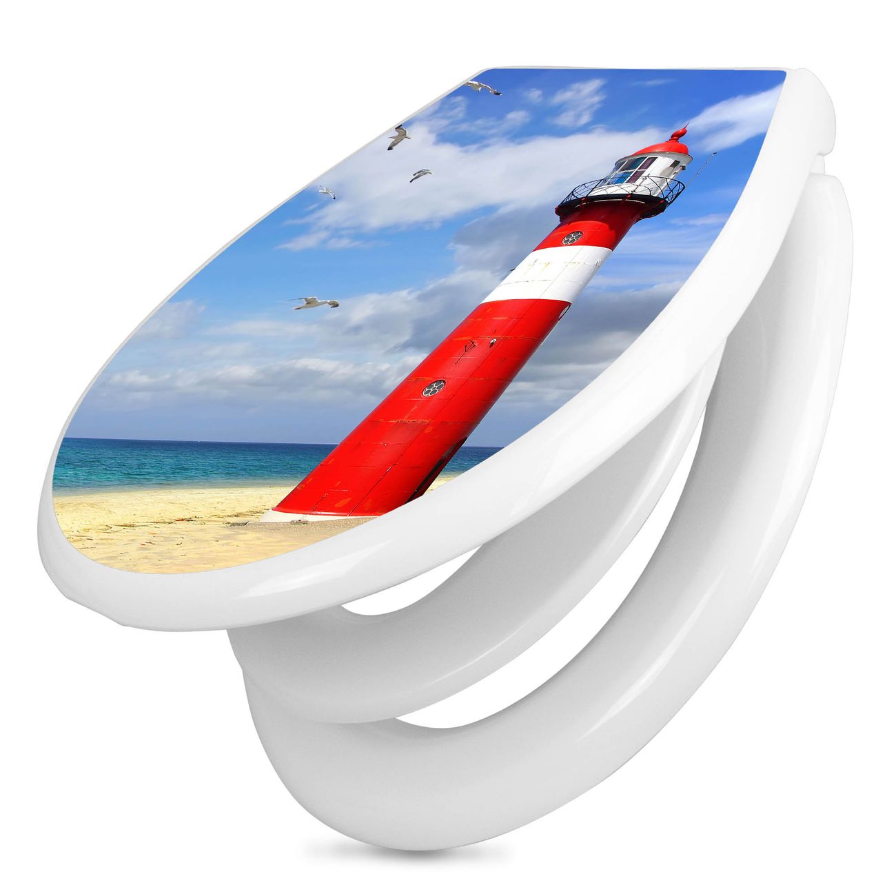 Toilettendeckel weiß mit Absenkautomatik Motiv Leuchtturm Westkapelle