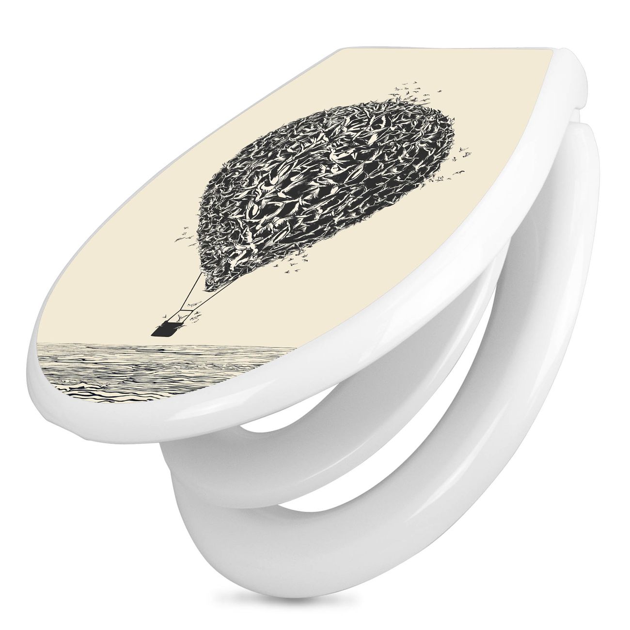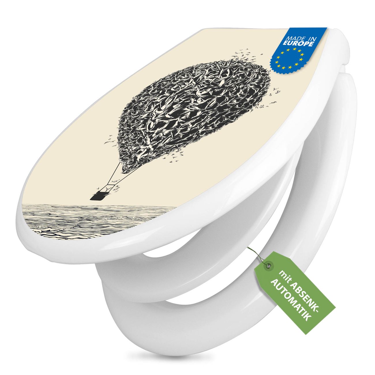 Toilettendeckel weiß mit Absenkautomatik Motiv Lift