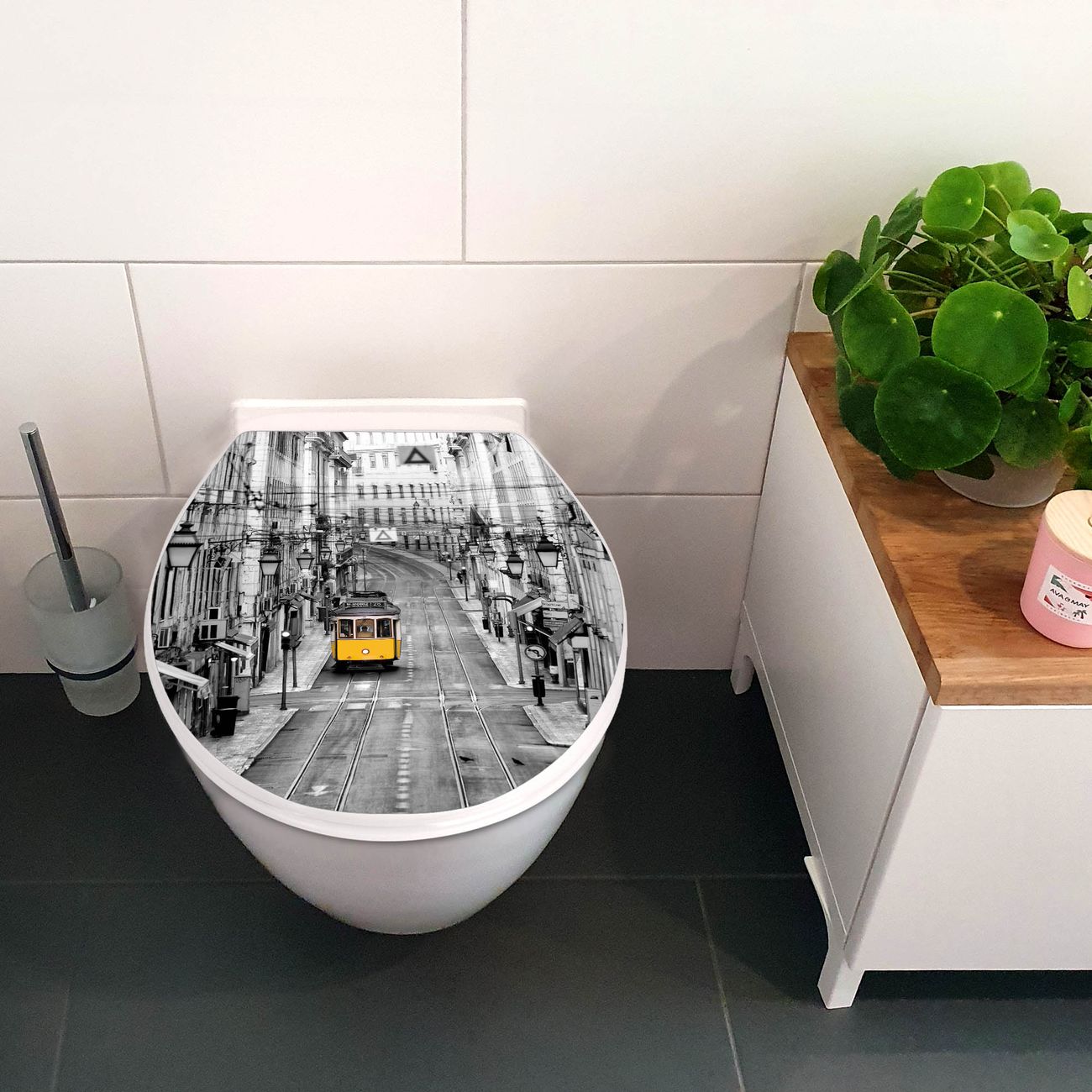 Toilettendeckel weiß mit Absenkautomatik Motiv Lissabon