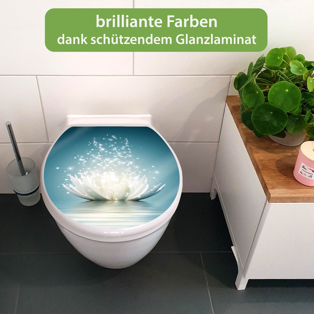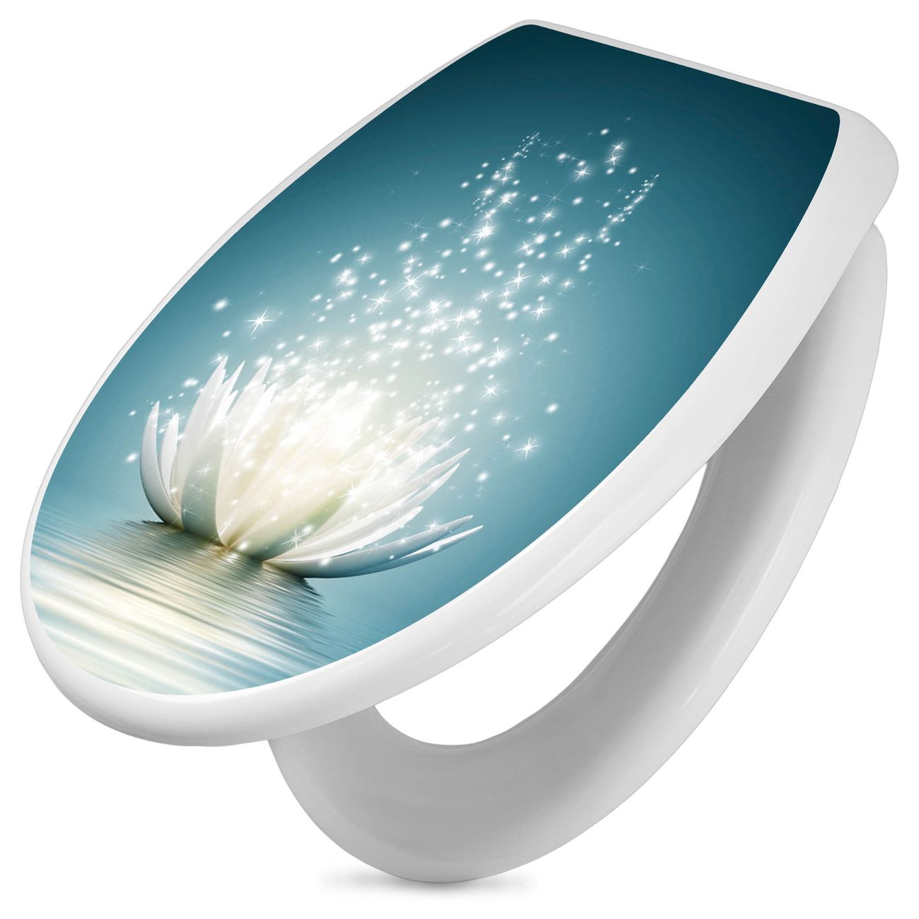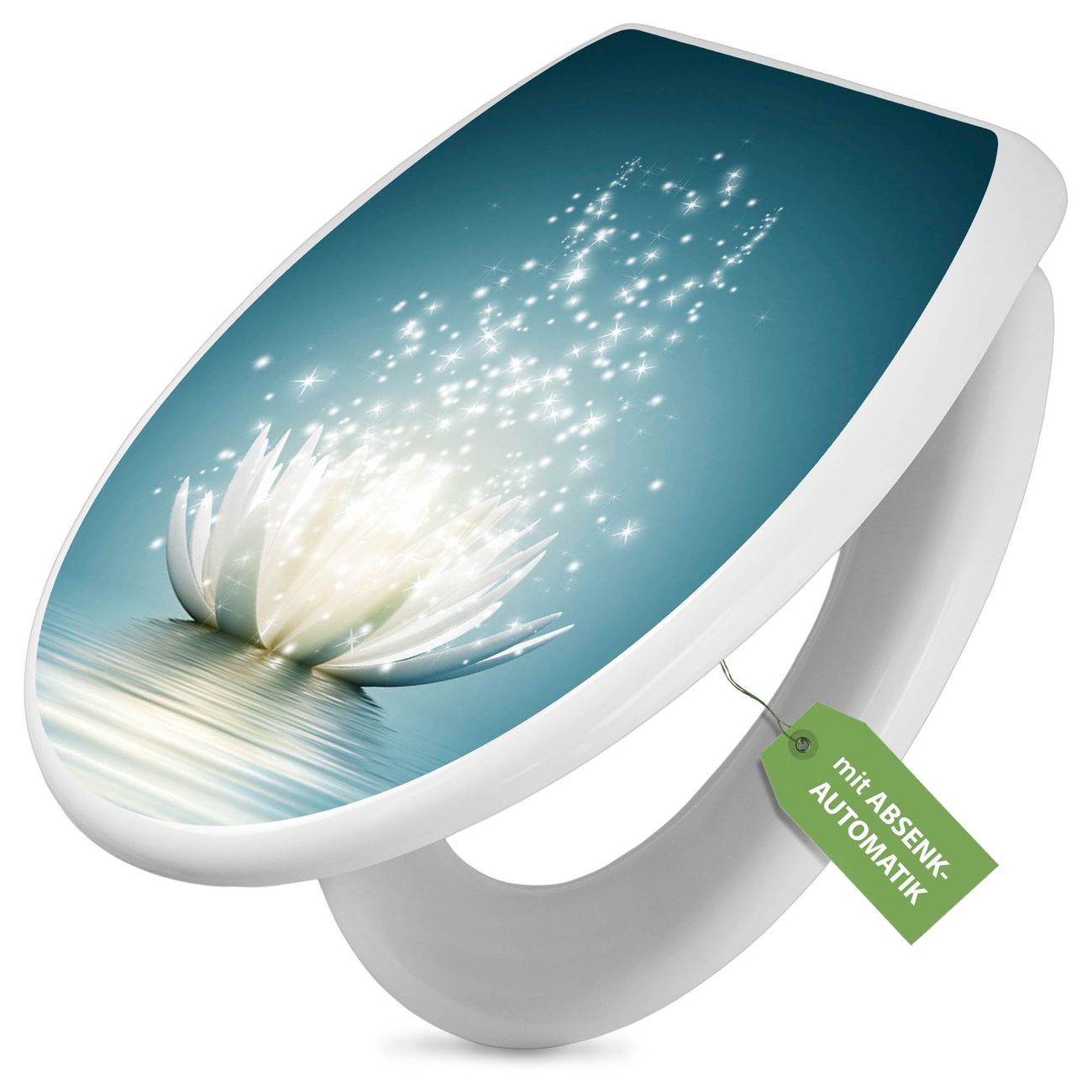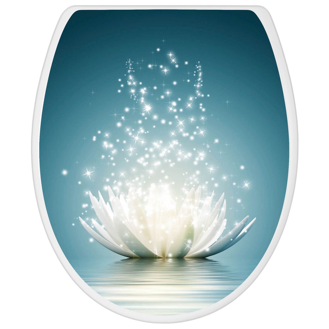 Toilettendeckel weiß mit Absenkautomatik Motiv Magische Lotusblüte