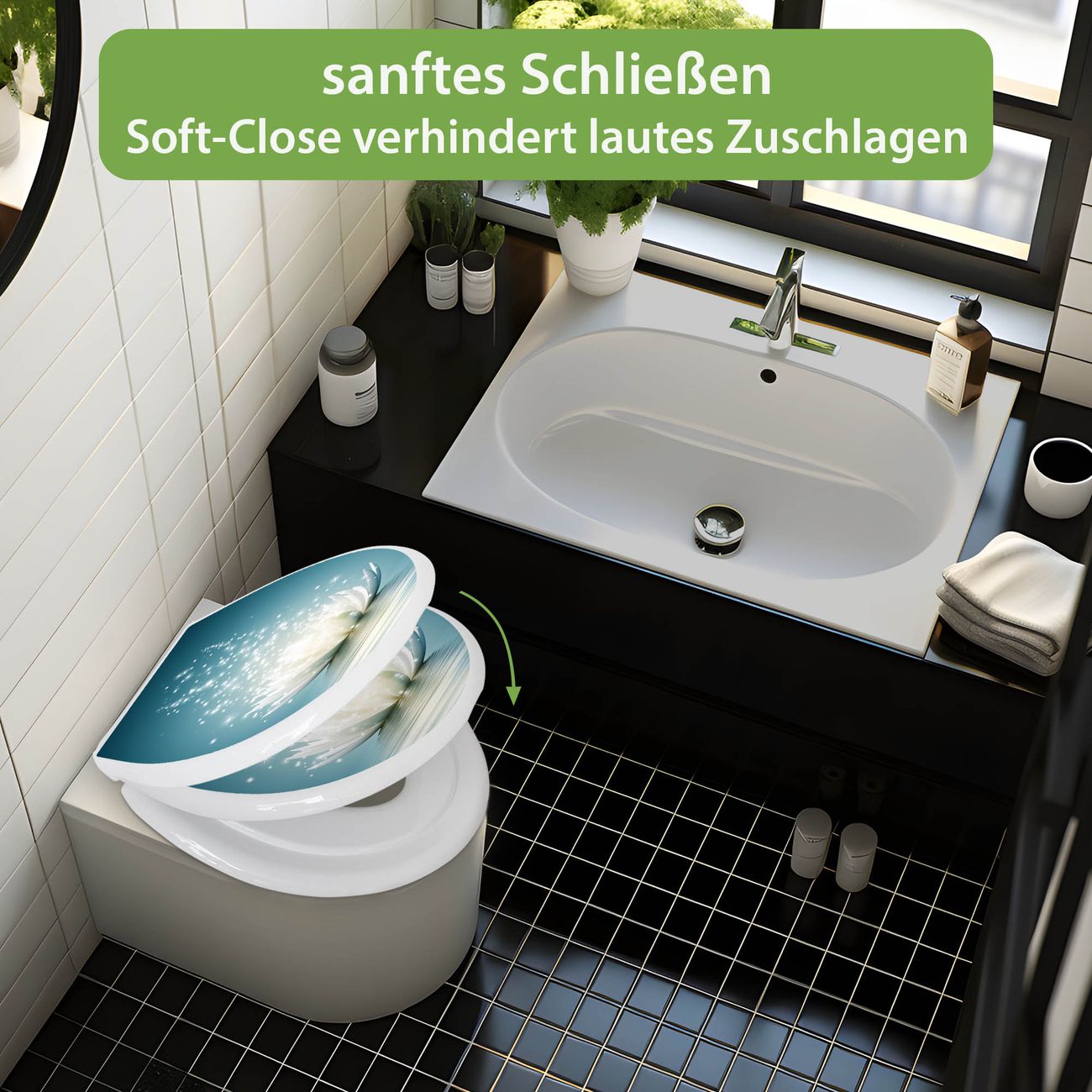 Toilettendeckel weiß mit Absenkautomatik Motiv Magische Lotusblüte