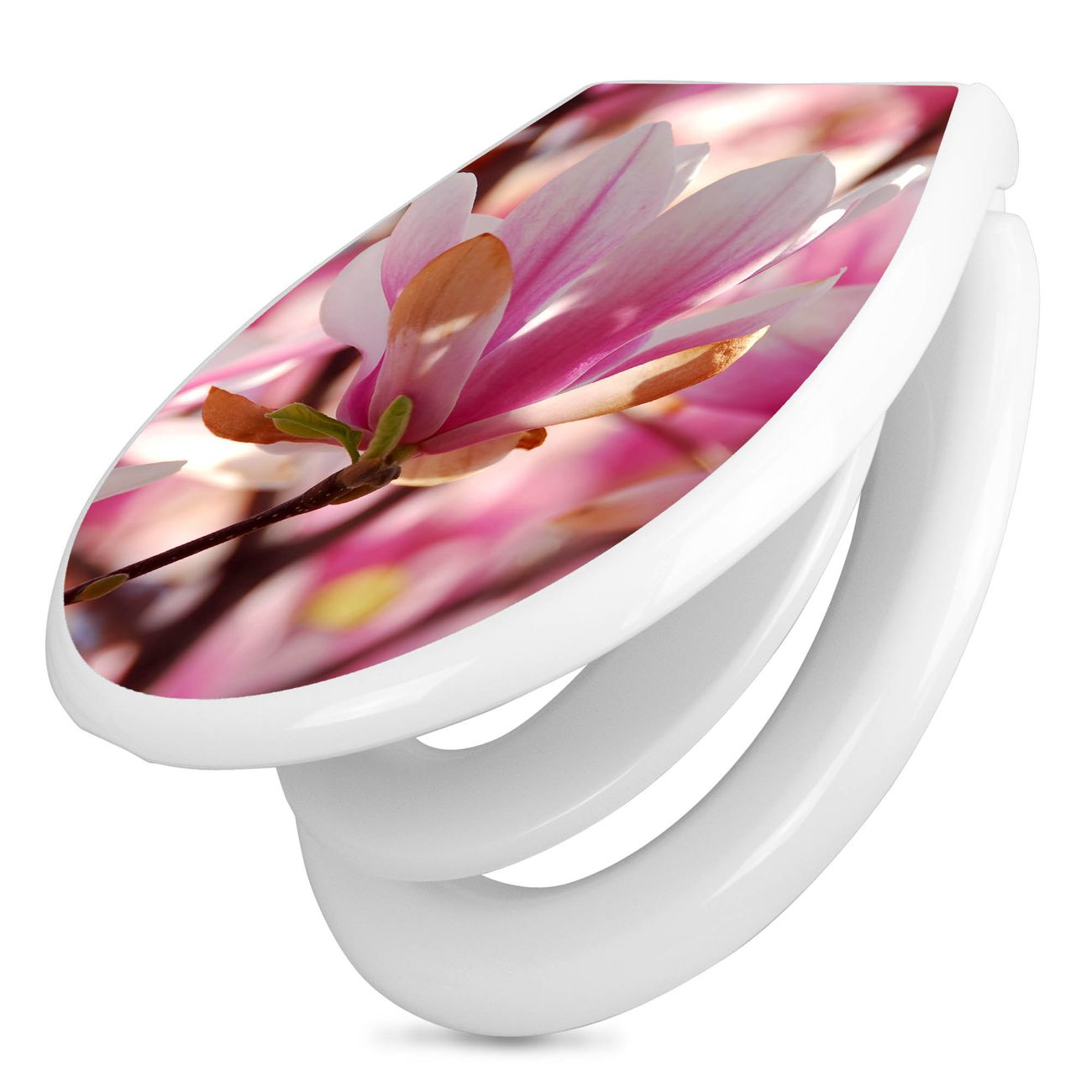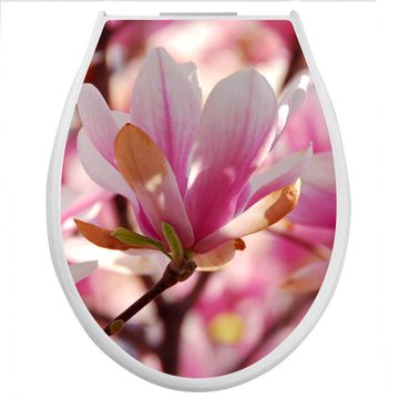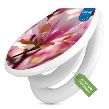 Toilettendeckel weiß mit Absenkautomatik Motiv Magnolia
