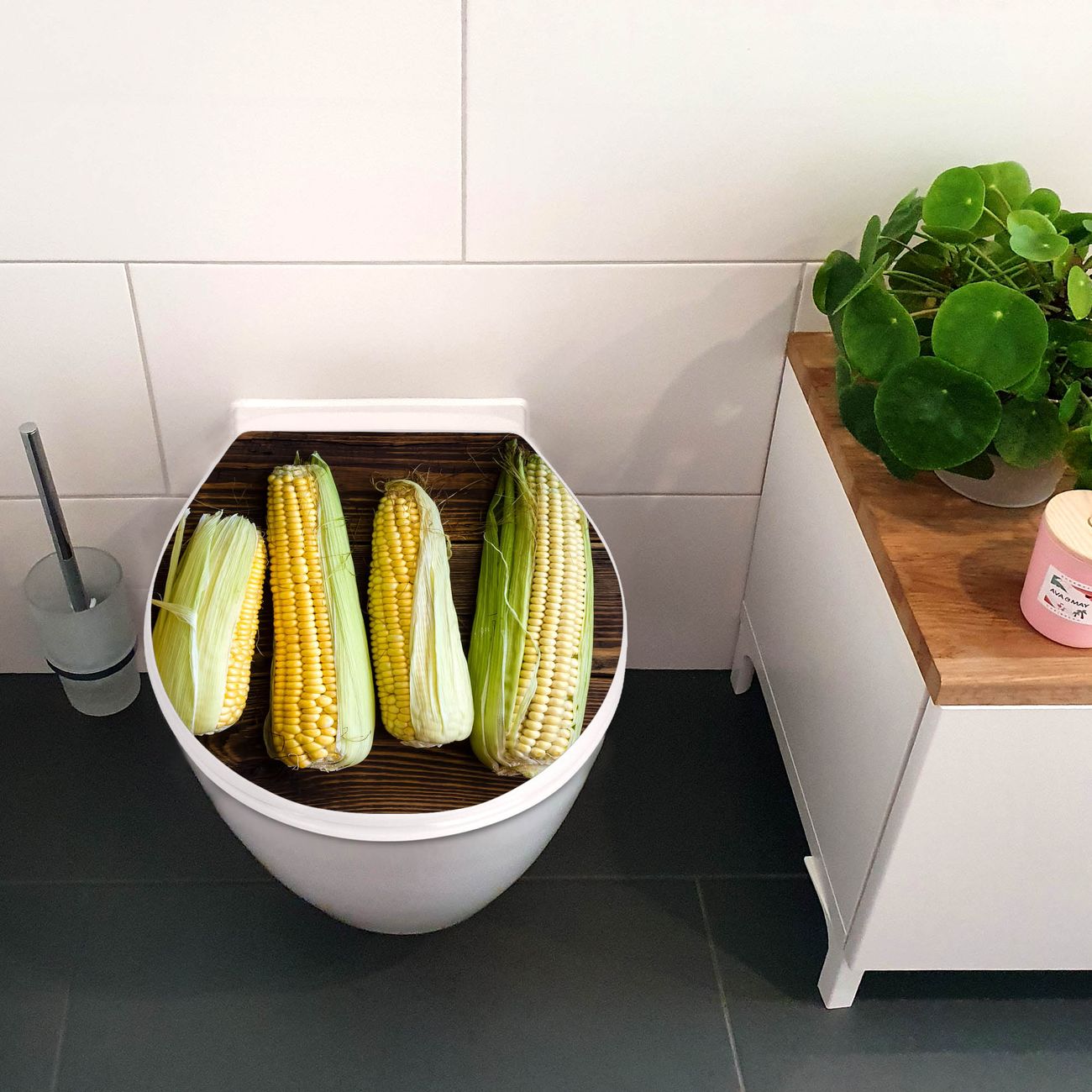 Toilettendeckel weiß mit Absenkautomatik Motiv Maiskolben