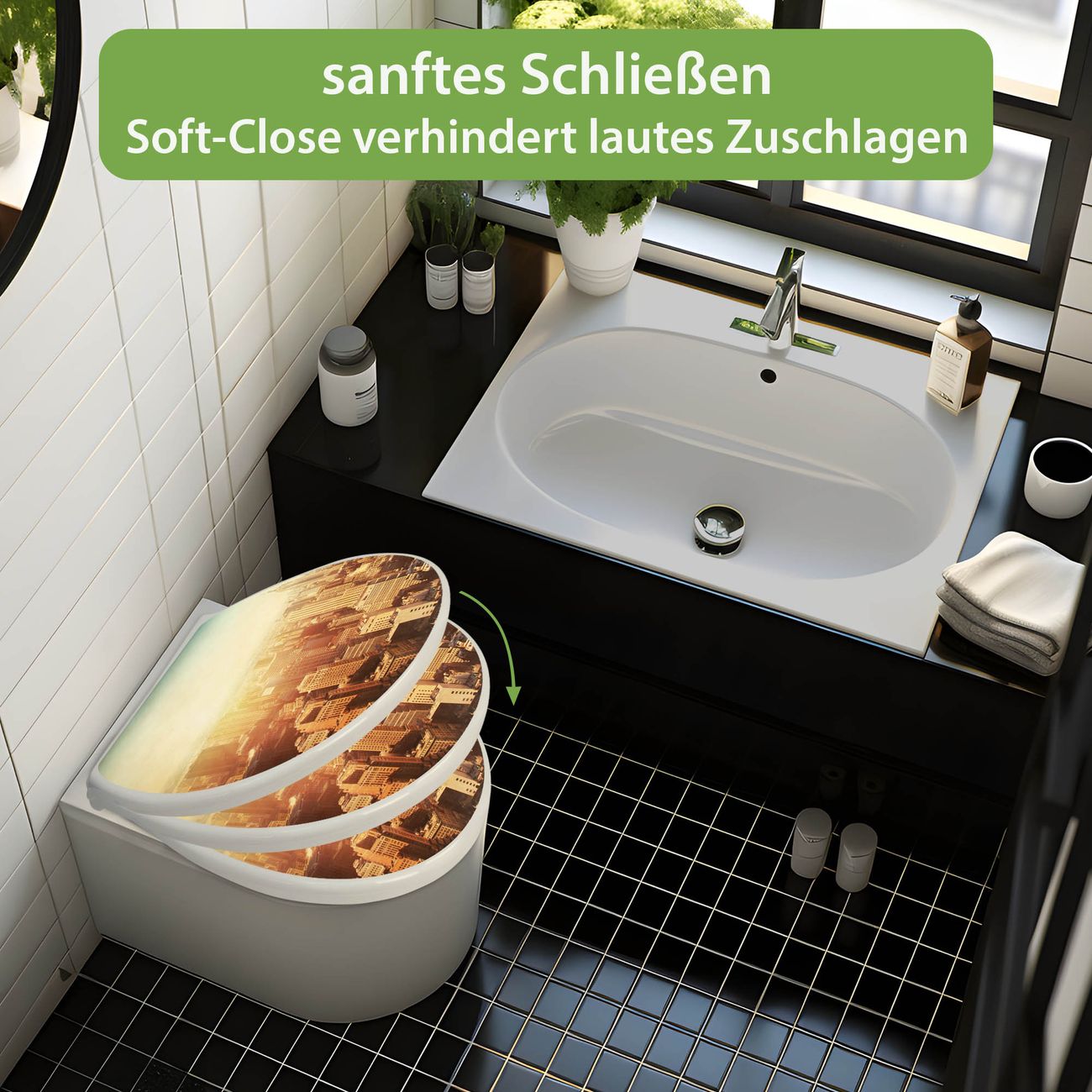 Toilettendeckel weiß mit Absenkautomatik Motiv Manhattan 2