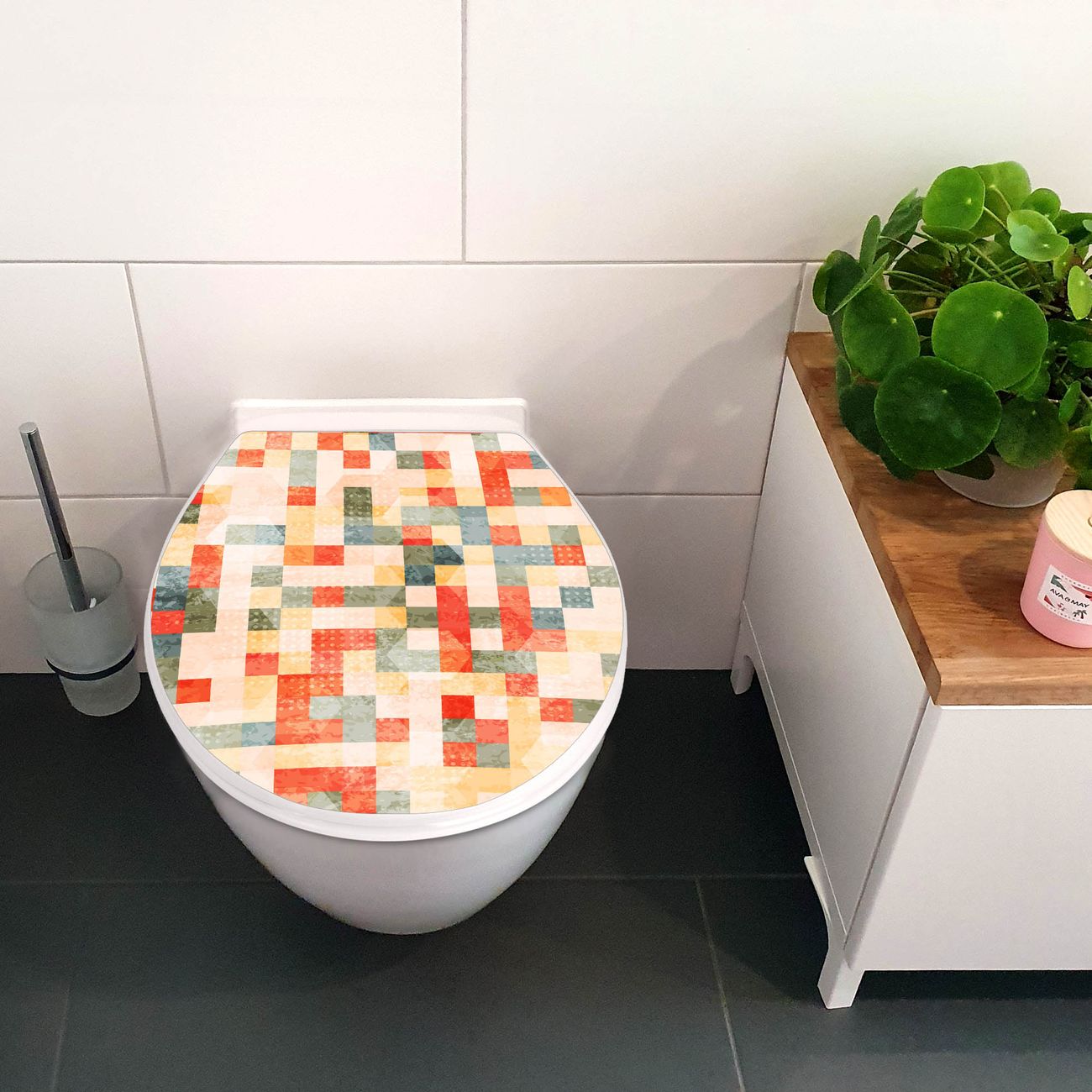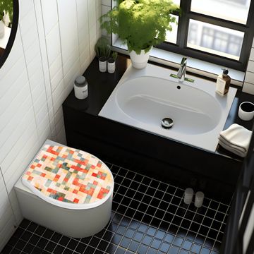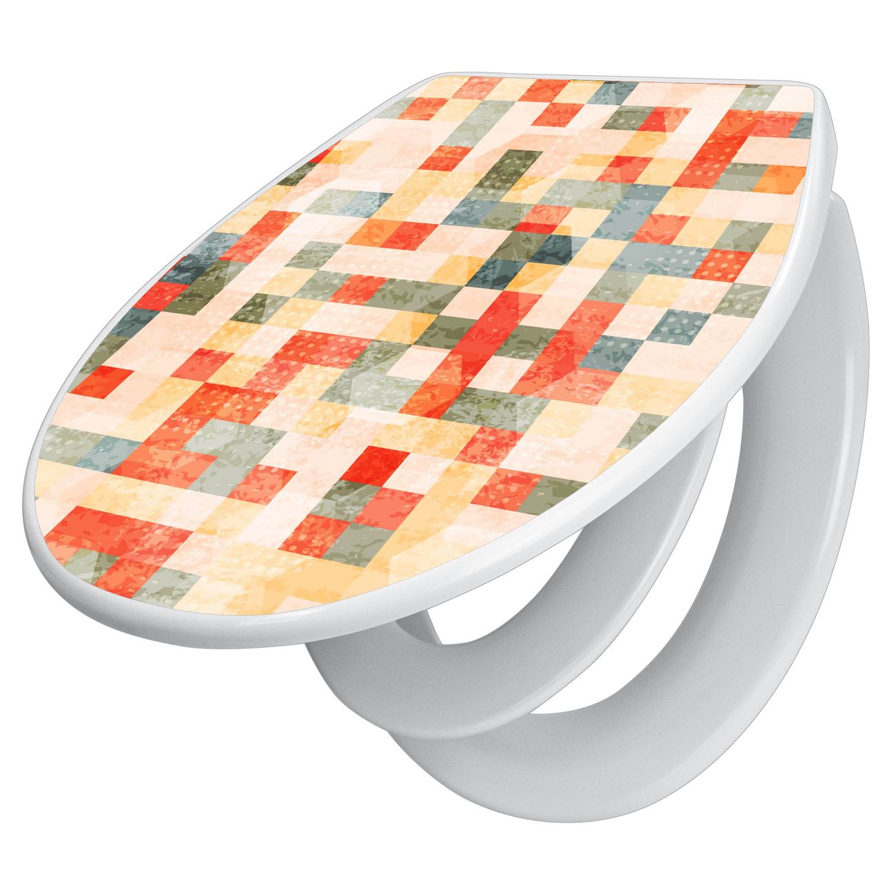 Toilettendeckel weiß mit Absenkautomatik Motiv Mosaik Rot