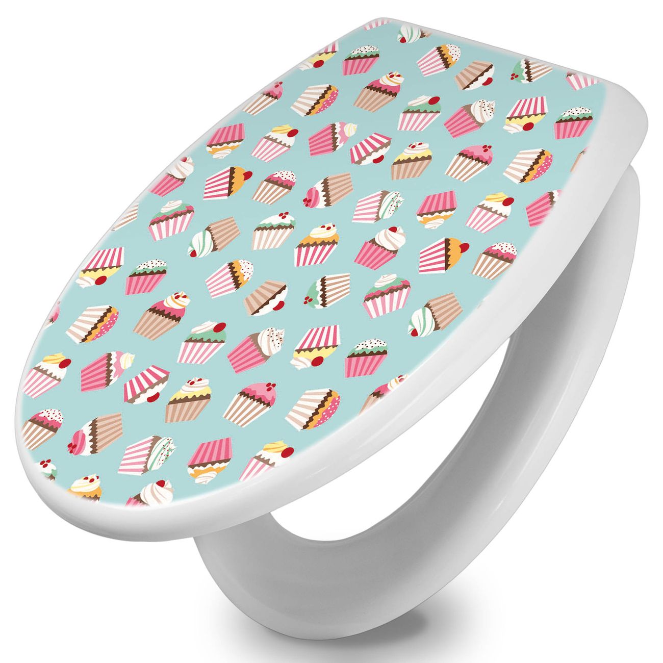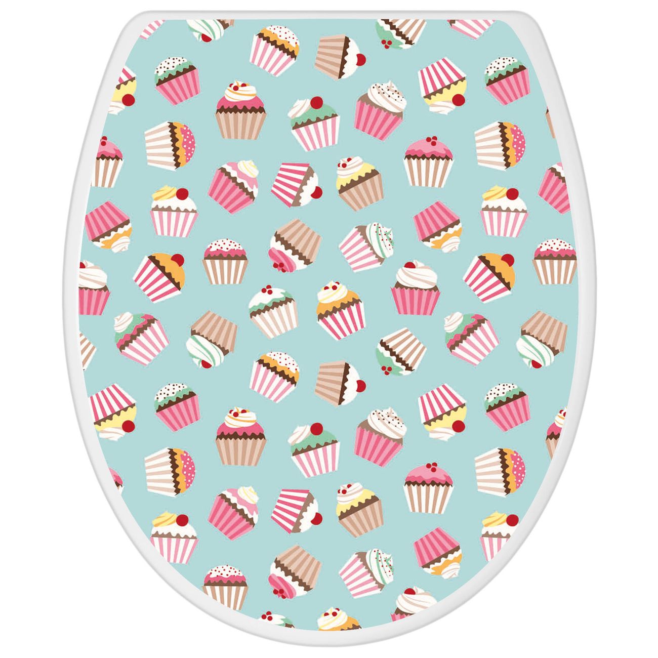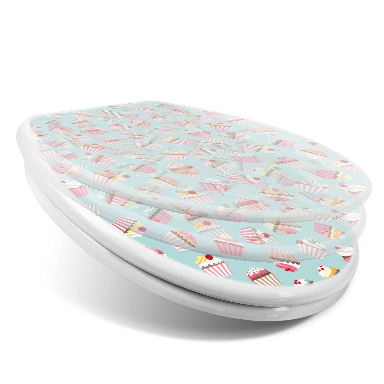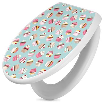 Toilettendeckel weiß mit Absenkautomatik Motiv Muffins