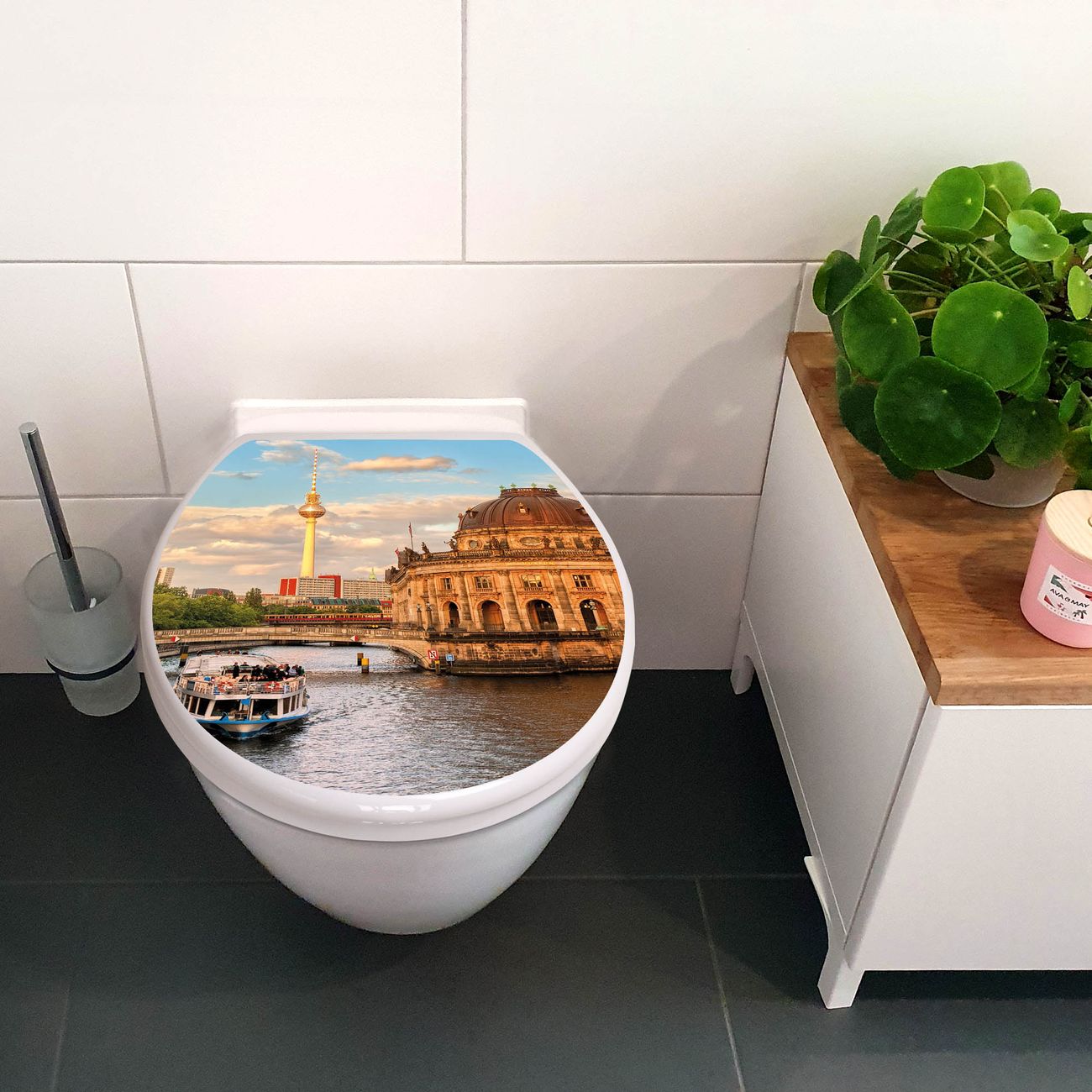 Toilettendeckel weiß mit Absenkautomatik Motiv Museumsinsel