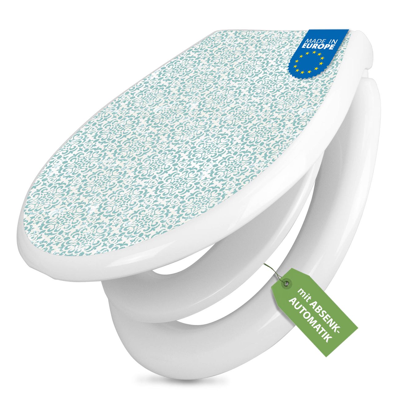 Toilettendeckel weiß mit Absenkautomatik Motiv Muster Getupft Blau