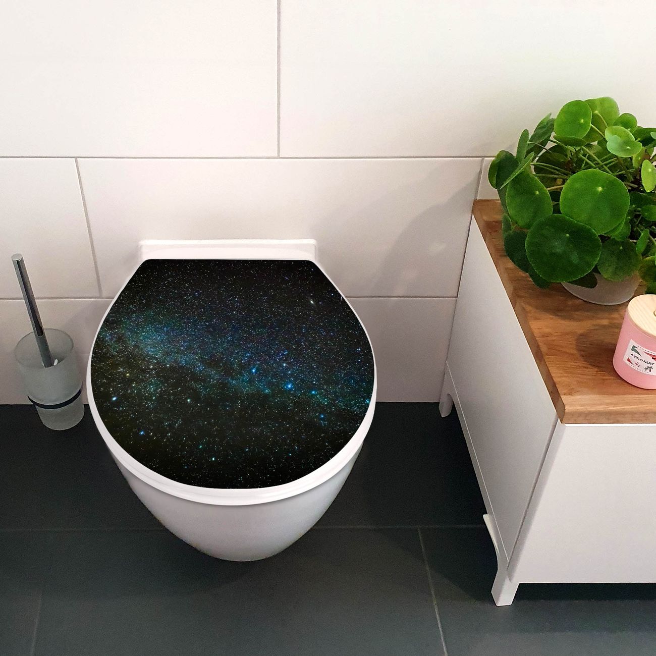 Toilettendeckel weiß mit Absenkautomatik Motiv Nachthimmel
