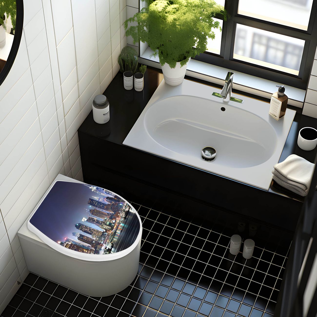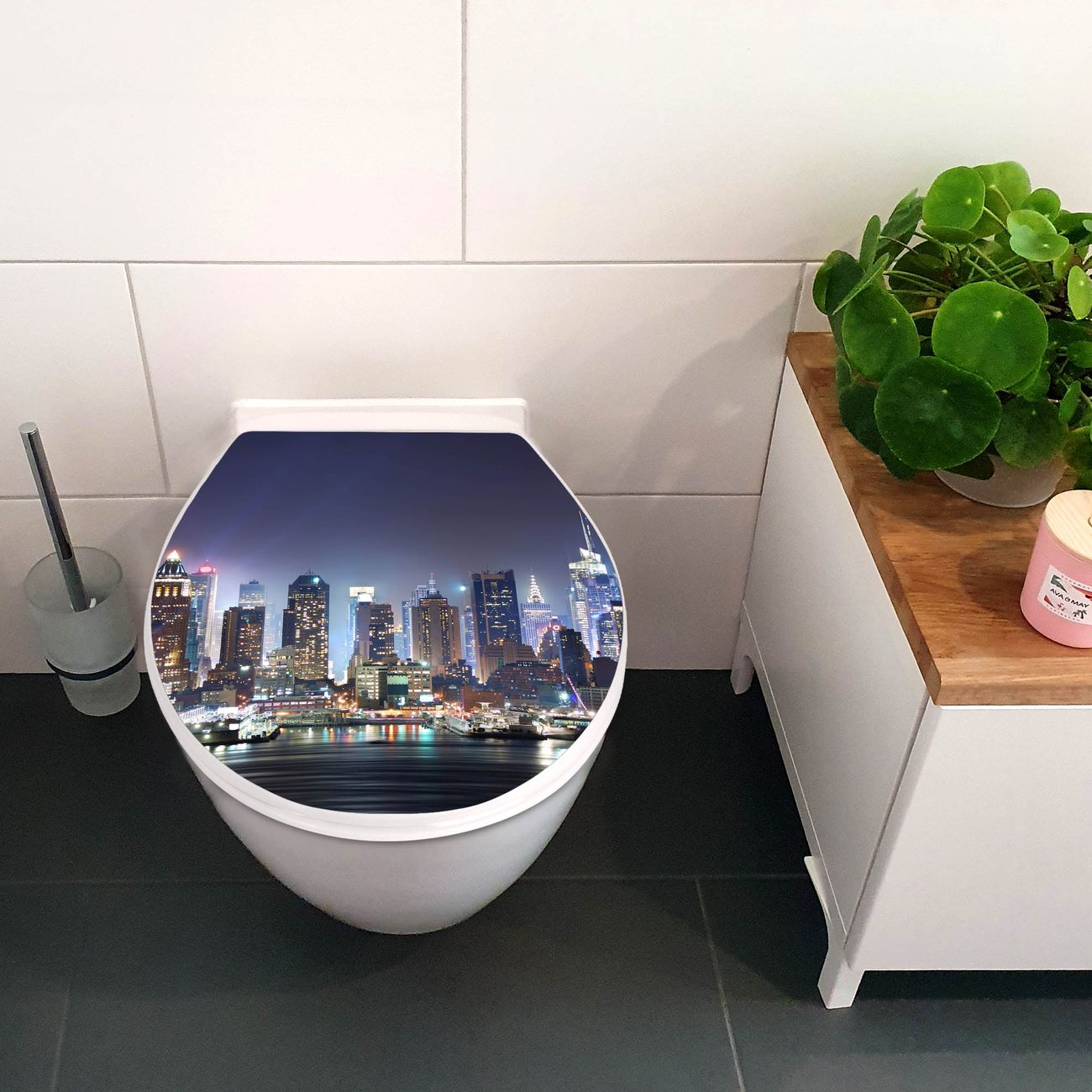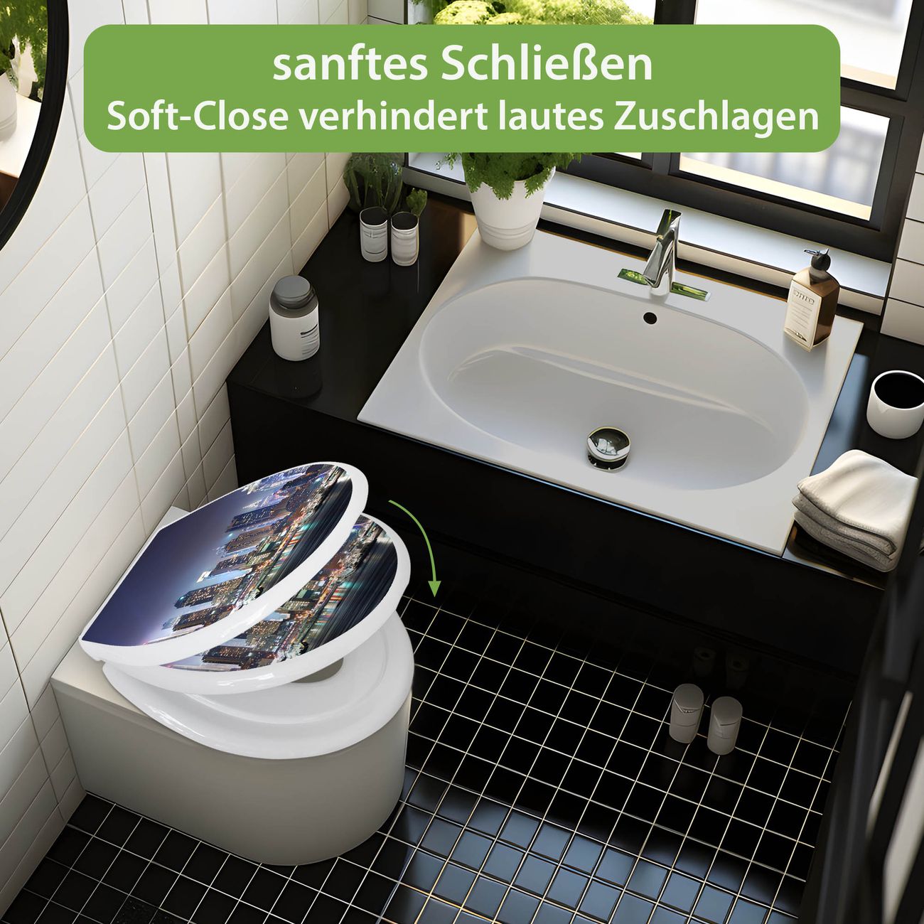 Toilettendeckel weiß mit Absenkautomatik Motiv New York