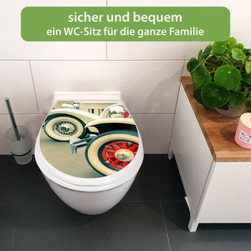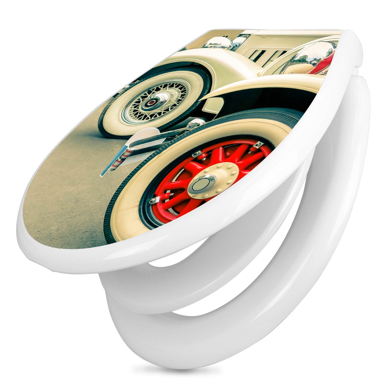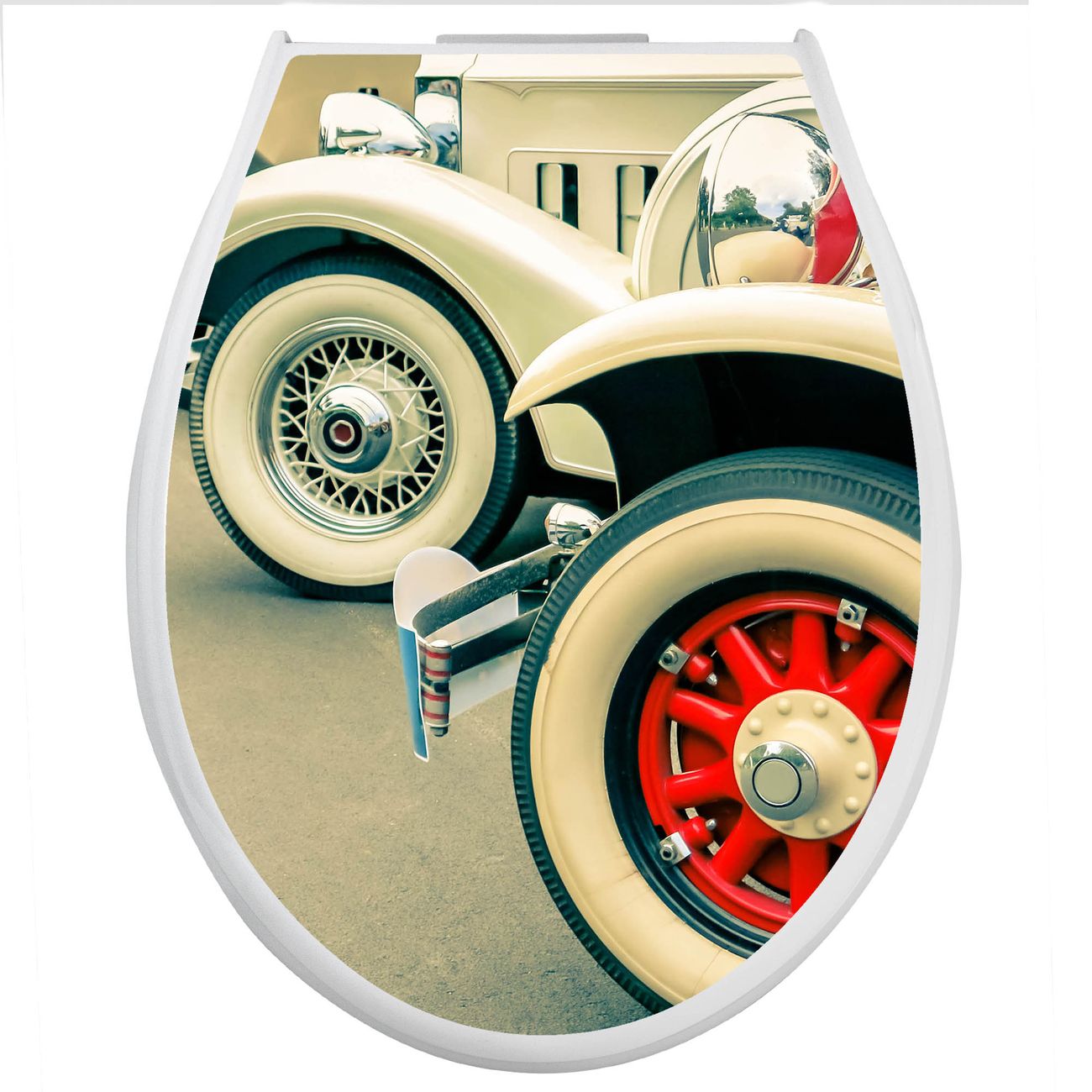 Toilettendeckel weiß mit Absenkautomatik Motiv Oldtimer Räder