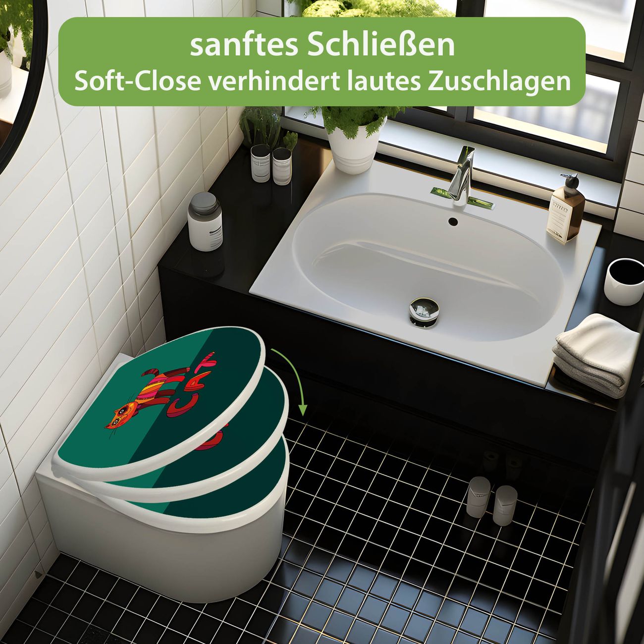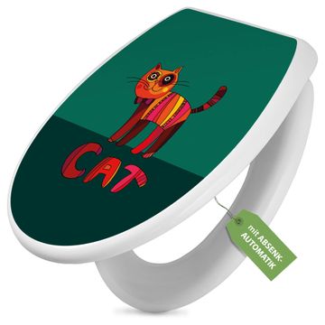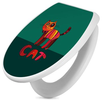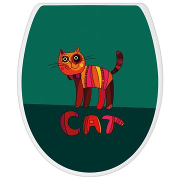 Toilettendeckel weiß mit Absenkautomatik Motiv Orange Katze