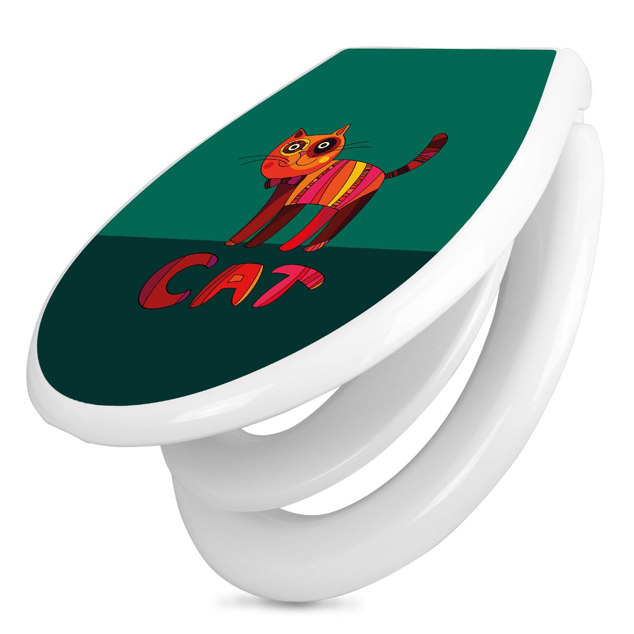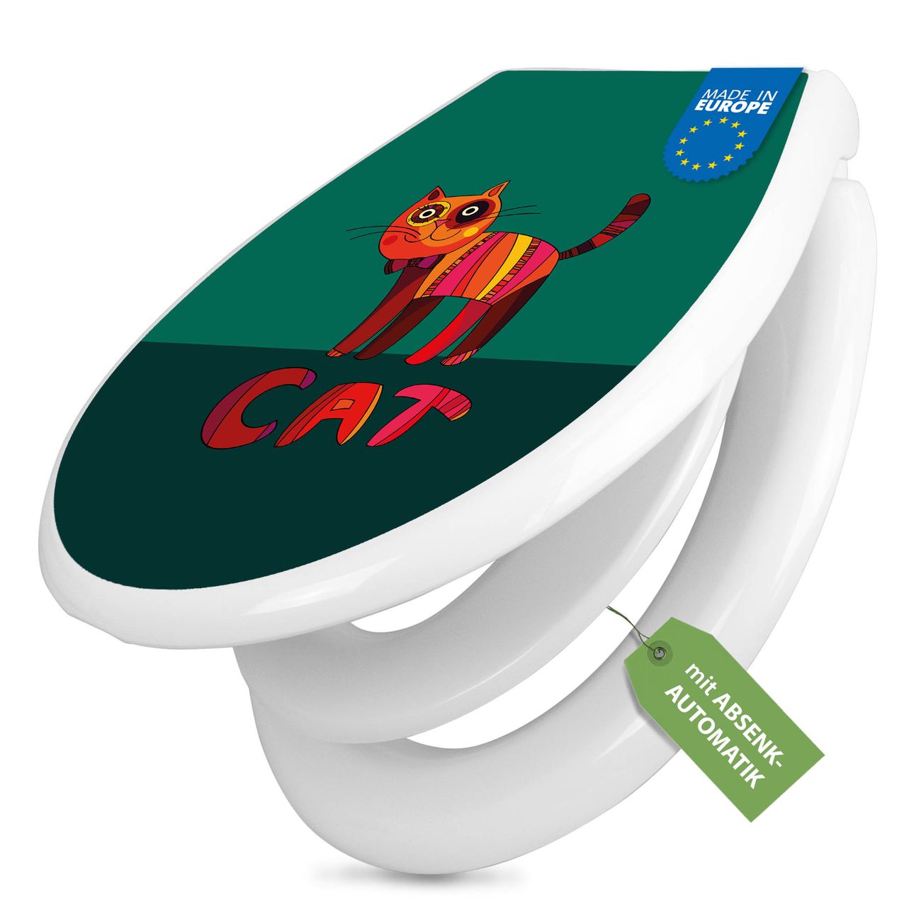Toilettendeckel weiß mit Absenkautomatik Motiv Orange Katze